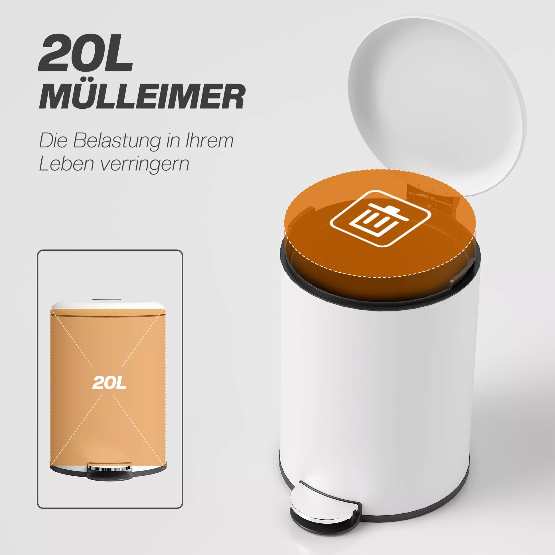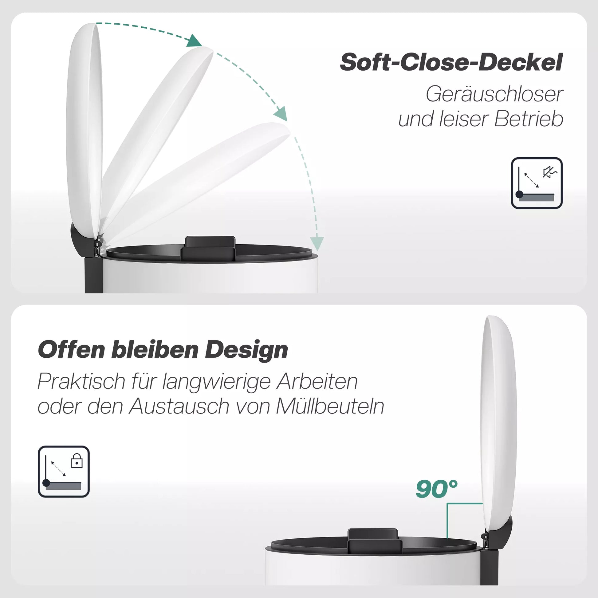 Atraskite šiukšliadėdę: kompaktiška, bet talpi, 20 litrų talpos, ji puikiai dera kiekvienoje erdvėje. Naudokite be triukšmo su švelniai užsidarančiu dangteliu. Praktiškas pedalas leidžia atidaryti ją laisvoms rankoms. Išimamas vidinis kibiras ir dangtelis, kurį galima užfiksuoti atidarytą, žymiai palengvina valymą. Dėl paviršiaus be pirštų antspaudų šiukšliadėdė visada atrodo švari ir elegantiška. Idealiai tinka virtuvei, biurui ar vonios kambariui.