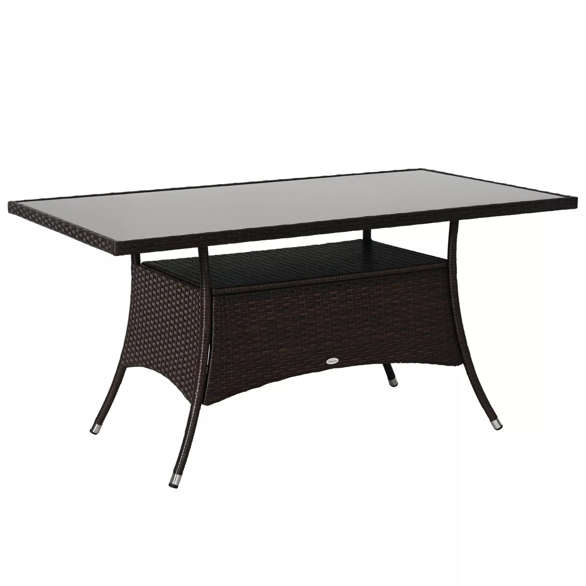 Lauko stalas, stiklinis stalas, valgomasis stalas, lauko baldų stalas, poliratanas + saugus stiklas, rudas + juodas, 150x85x74cm