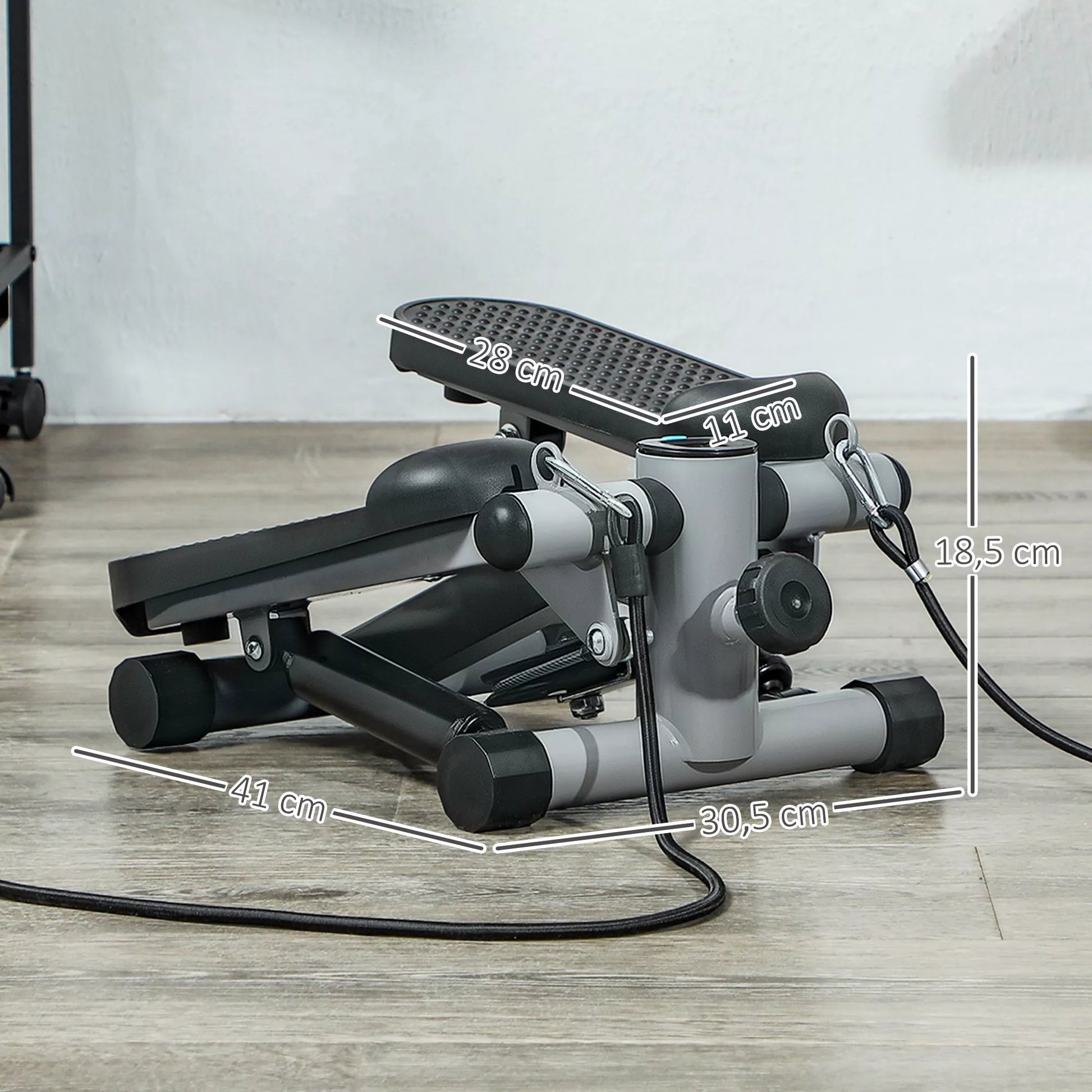 2in1 Mini treniruoklis namams su Power Ropes, LCD ekranu, Up-Down Swing Stepper, 41 x 30,5 x 18,5 cm, pilkos spalvos