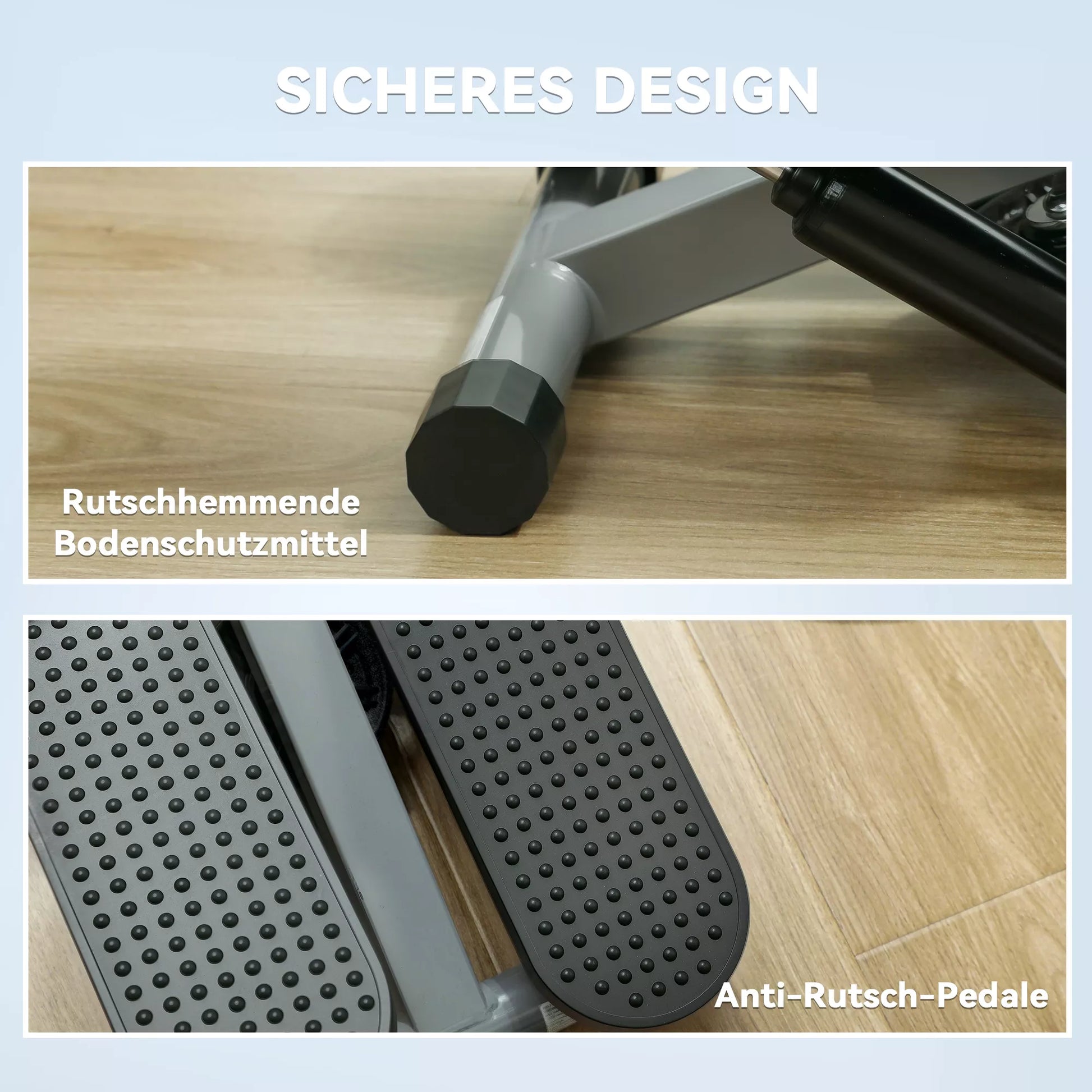Pagerinkite savo treniruotes namuose su mini treniruokliu! Sutvirtinkite savo pilvo raumenis, sėdmenis ir kojas, o nuimamos „Swing-Stepper“ pasipriešinimo juostos sustiprins rankas. Stebėkite savo rezultatus mini treniruoklio LCD ekrane. Sureguliuokite treniruoklio aukštį, kad padidintumėte treniruočių intensyvumą. Patirkite tylius ir sklandžius žingsnius dėl hidraulinio cilindro. Saugiai, efektyviai ir smagiai!