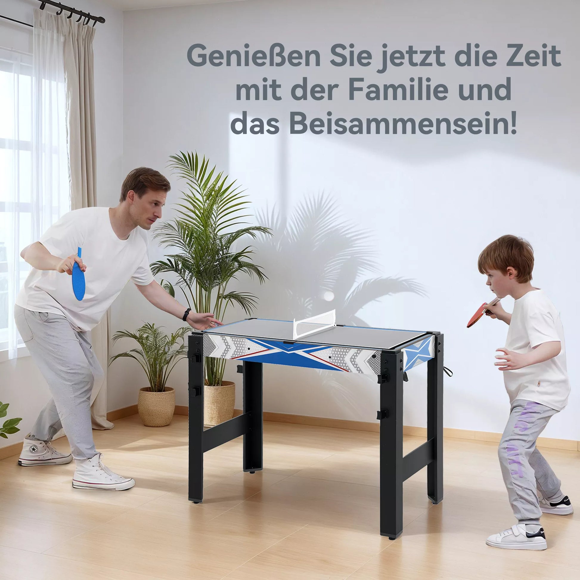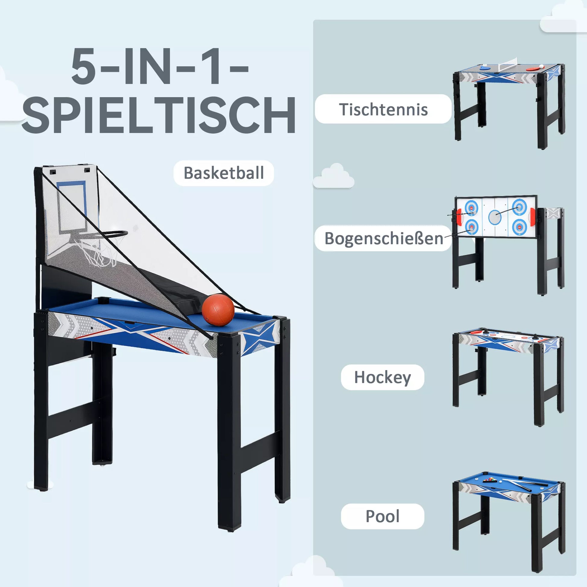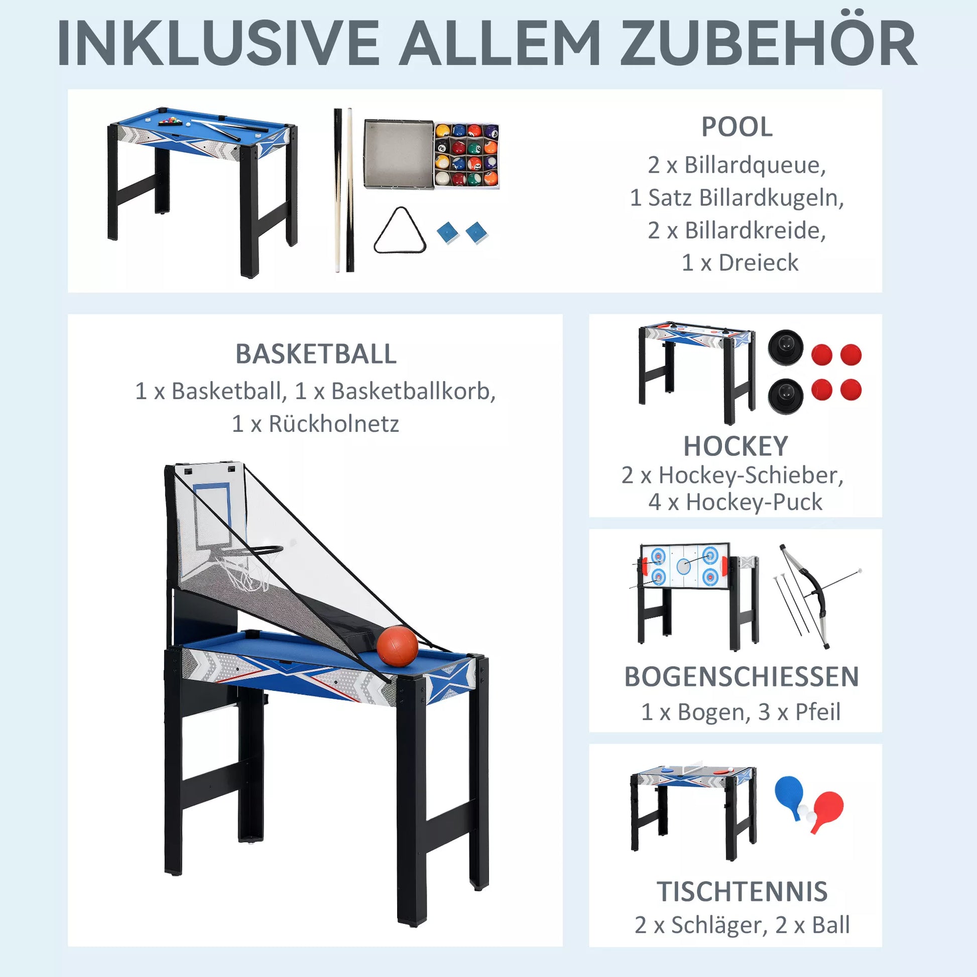 5-in-1 žaidimų stalas, Biliardas, Stalo tenisas, Hokejus, Krepšinis, Šaudymas iš lanko, Pridedami priedai, MDF, Plastikas, Mėlyna