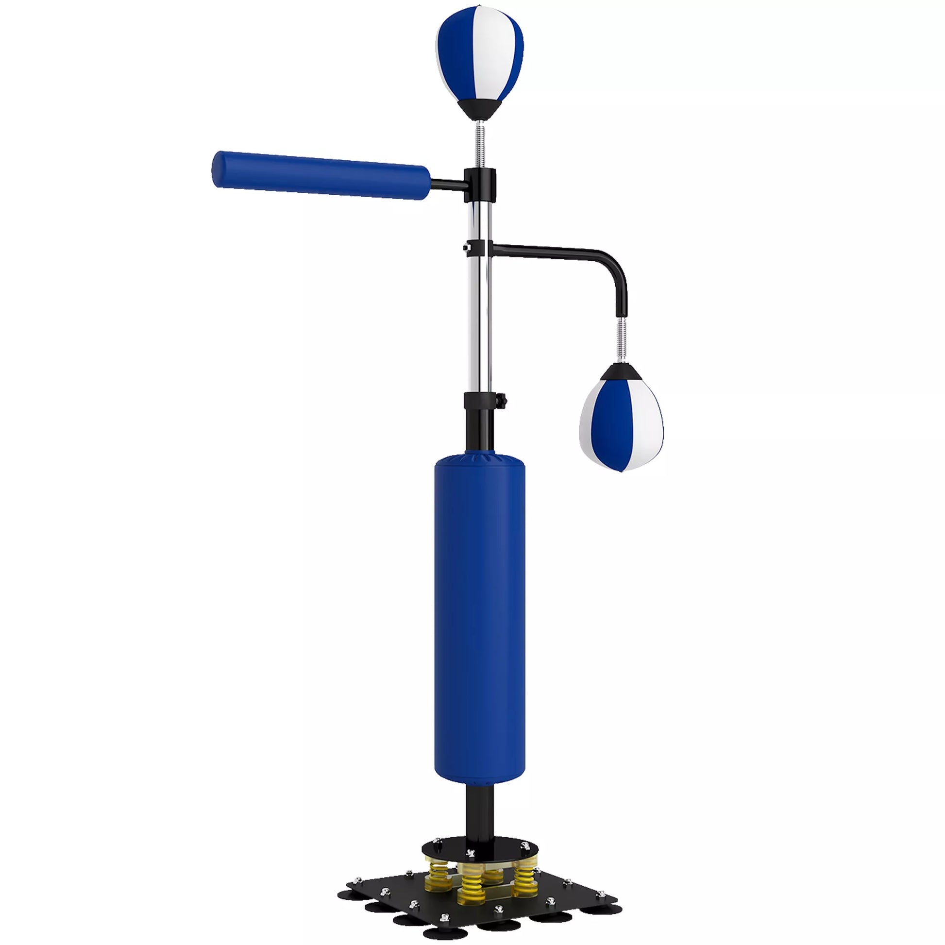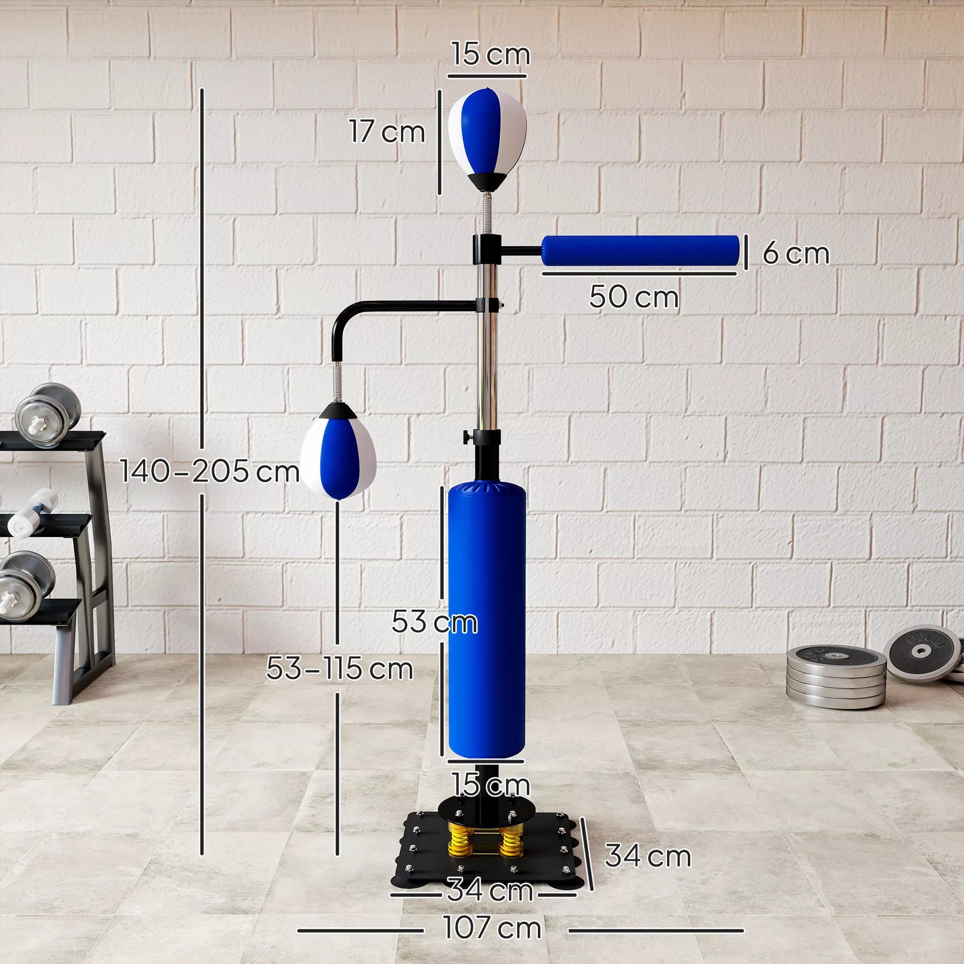 Bokso stovas, du greičio kamuoliukai, besisukanti bokso štanga, smūgių pagalvėlės, reguliuojamo aukščio, plienas, 107 x 36 x 140-205 cm, Mėlyna