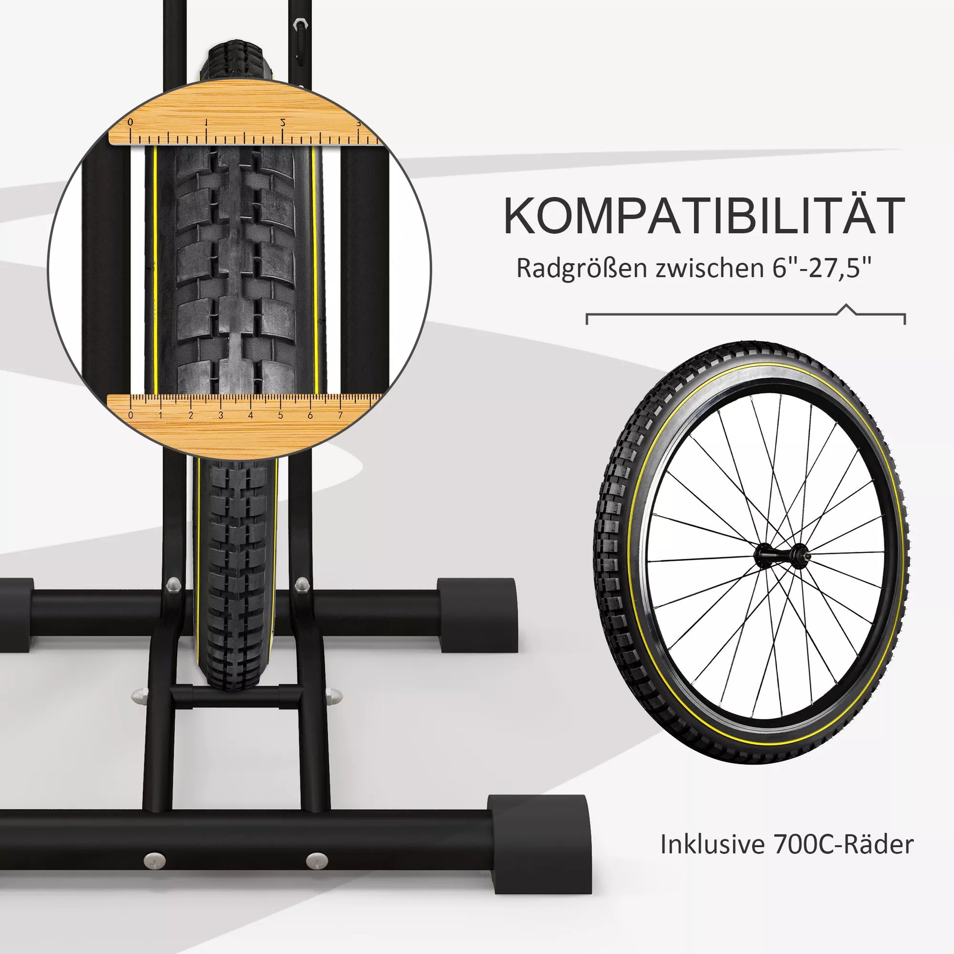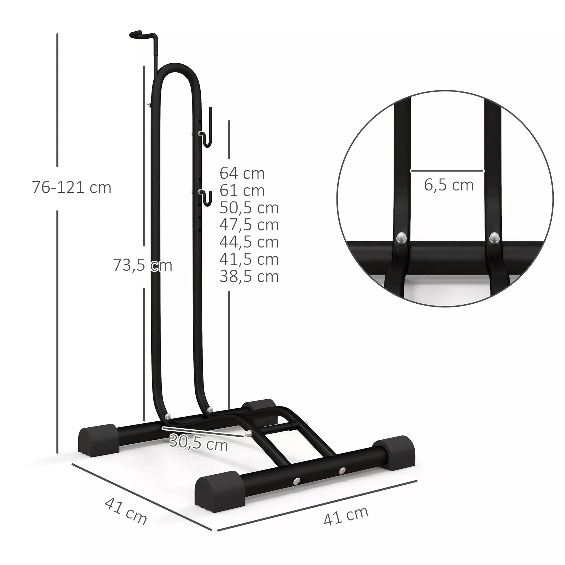 Dviračio stovas, vertikalus/horizontalus, 24-29" ir 700c ratams, 41 x 41 x 76-121cm, plienas, juodas