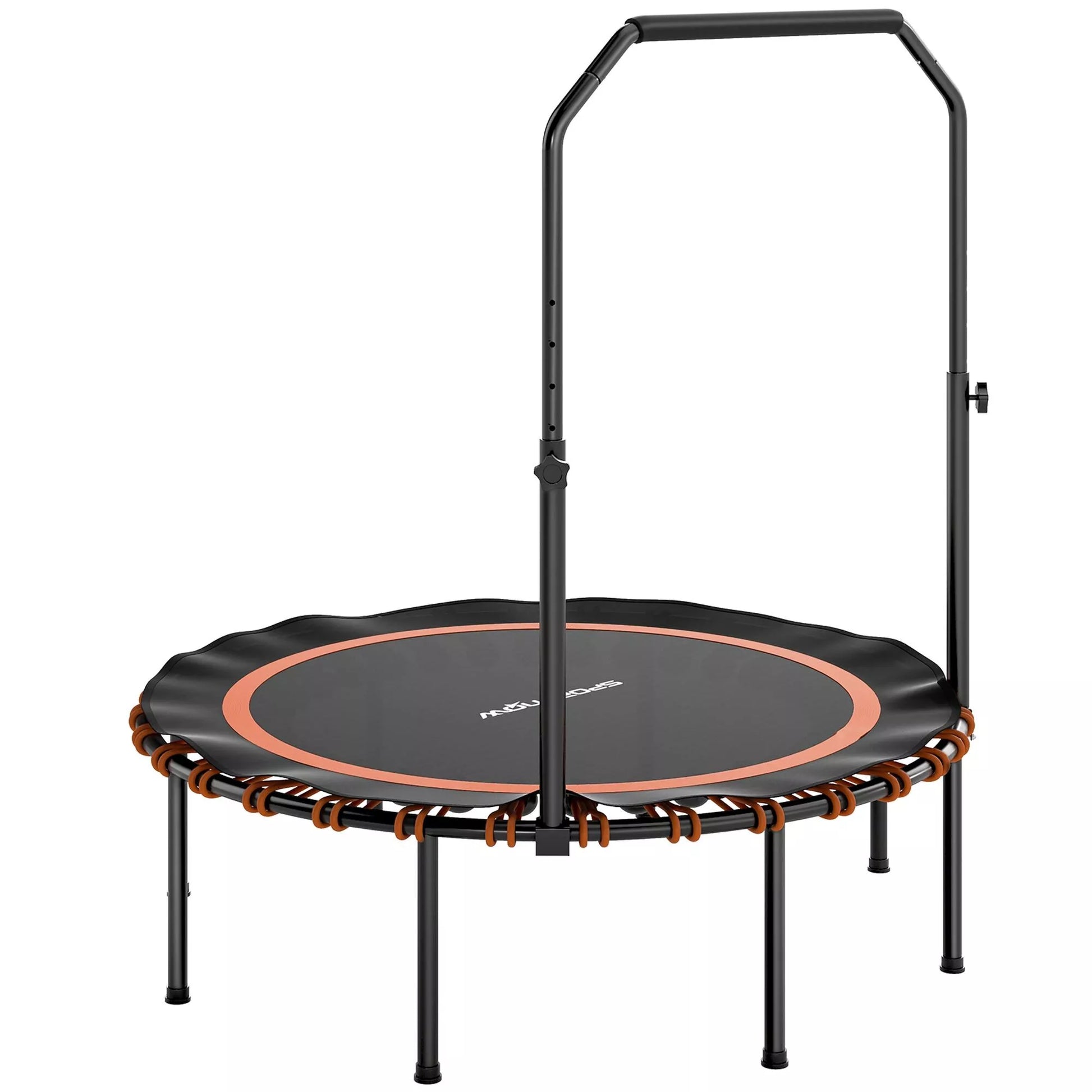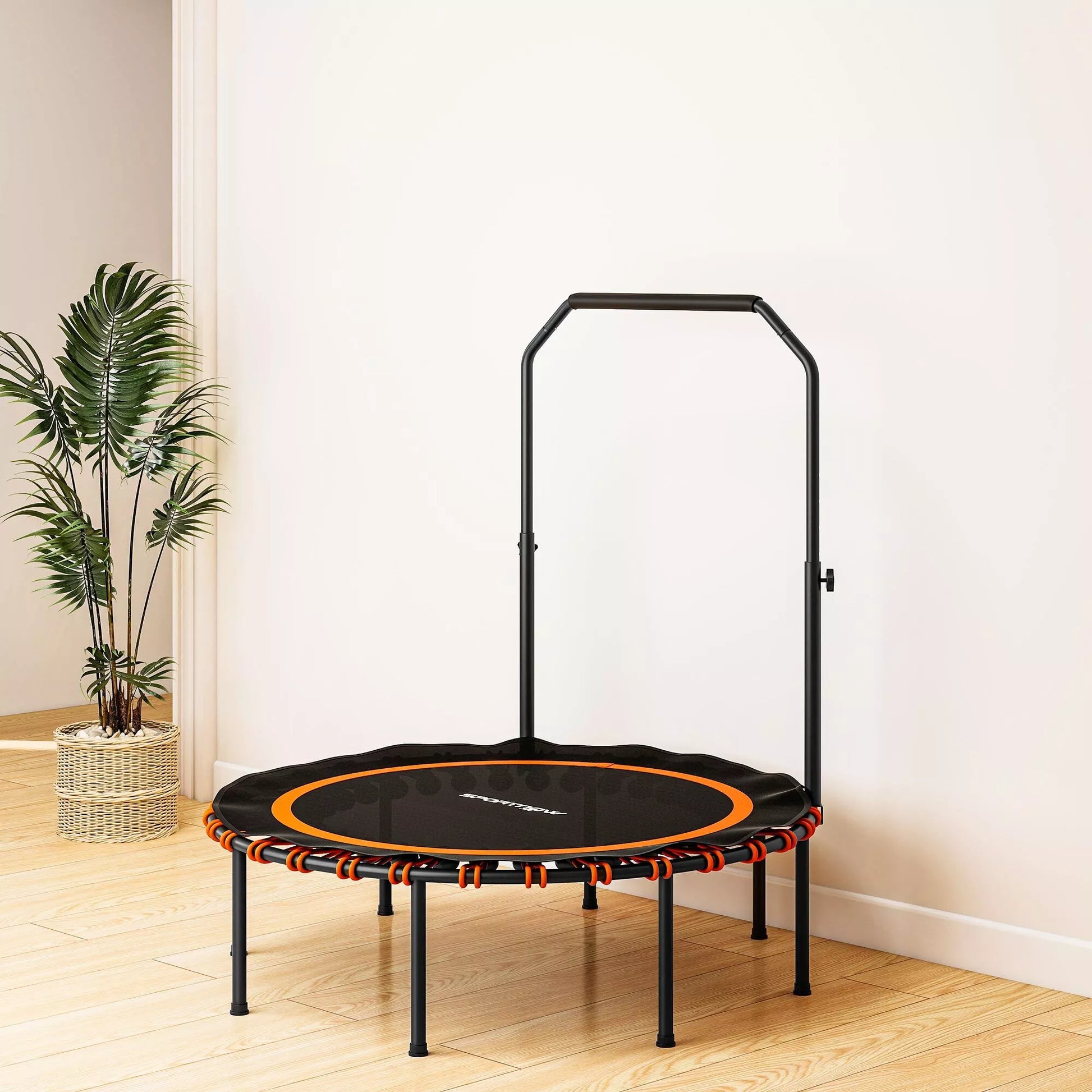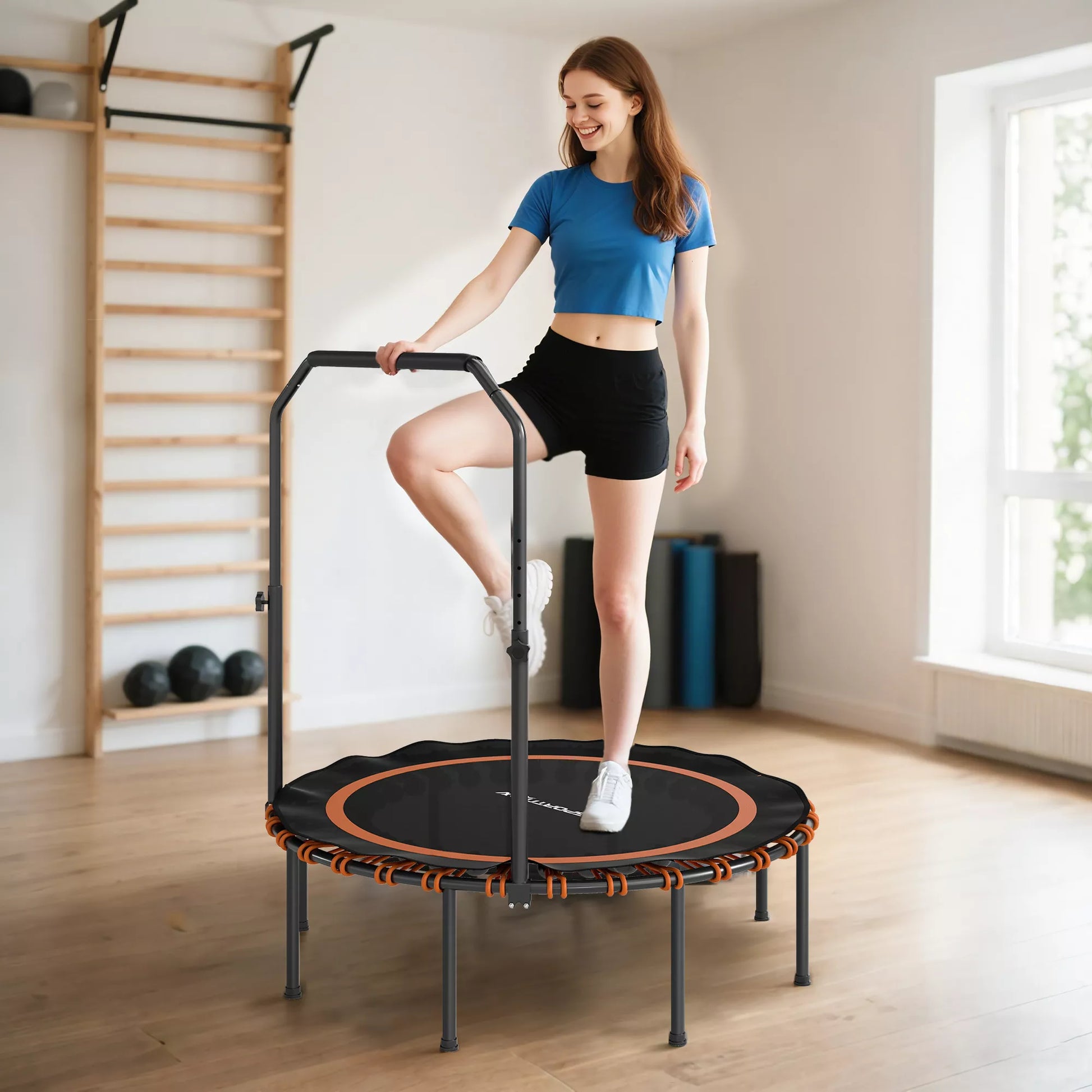 Fitneso batutas su reguliuojamu turėklu, sportinis batutas, skirtas naudoti lauke ir patalpose, plienas, plastikas, oranžinis