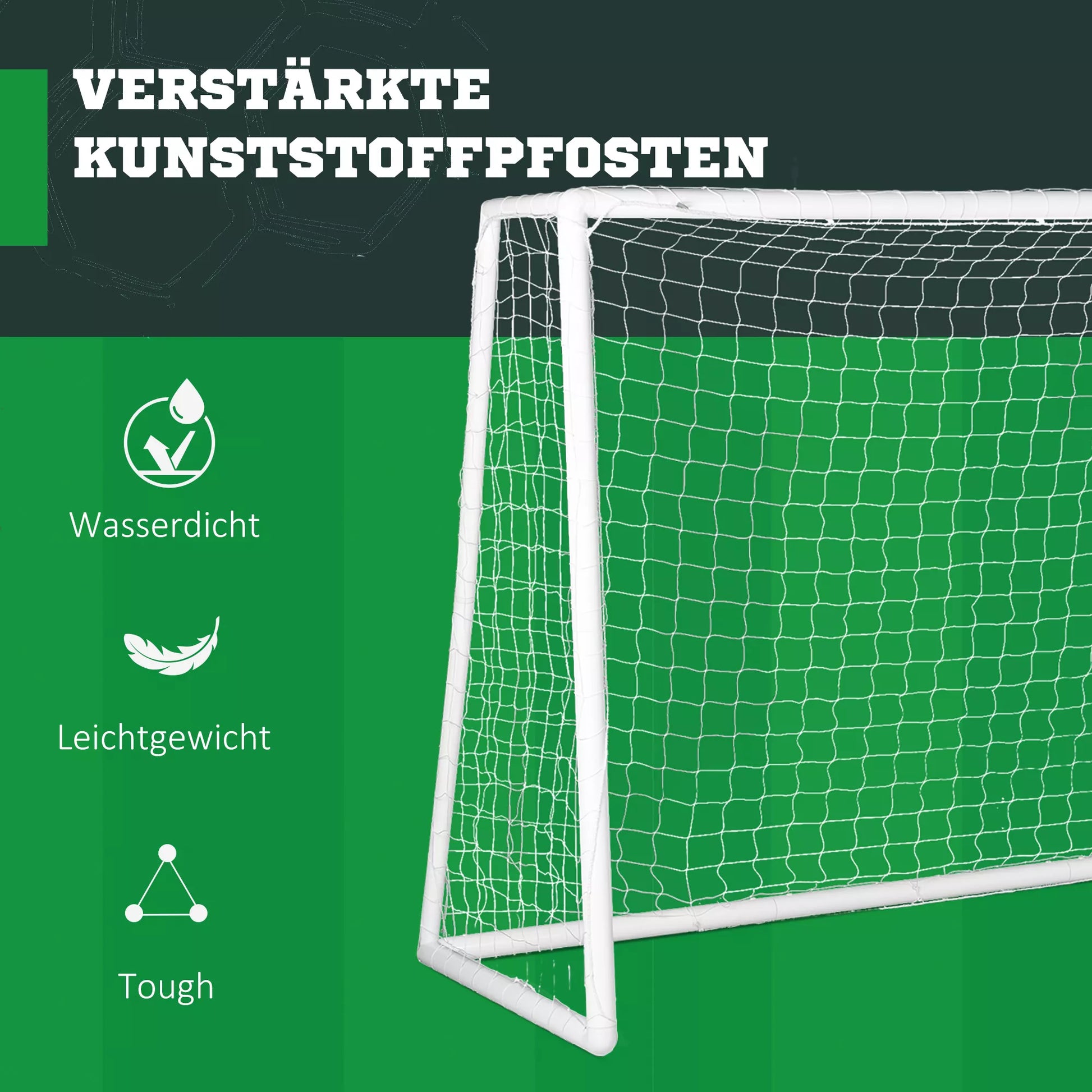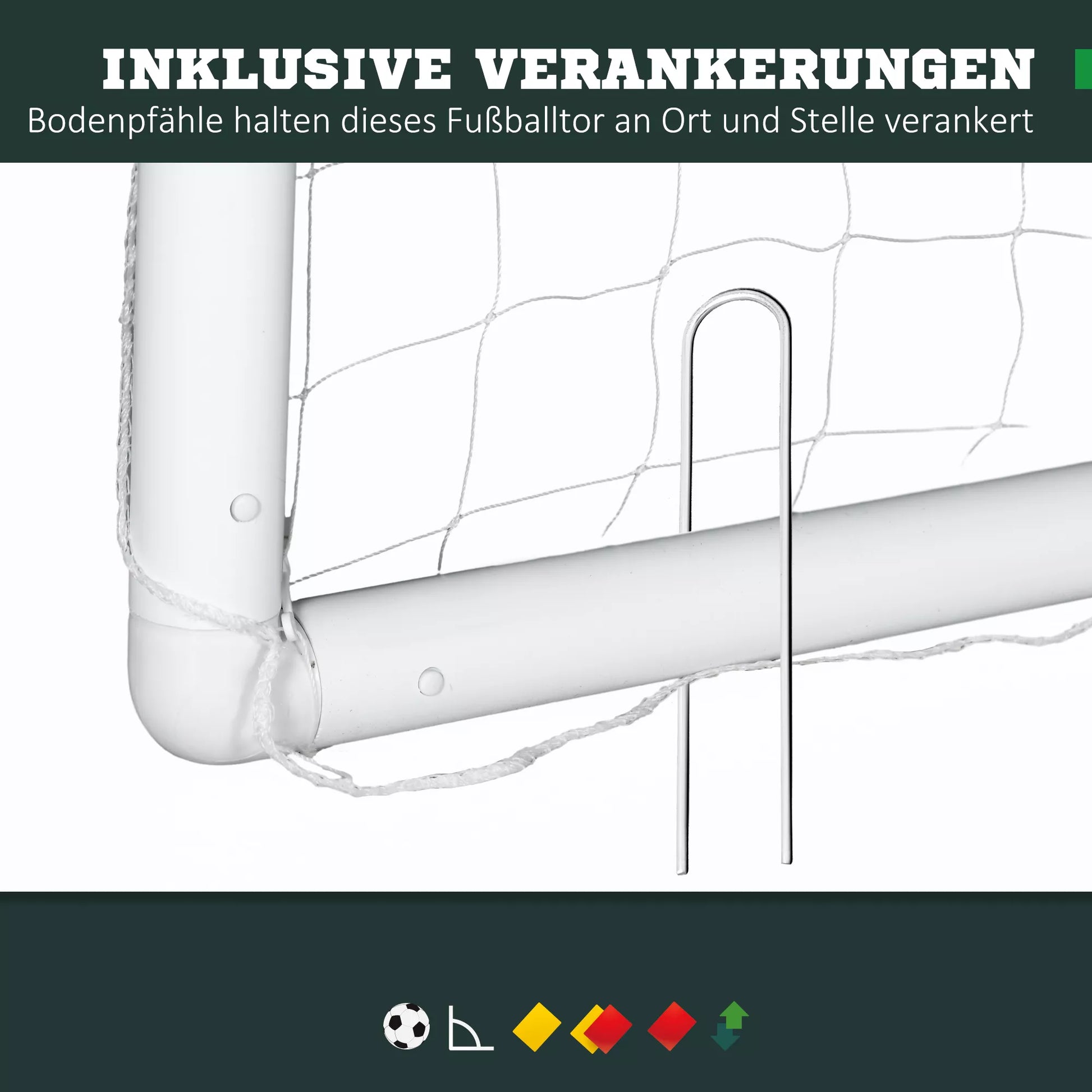 Futbolo vartai, tvirtas tinklas, plastikinė rėmas, tvirtinimo kuoliukai, 300 ilgis x 120 plotis x 200 aukštis cm, balti