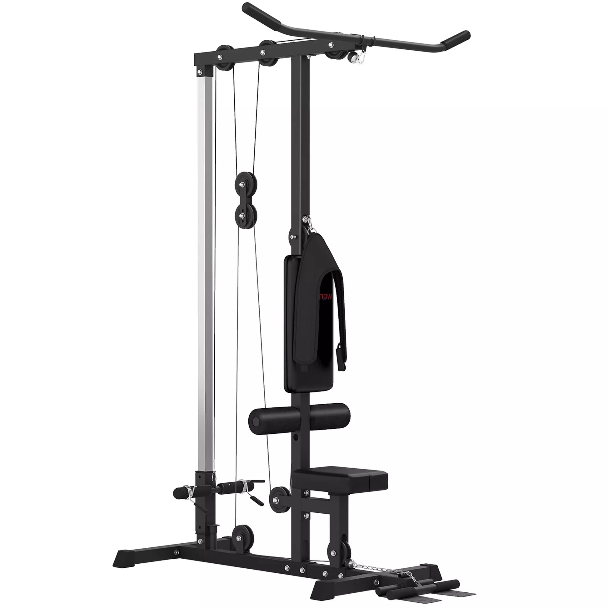 Jėgos stotis namams, irklavimo treniruotės, be svorių, sporto įranga namams, plienas, dirbtinė oda, juoda
