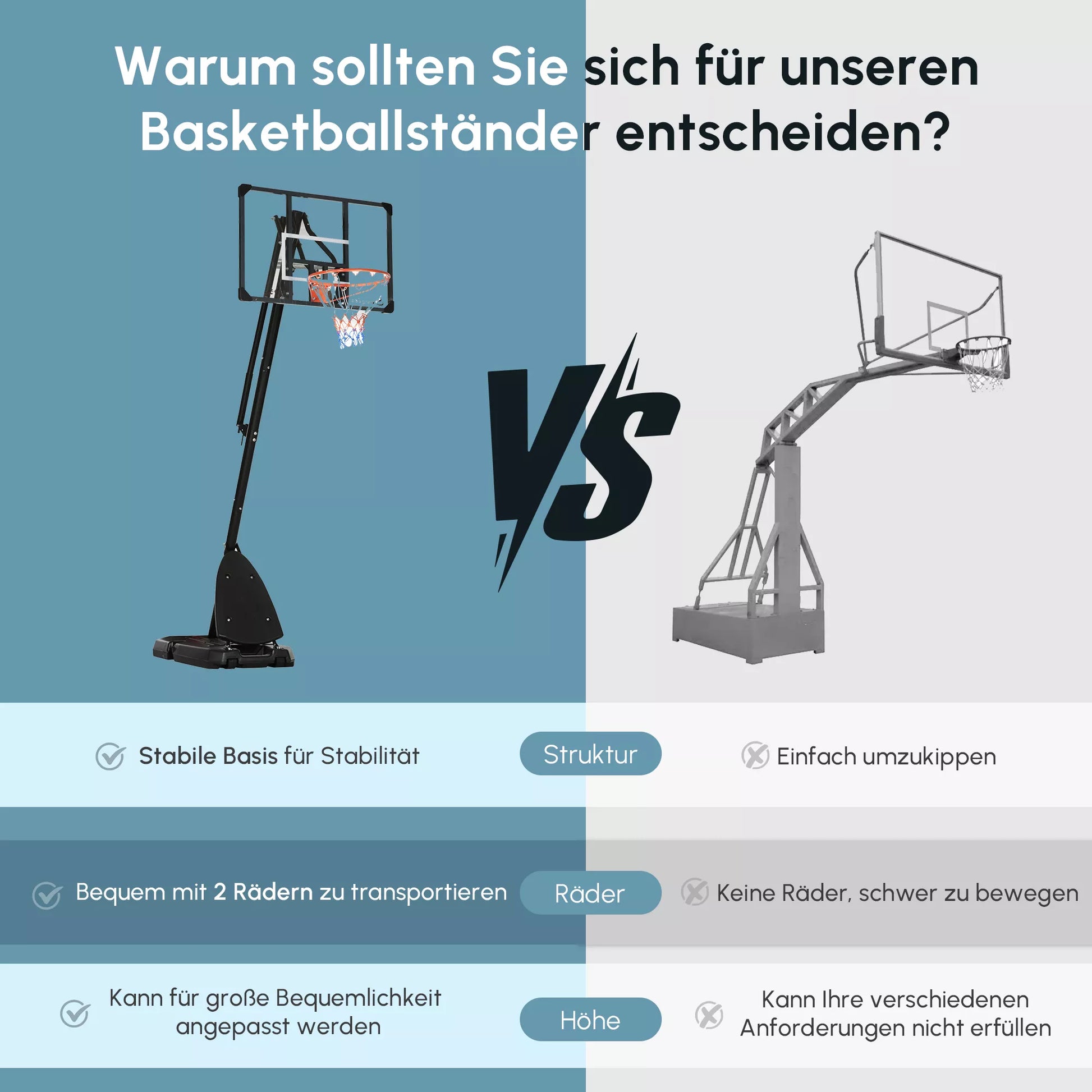 Mėgaukitės krepšinio žaidimu su šiuo krepšinio stovu. Jis reguliuojamo aukščio, todėl tinka visoms amžiaus grupėms – taip kiekvienas gali žaisti. Dėl tvirto plieninio rėmo, patvaraus nugarėlės skydo ir plyšimui atsparaus krepšinio tinklo stovas suteikia profesionalią žaidimo patirtį. Pagrindas turi būti užpildytas vandeniu arba smėliu, kad užtikrintų nepajudinamą stabilumą. Be to, dėl ratukų stovą lengva perkelti bet kur.
