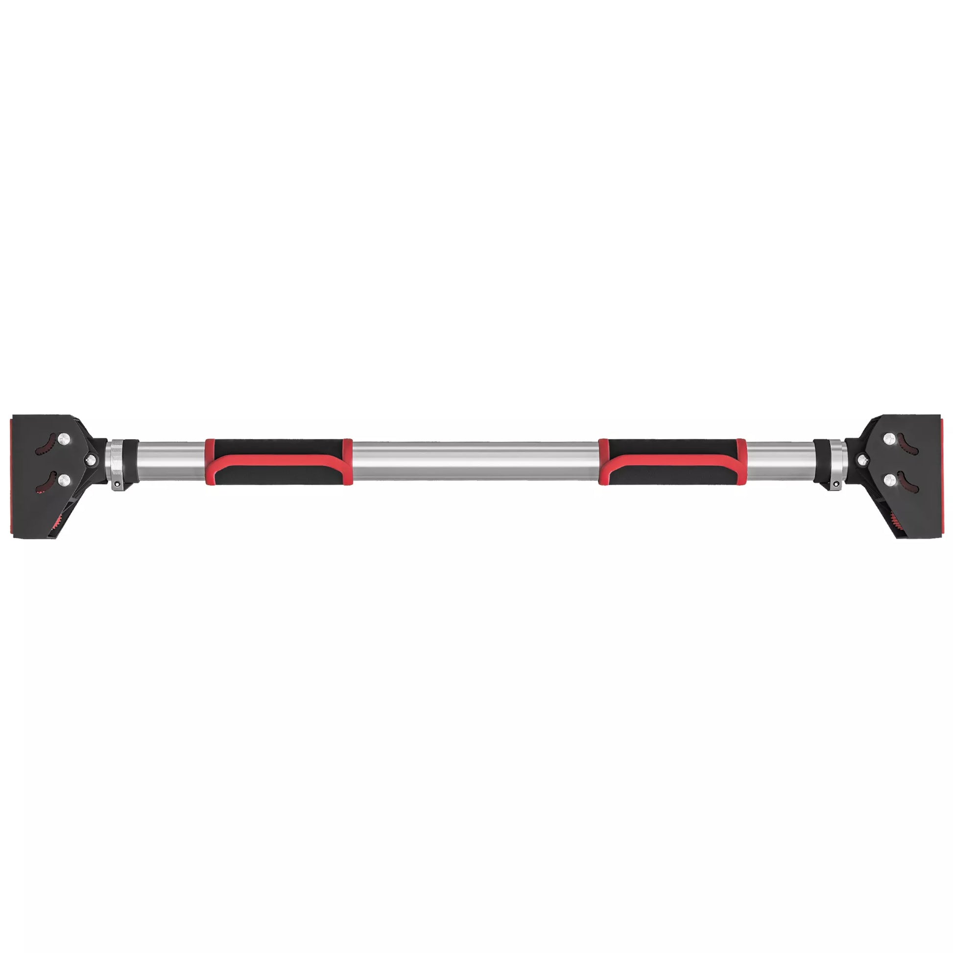Reguliuojamas prisitraukimų strypas durų staktoms, montuojamas be gręžimo, plieninis, iki 200 kg, 75-92 x 10 x 7 cm, juodas/raudonas