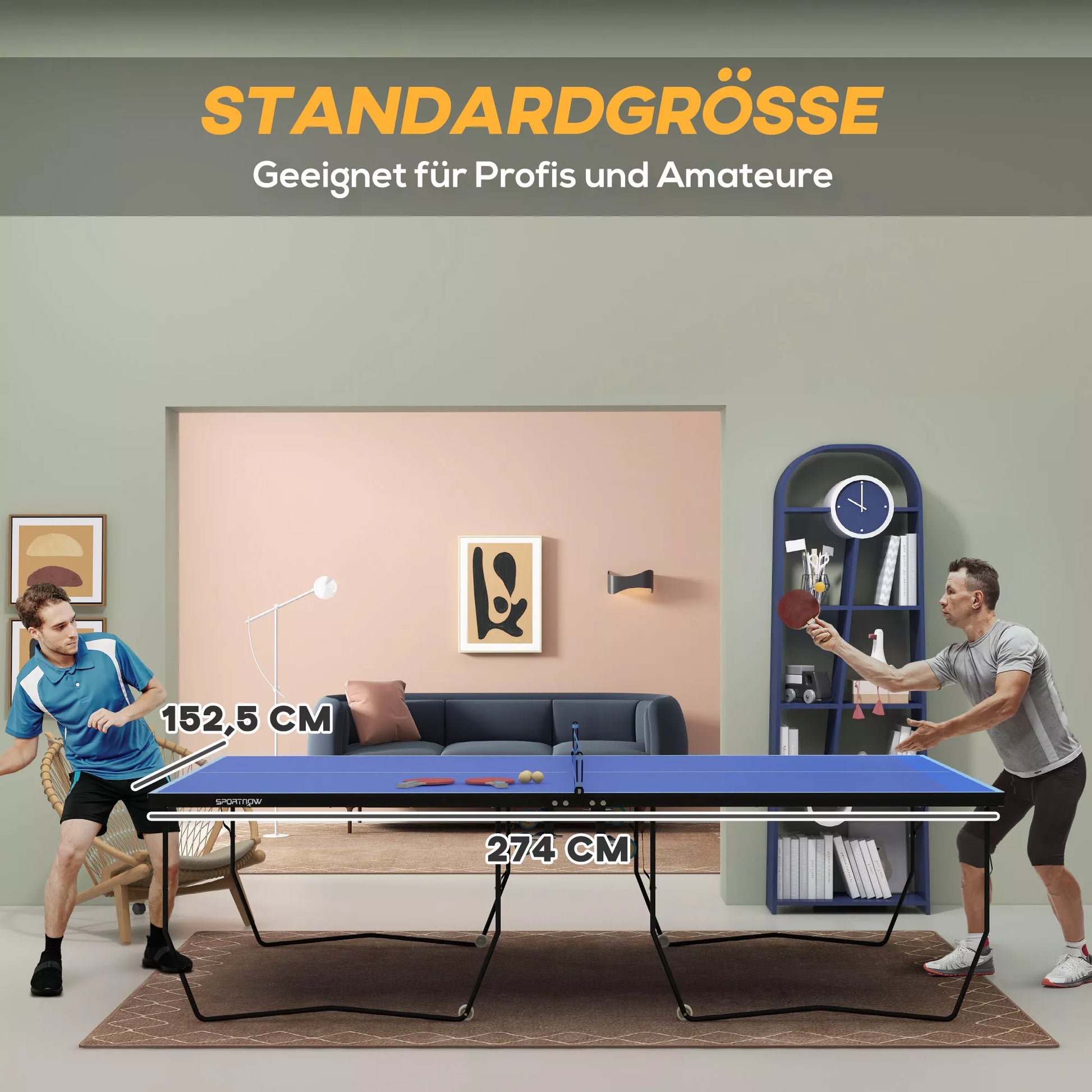 Sulankstomas stalo teniso stalas su 8 ratais, milteliniu būdu dengtu plieniniu rėmu, MDF, 274 x 152,5 x 76 cm, Mėlynas
