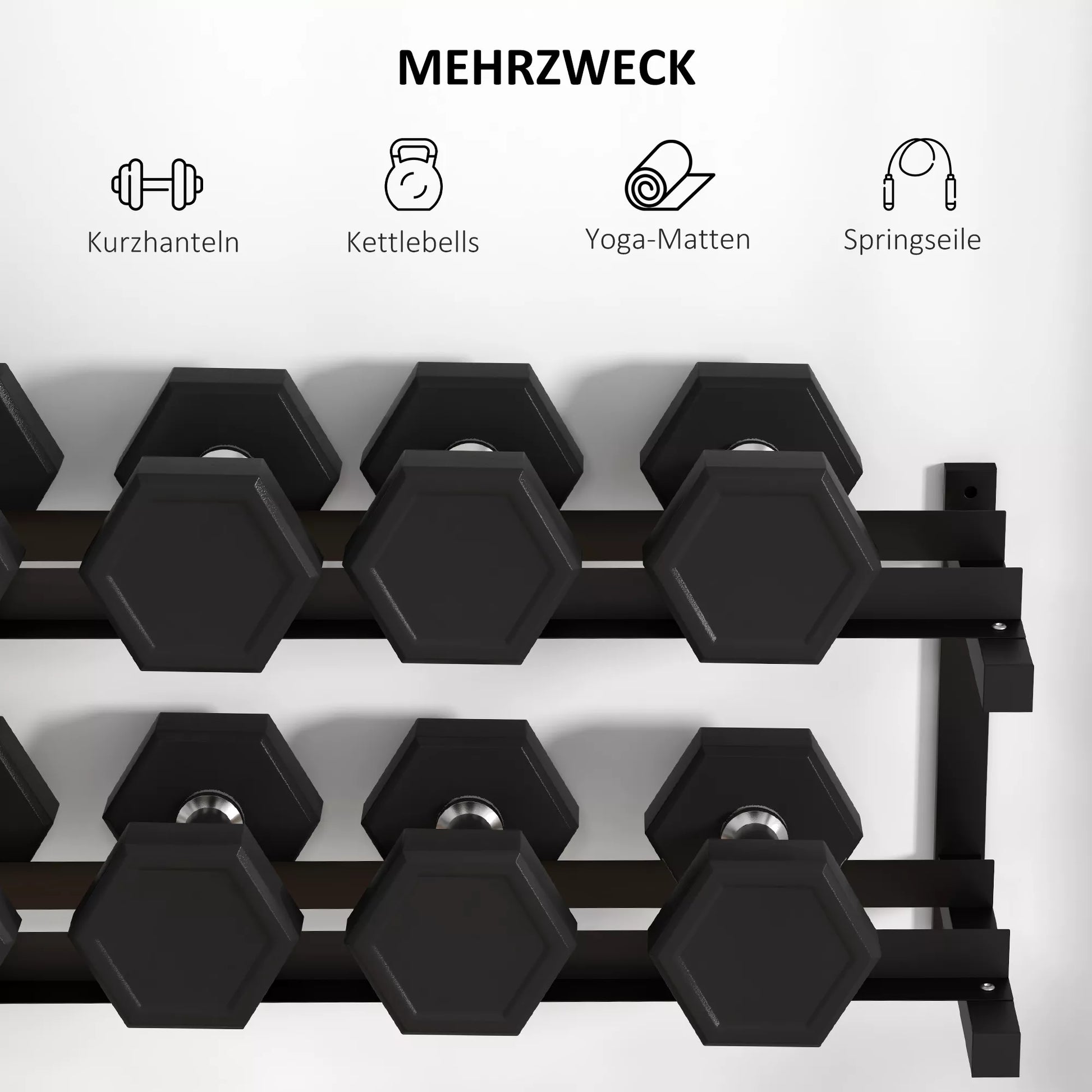 Hantelių stovas, 2 pakopų, iki 70 kg, plienas, 98x40x35 cm, juodas