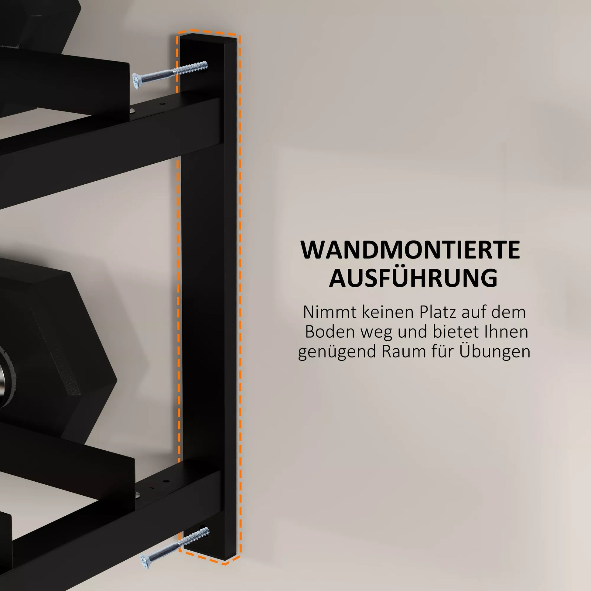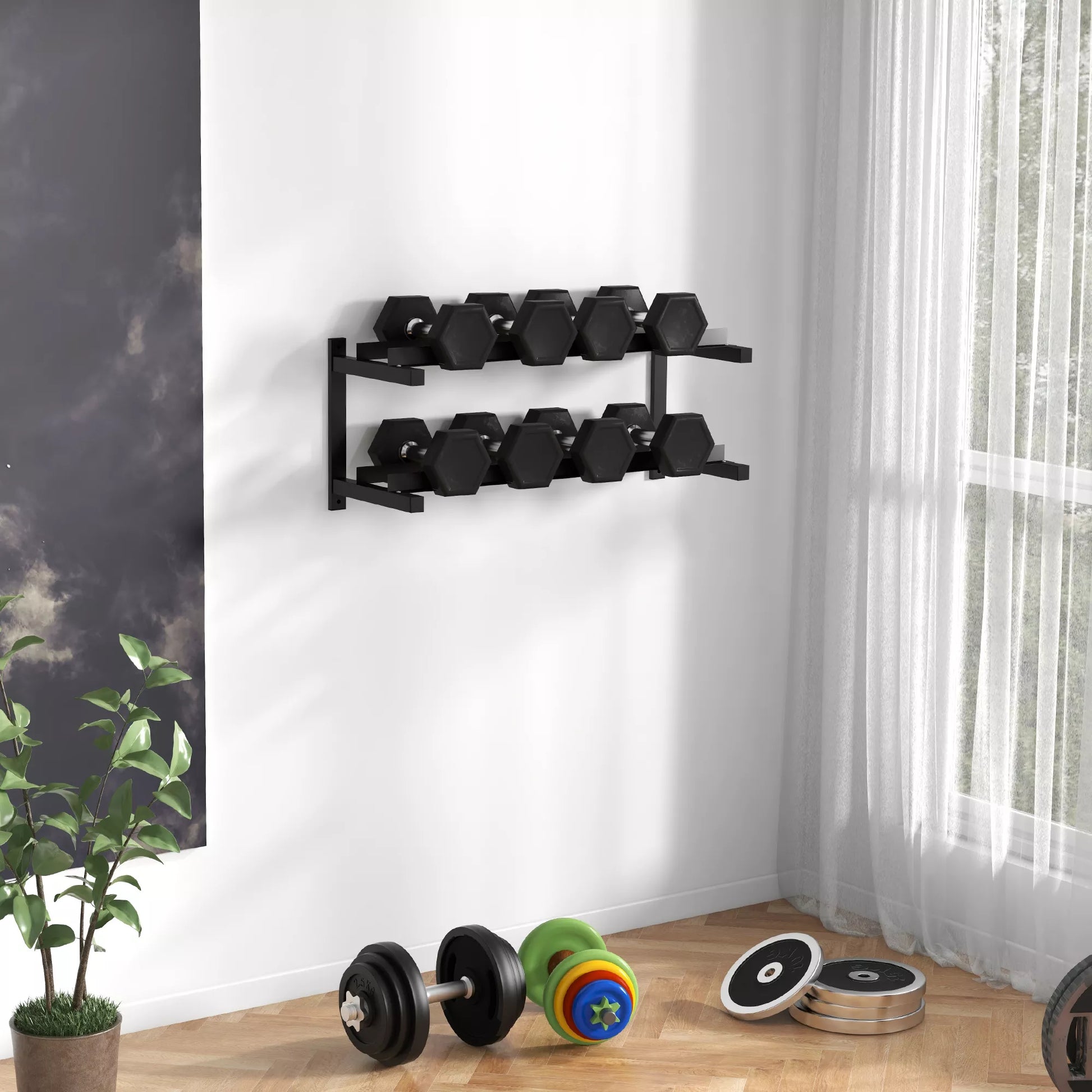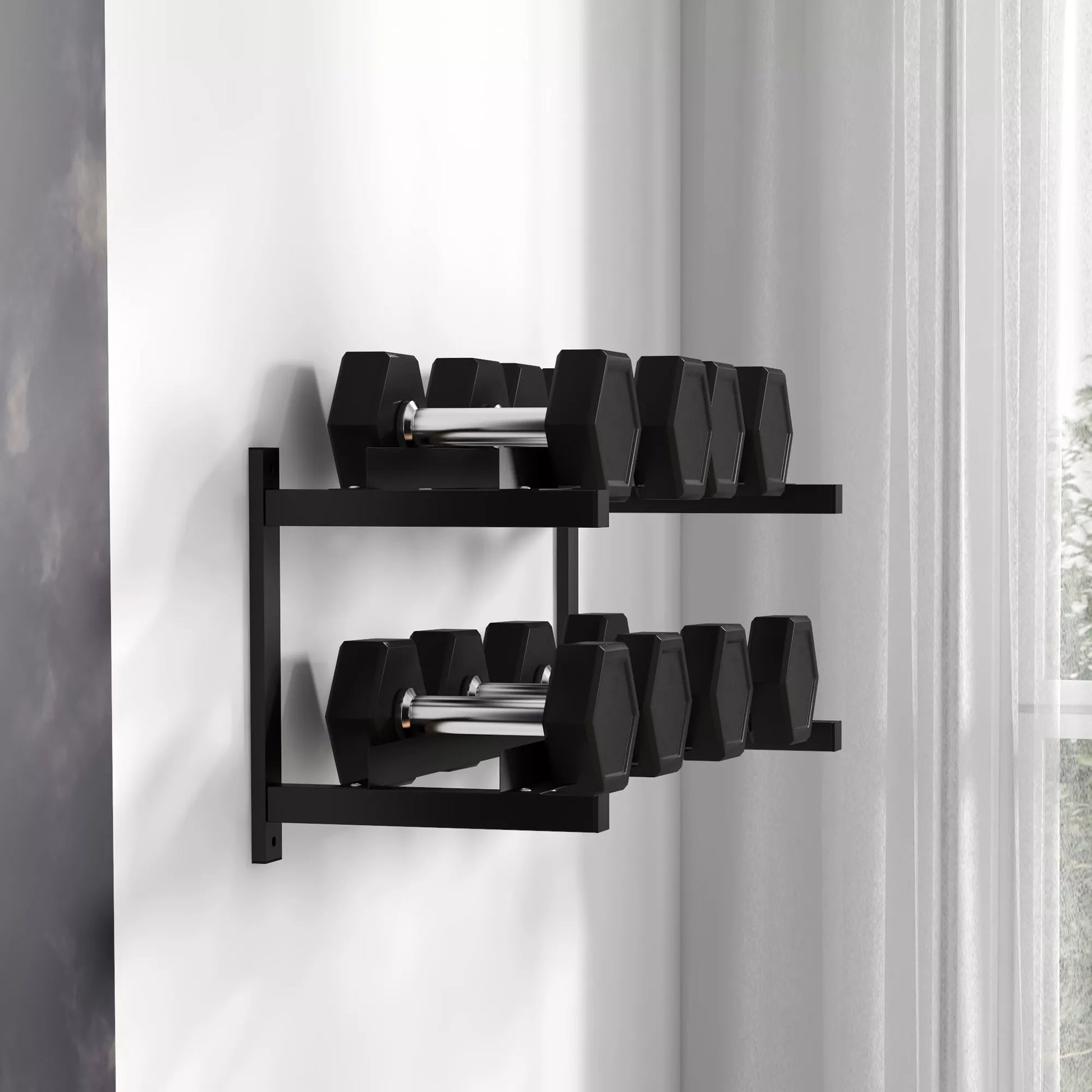 Tvarkingai ir organizuotai palaikykite savo treniruočių erdvę su šiuo hantelių stoveliu. Dvi lentynos gali atlaikyti iki 70 kg – tai daug vietos jūsų hanteliams tvarkingai laikyti. Pagamintas iš tvirto plieno, kad svoriai nenukristų – užtikrina saugią ir tvarkingą treniruočių erdvę. Sprendimas montuojamas ant sienos, neužima grindų ploto ir palieka jums daug erdvės treniruotėms.