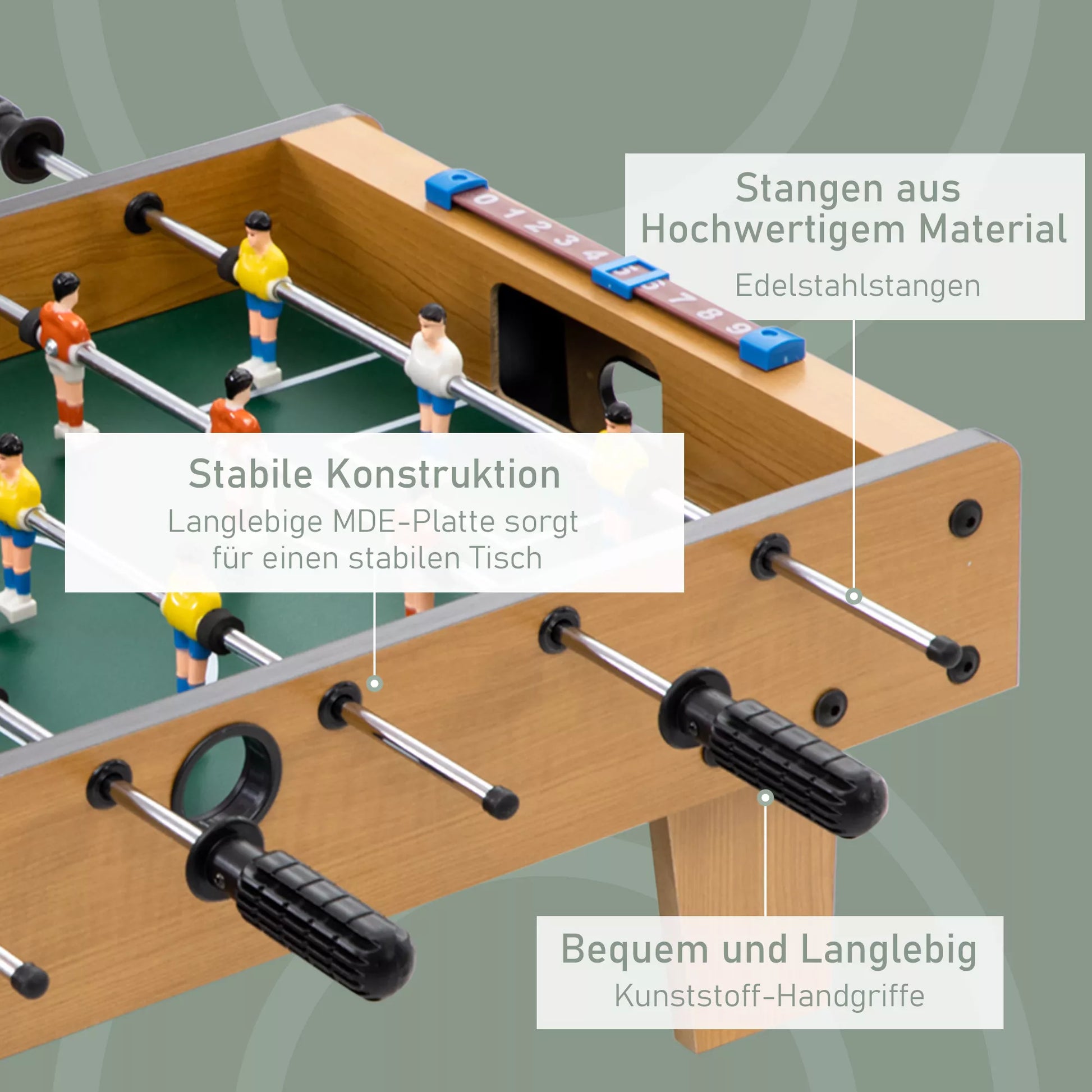 - ✔ Kompaktiškas stalo futbolas su medine konstrukcija