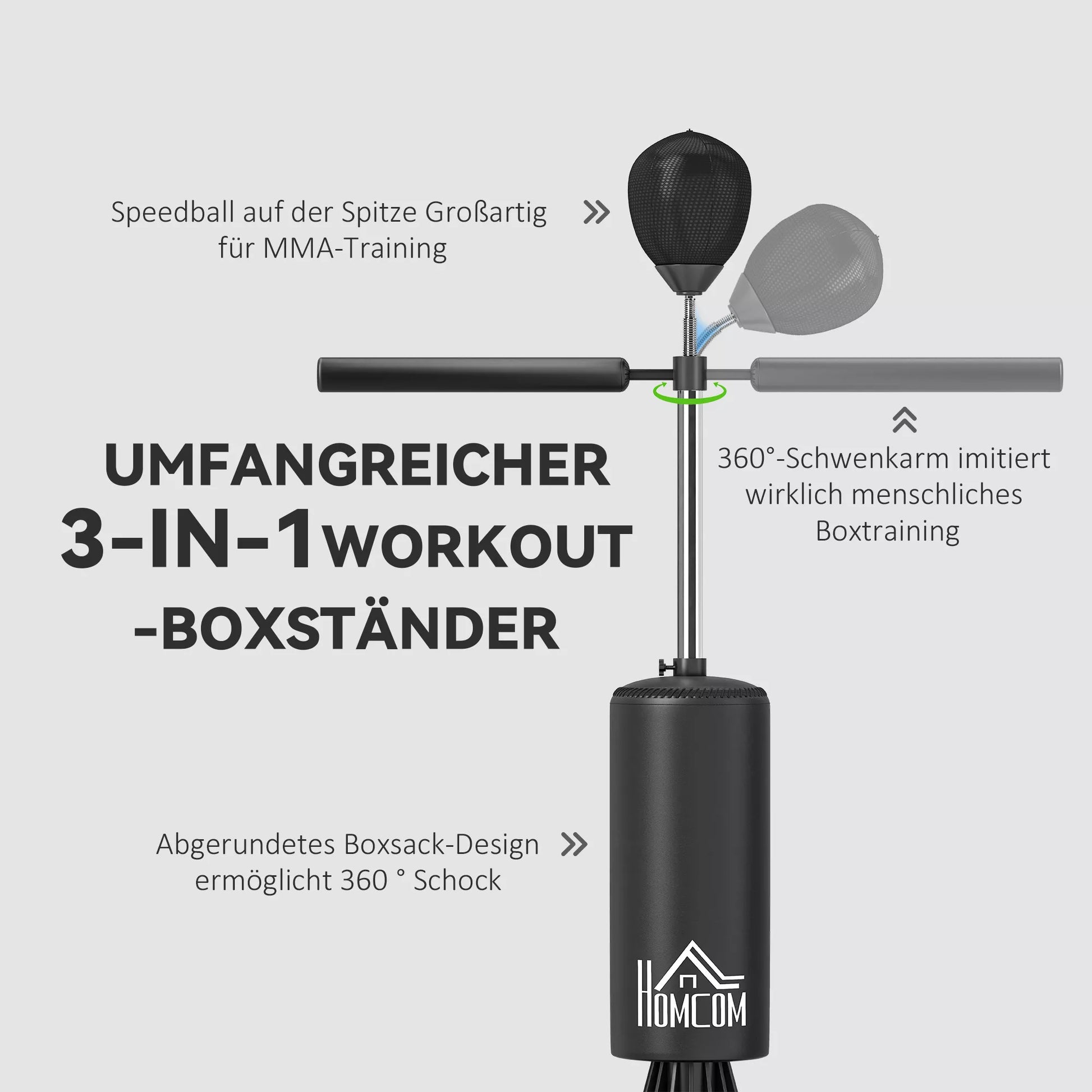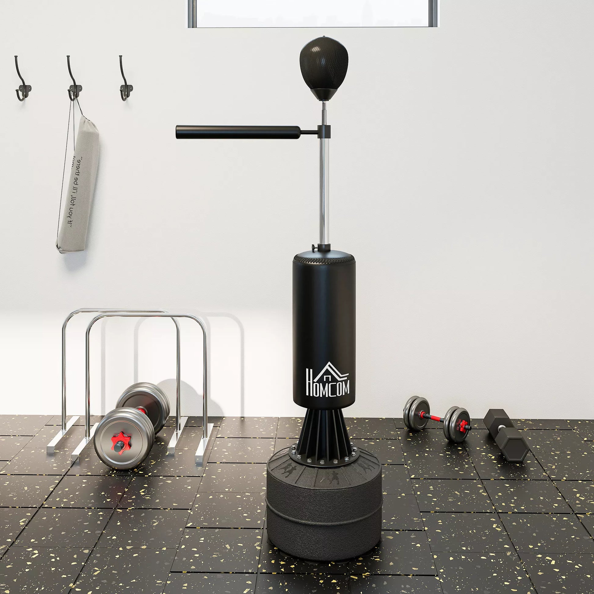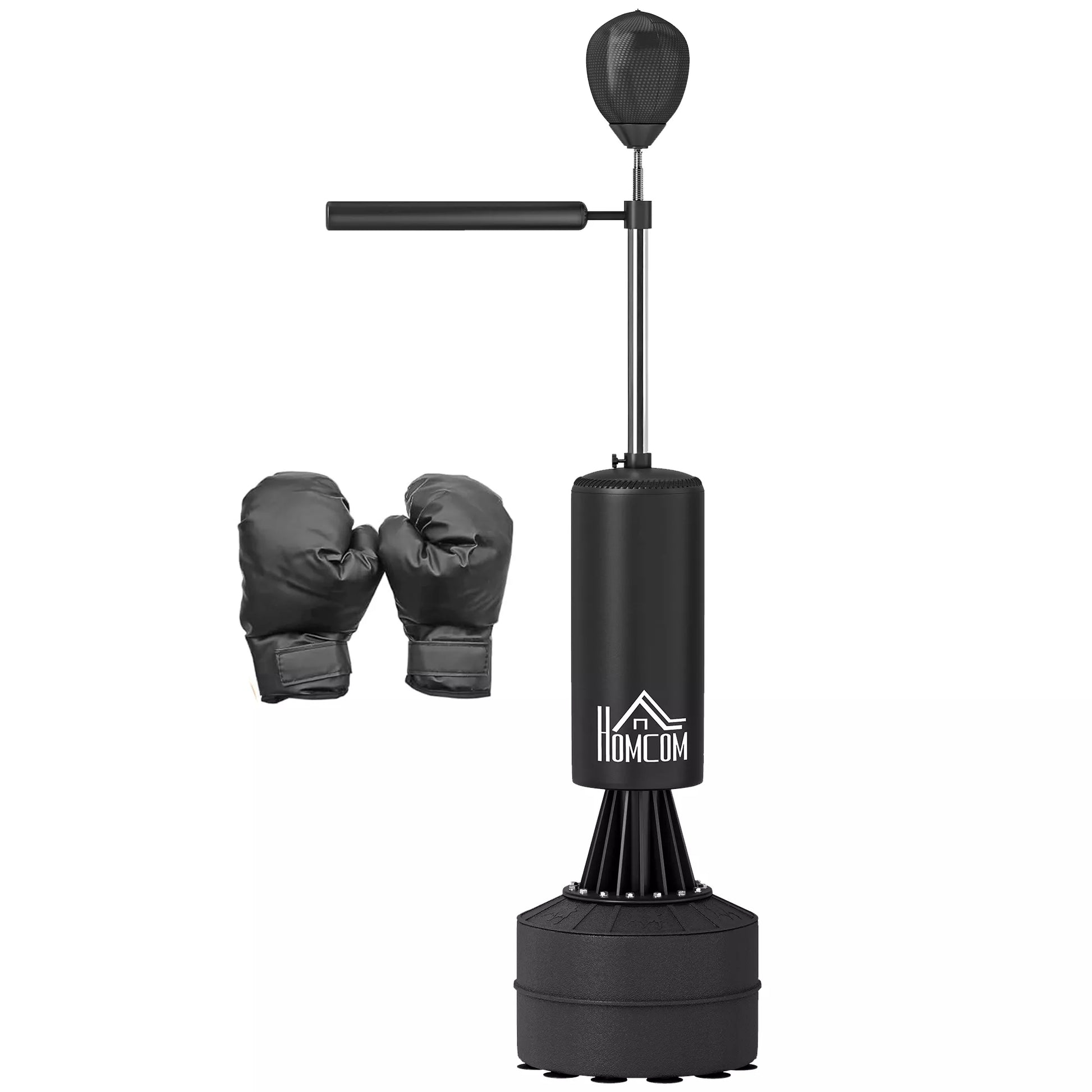 Stovintis bokso maišas su speedball, refleksine lazda, reguliuojamo aukščio, suaugusiems, 155-205cm, Juodas