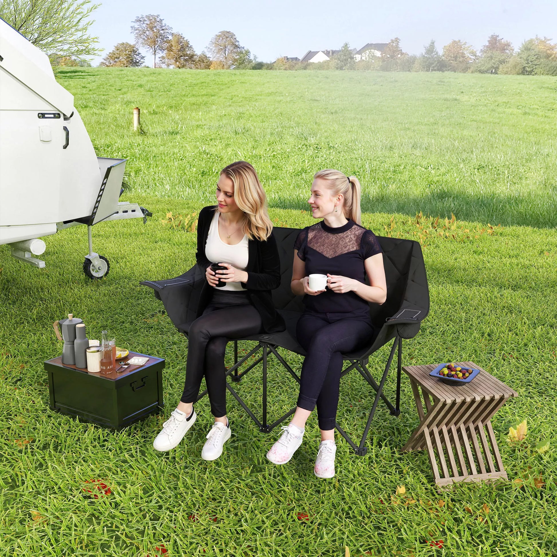 Sulankstomas 2 vietų kempingo kėdė su nešimo maišeliu, skirta naudoti lauke, atlaiko iki 250 kg svorį, 145 x 60 x 92 cm, juoda spalva