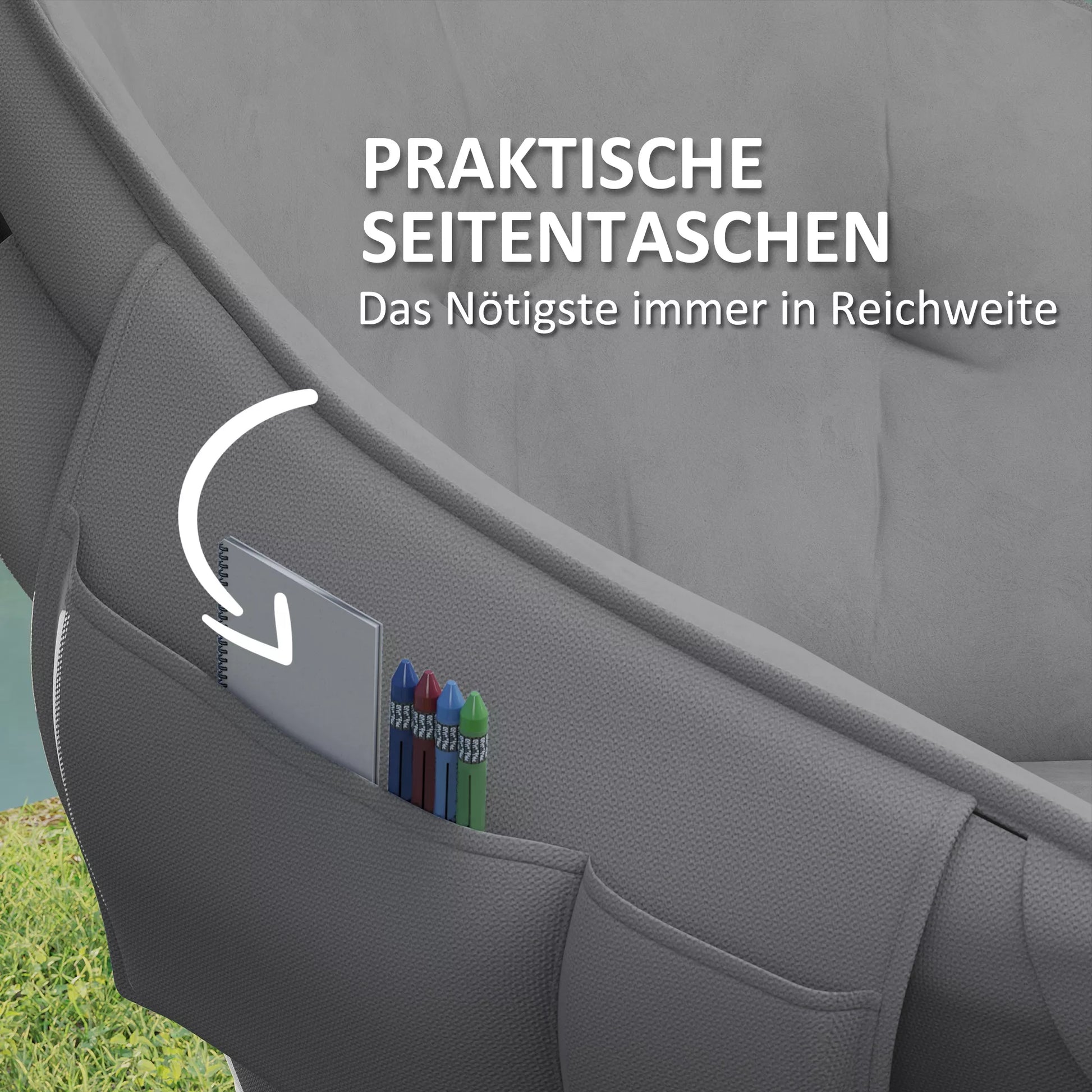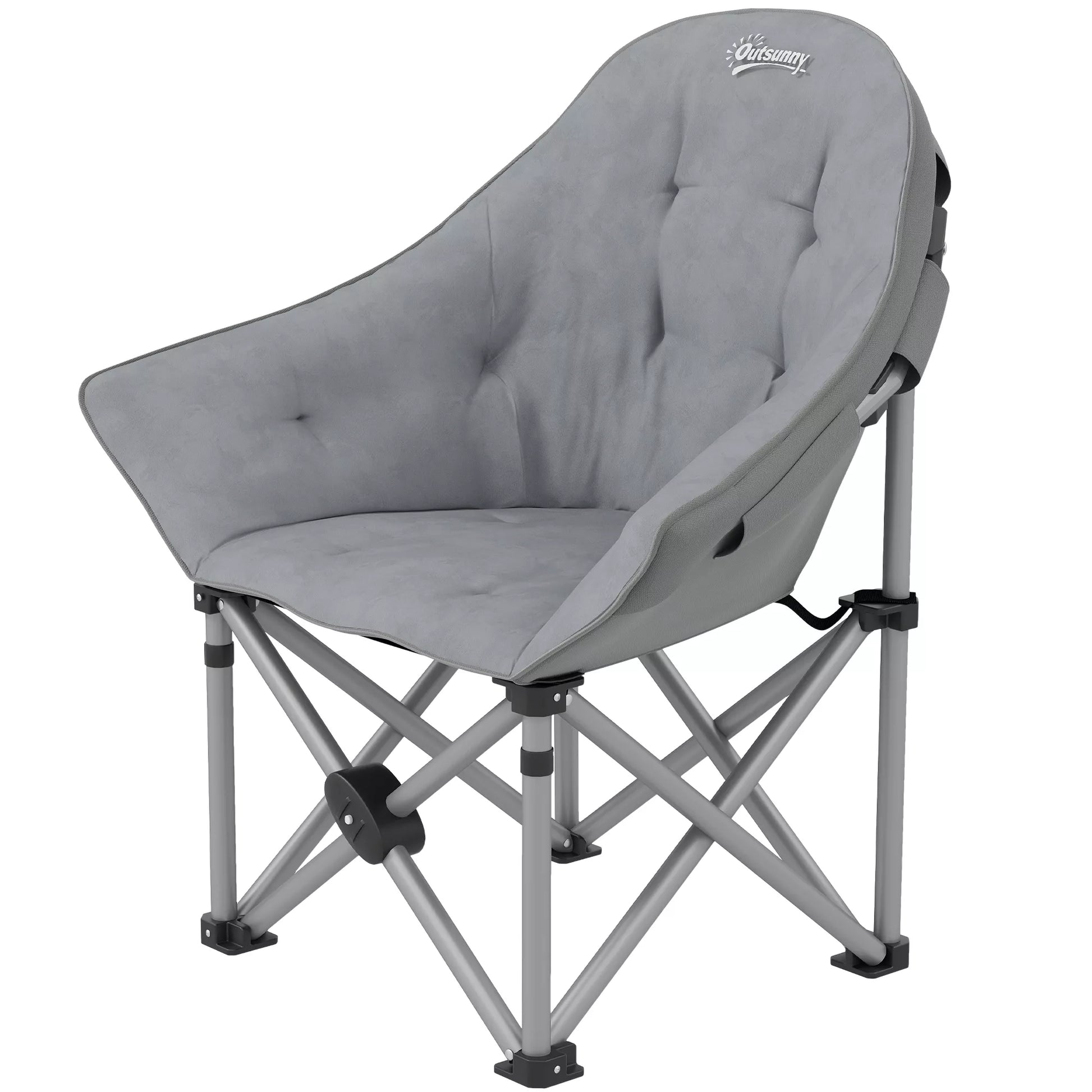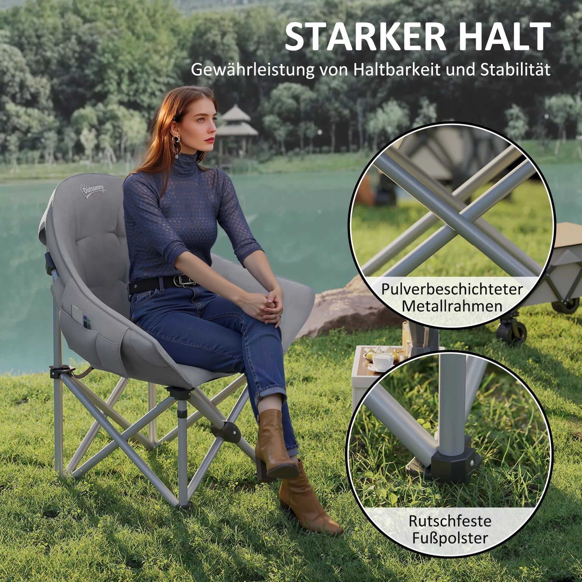 Sulankstoma Kempingo Kėdė su Šonine Kišene ir Nešiojimo Krepšiu, Paminkštinta, Iki 120kg Apkrovos, Tamsiai Pilka