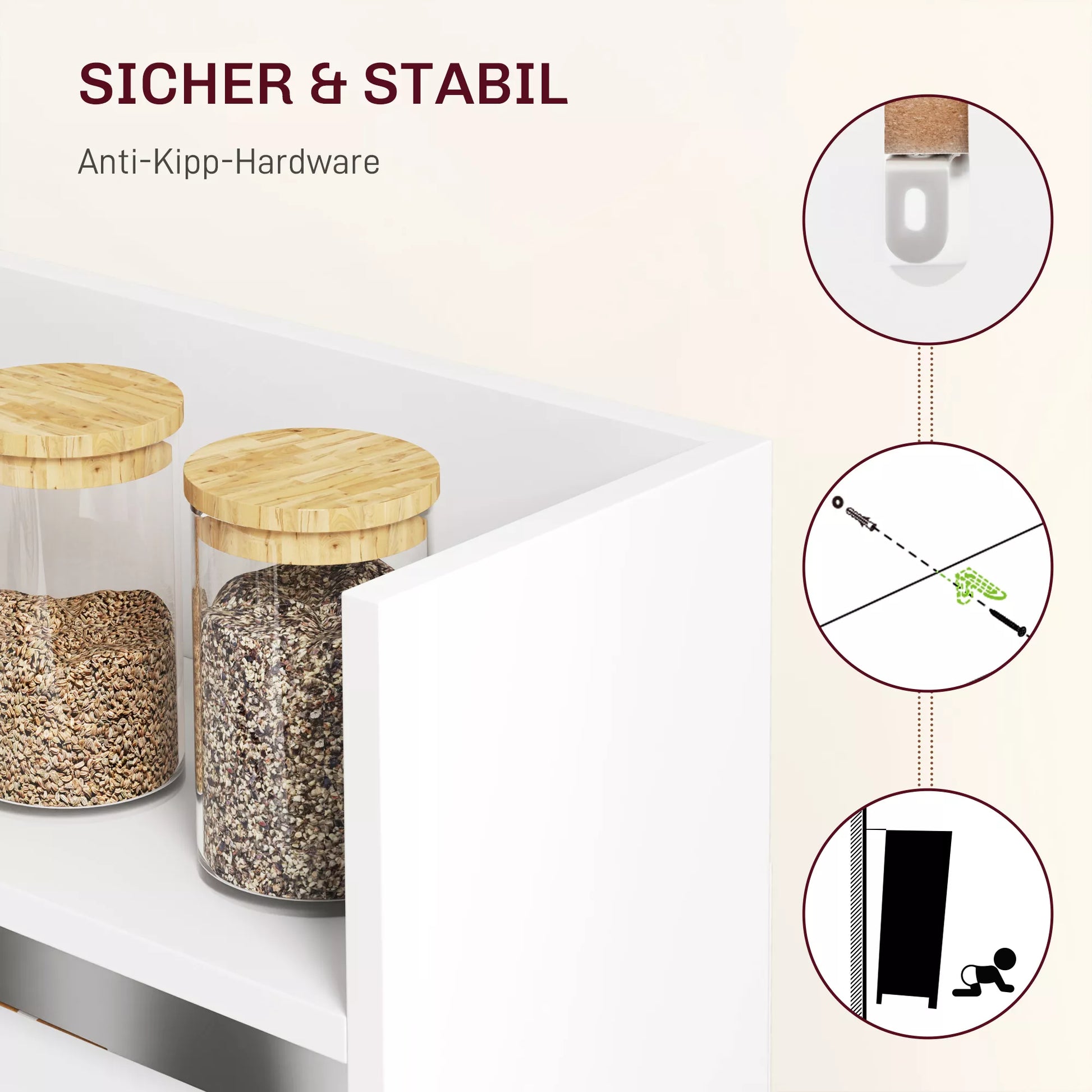 Atnaujinkite savo gyvenamąją erdvę su sulankstomu valgomojo stalu, kuris idealiai praplečiamas trims žmonėms. Puikiai tinkantis mažoms virtuvėms, jis taip pat gali būti naudojamas kaip dekoratyvinis vitrininis stalas su viršutine lentyna. Trys nepastebimos valgomojo stalo lentynos suteikia papildomos vietos daiktams laikyti. Dėl apsaugos nuo apvirtimo mechanizmo šis ištraukiamas valgomojo stalas užtikrina optimalų stabilumą bet kuriuo metu virtuvėje, valgomajame ar svetainėje.