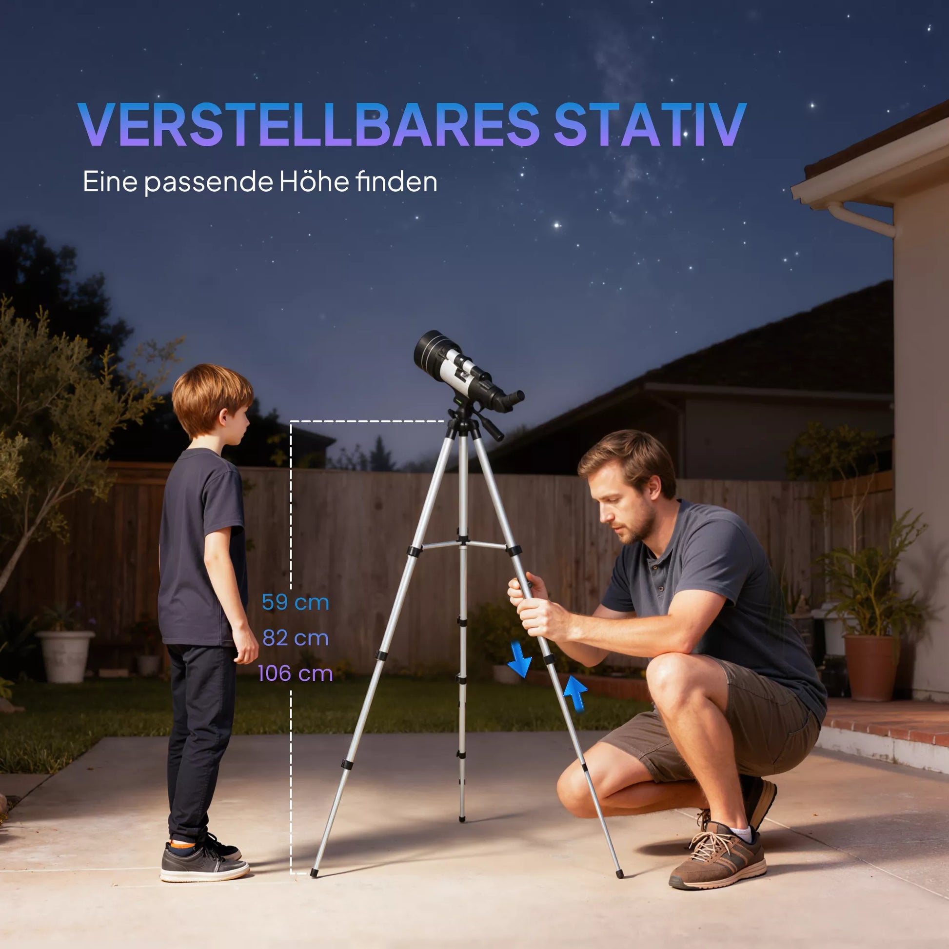 - ✔ Keturių pakopų reguliuojamas teleskopo stovas tinkamam aukščiui