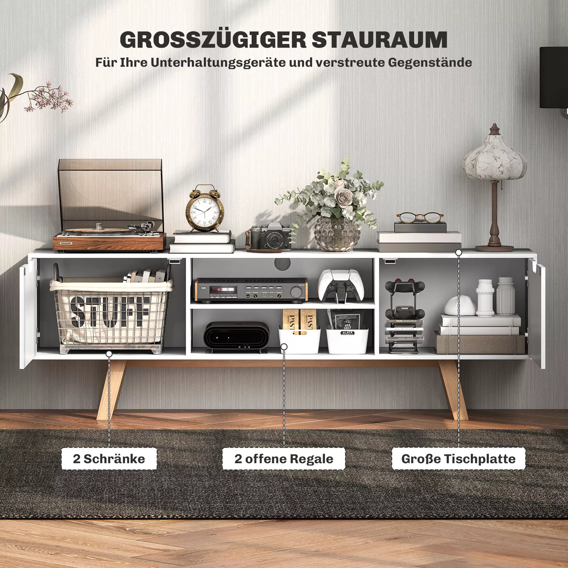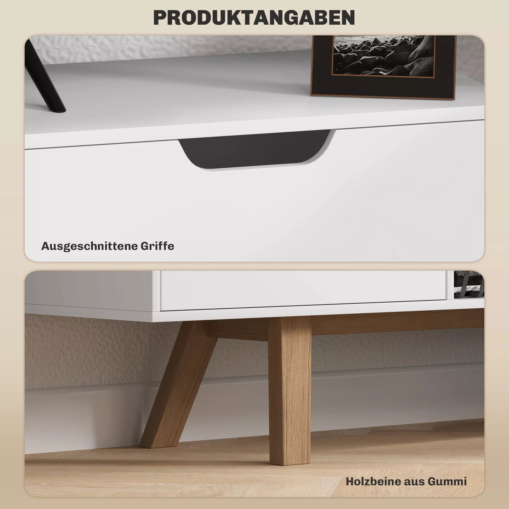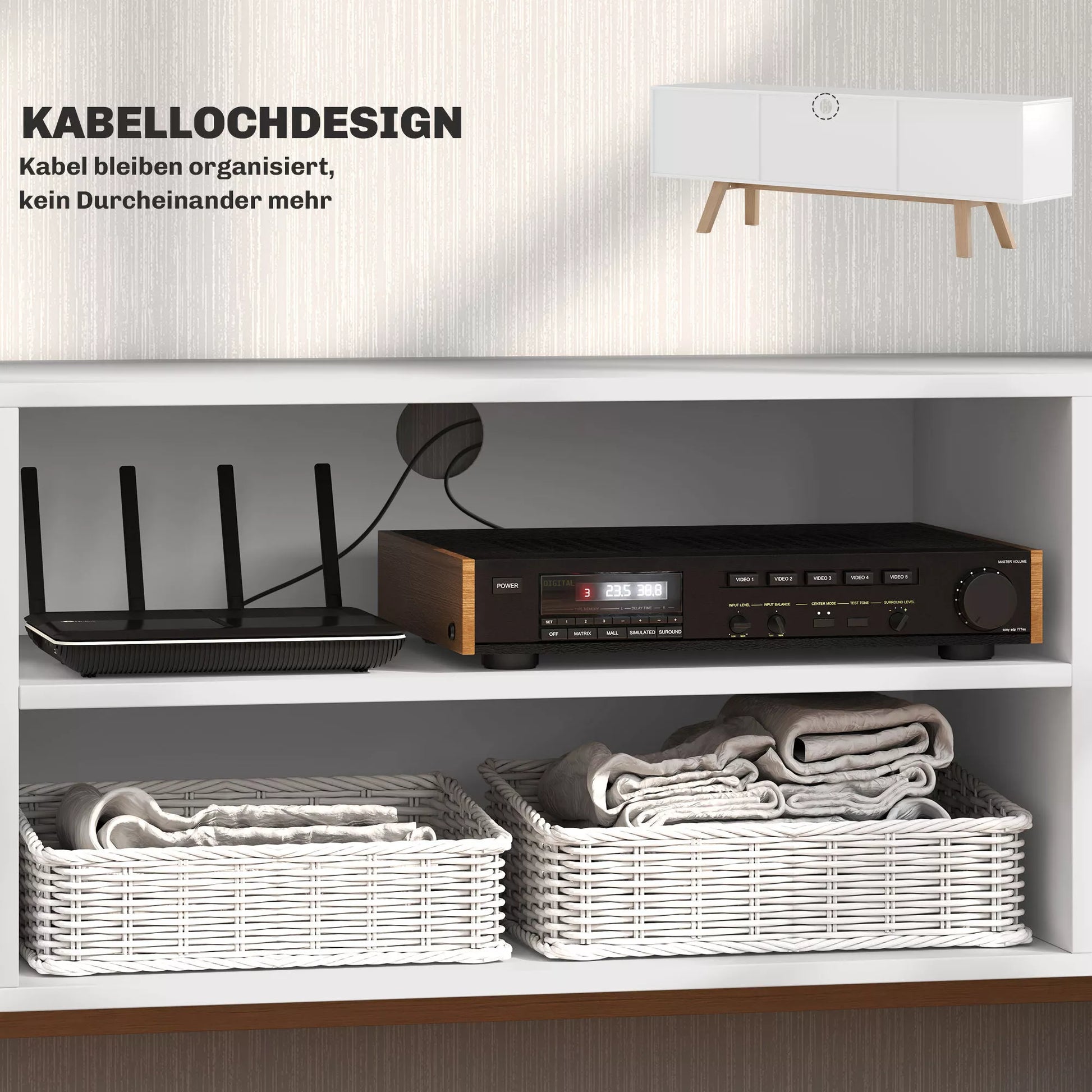 TV komoda su stalčiais ir atviromis lentynomis, MDF, 150 x 39 x 50 cm, Balta