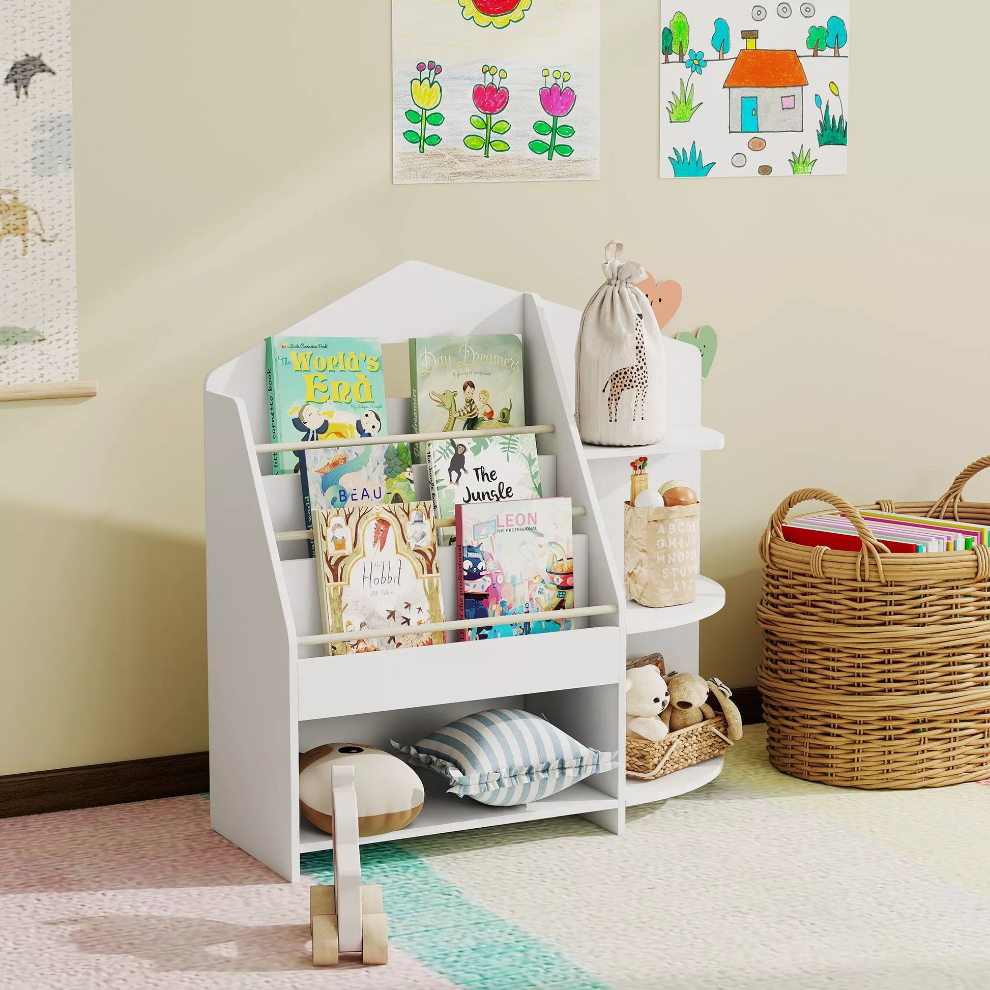 Vaikiška lentyna su 7 lentynomis knygoms, žaislams, suapvalintais kampais, atlaiko 40 kg, balta