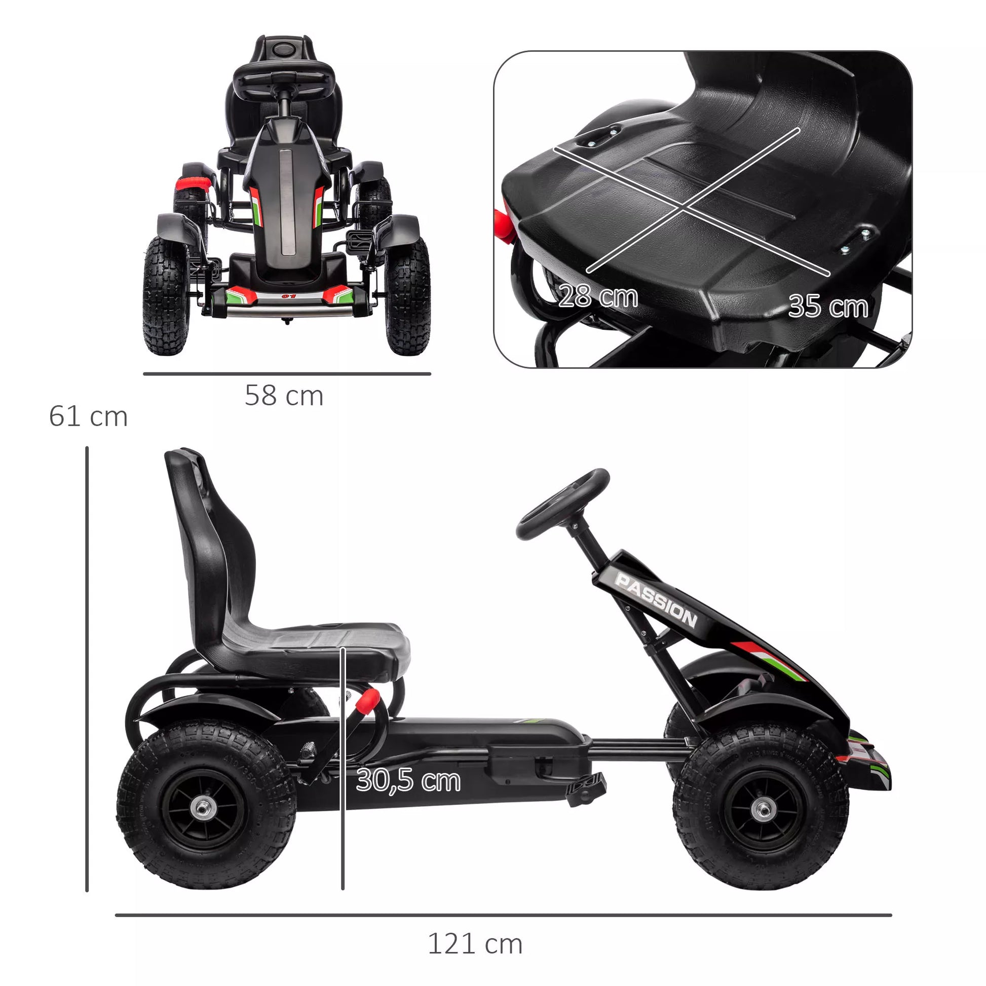 Vaikariškas kartingas, reguliuojama sėdynė, rankinis stabdys, tinkamas nuo 5 metų, 121 x 58 x 61 cm, juodas