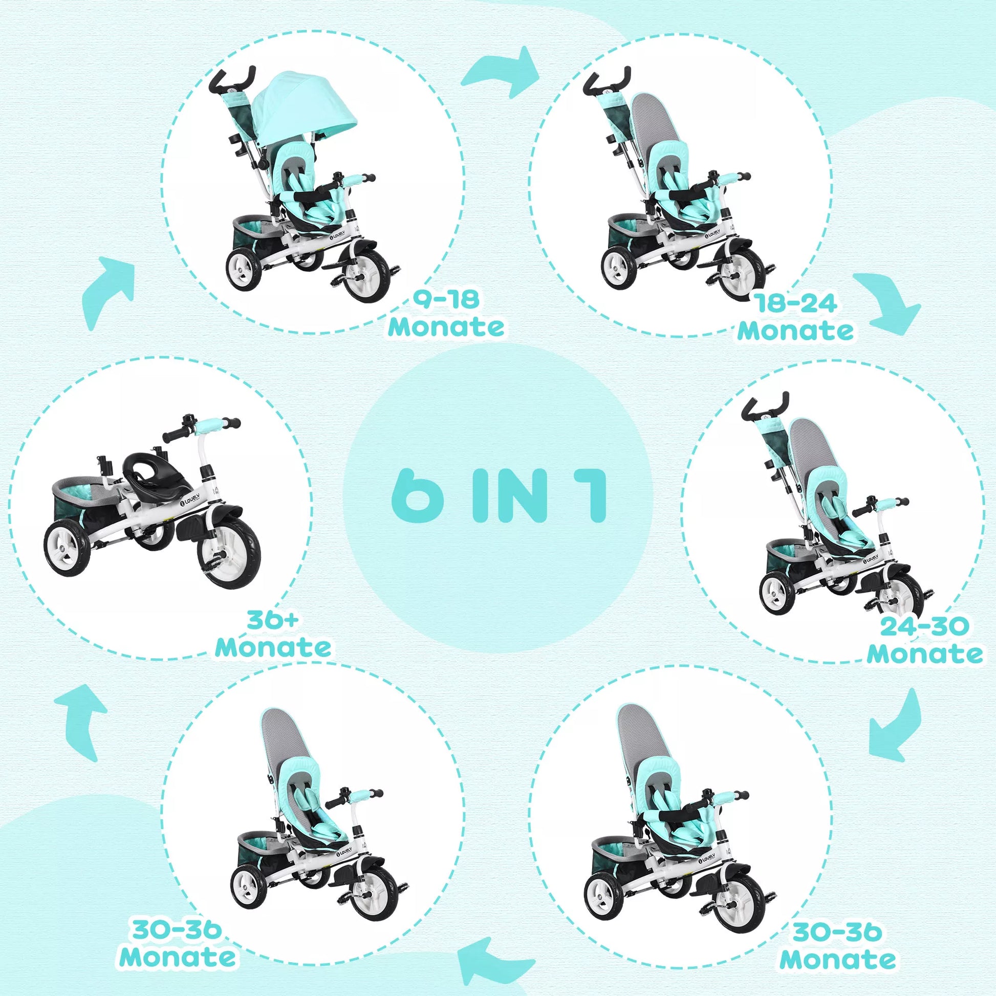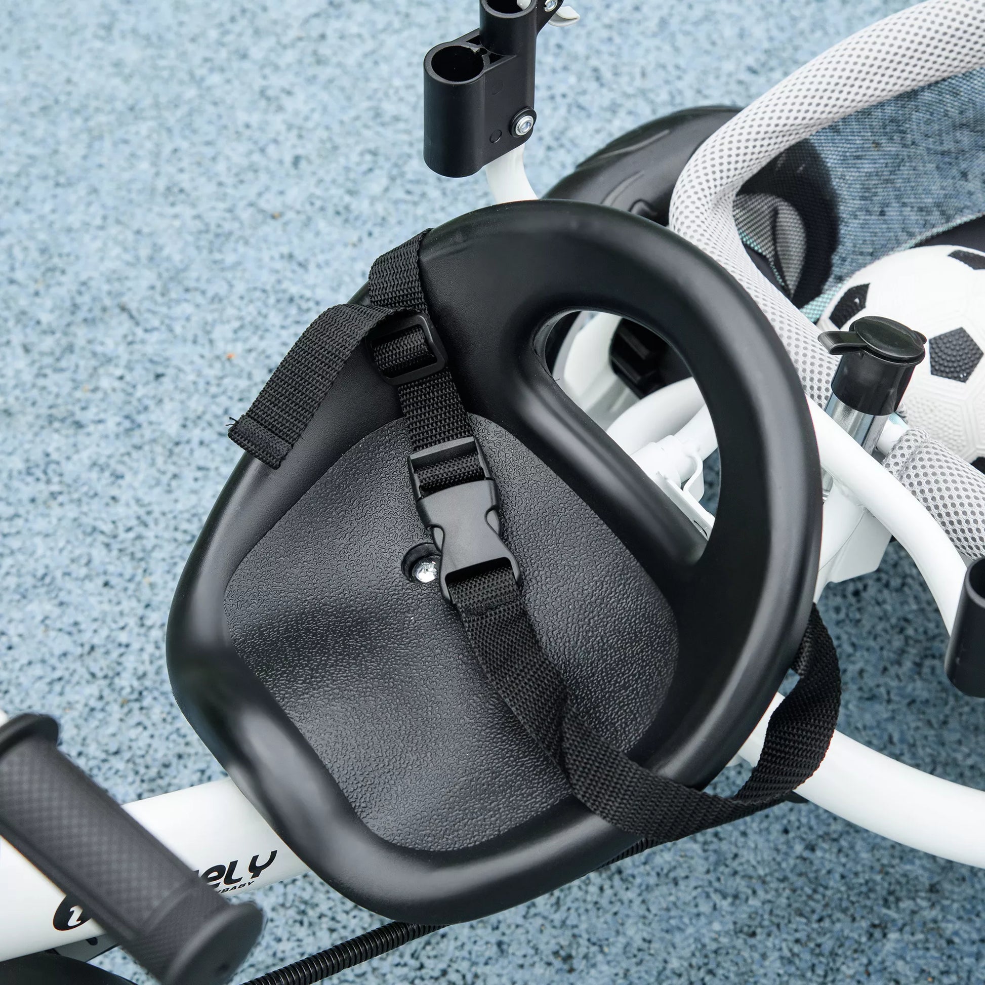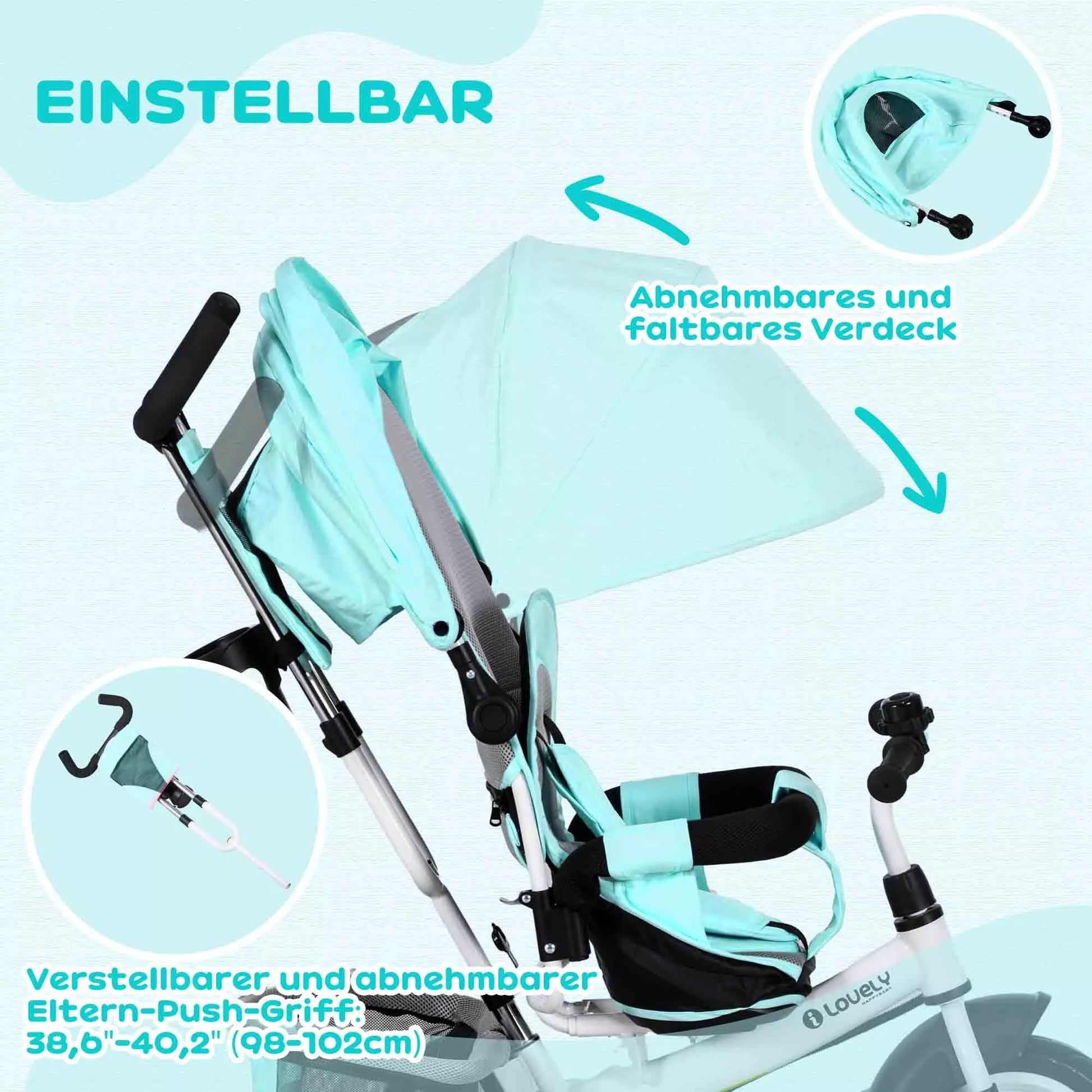 Šis madingas trijų ratų dviratis su stumiamu strypu skatina vaikus mokytis važiuoti. Jis turi tvirtą metalinį rėmą, kuris užtikrina saugumą, tris ratus stabilumui, patogią sėdynę ir du vairus. Dėl pritaikomo dizaino reguliuojamą stumiamąją rankeną ir triratės saulės stogelį galima nuimti, todėl jūsų vaikas gali tapti savarankiškesnis, kai tik taps saugesnis. Tinka vaikams nuo 12 iki 60 mėnesių.