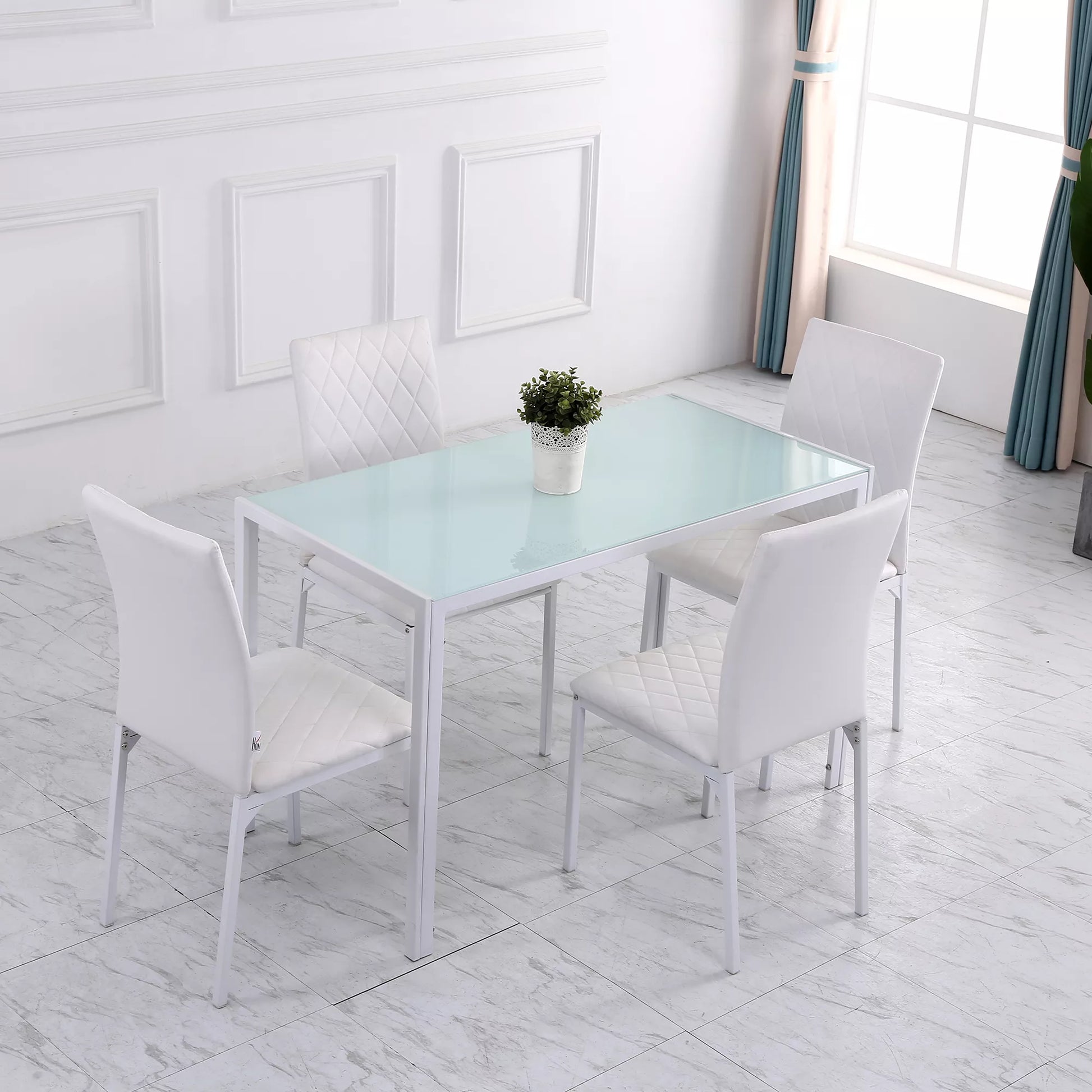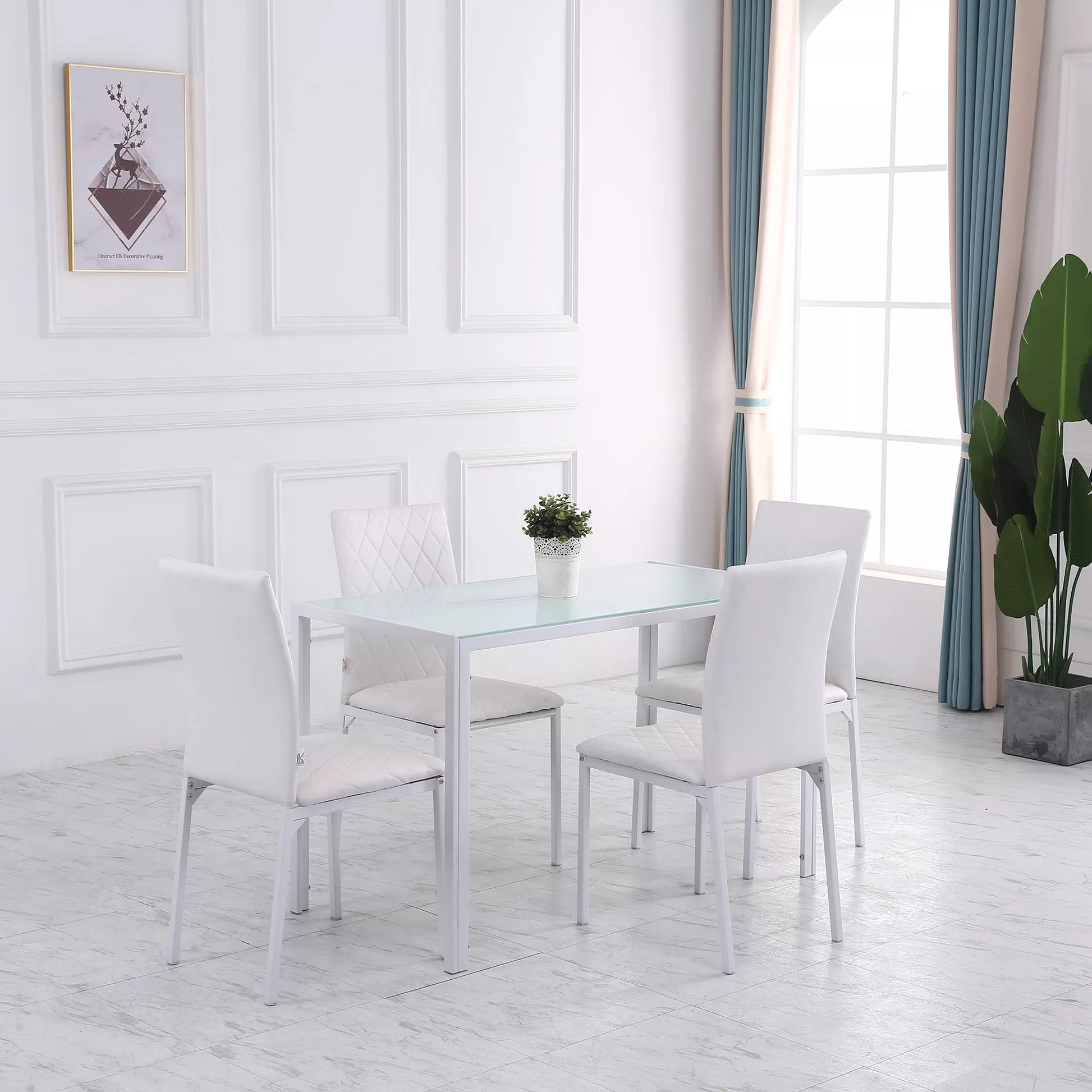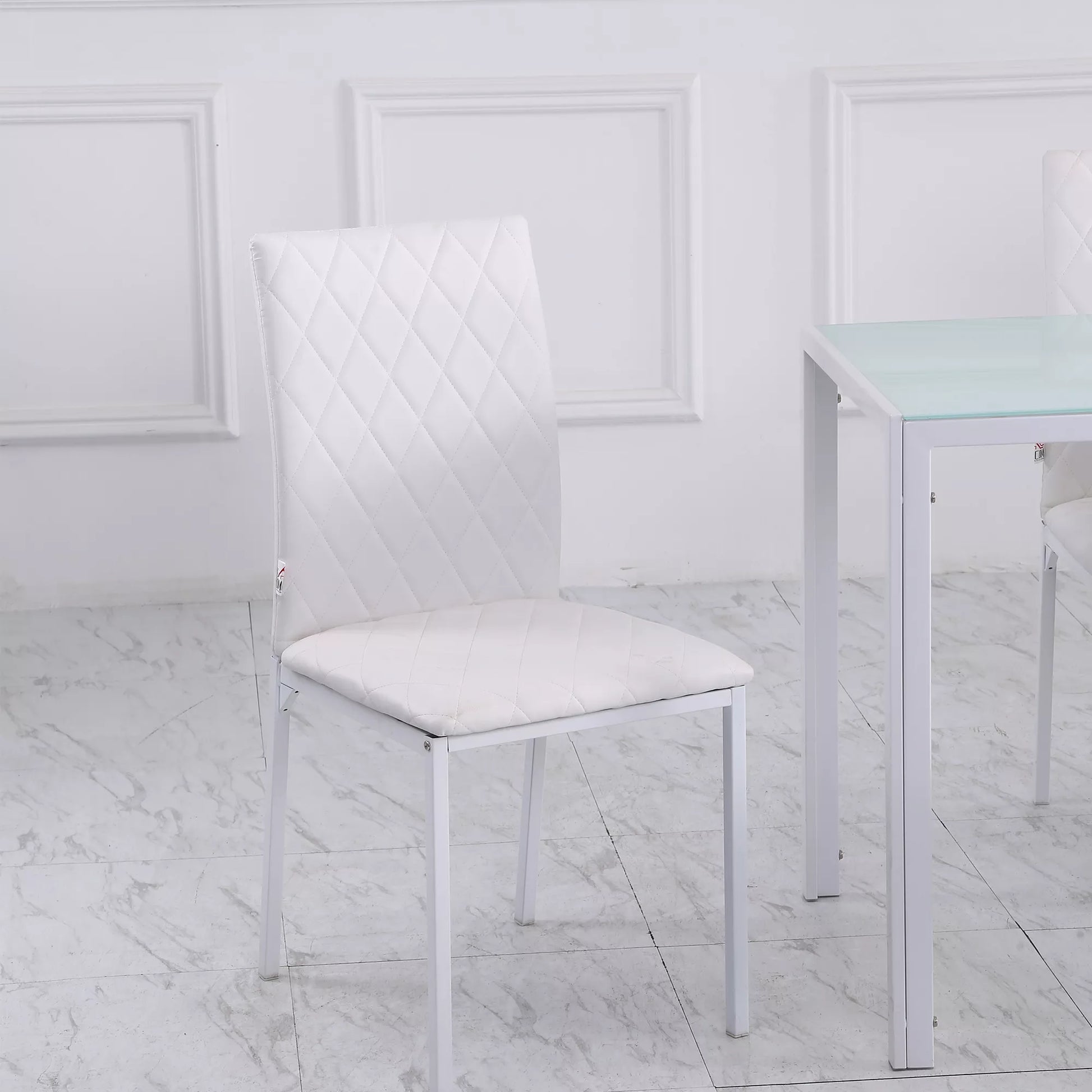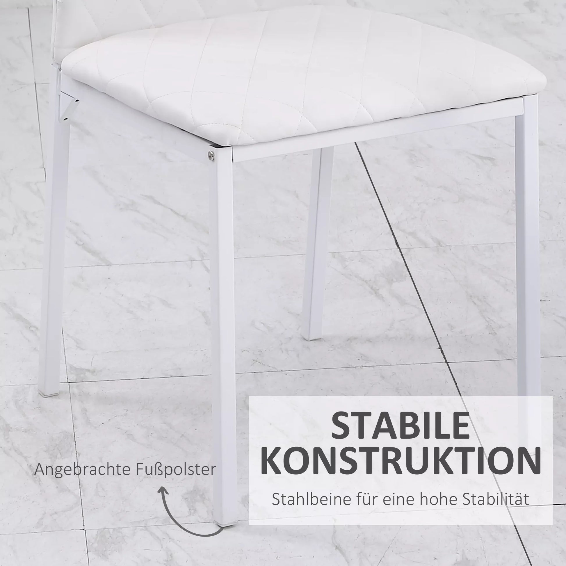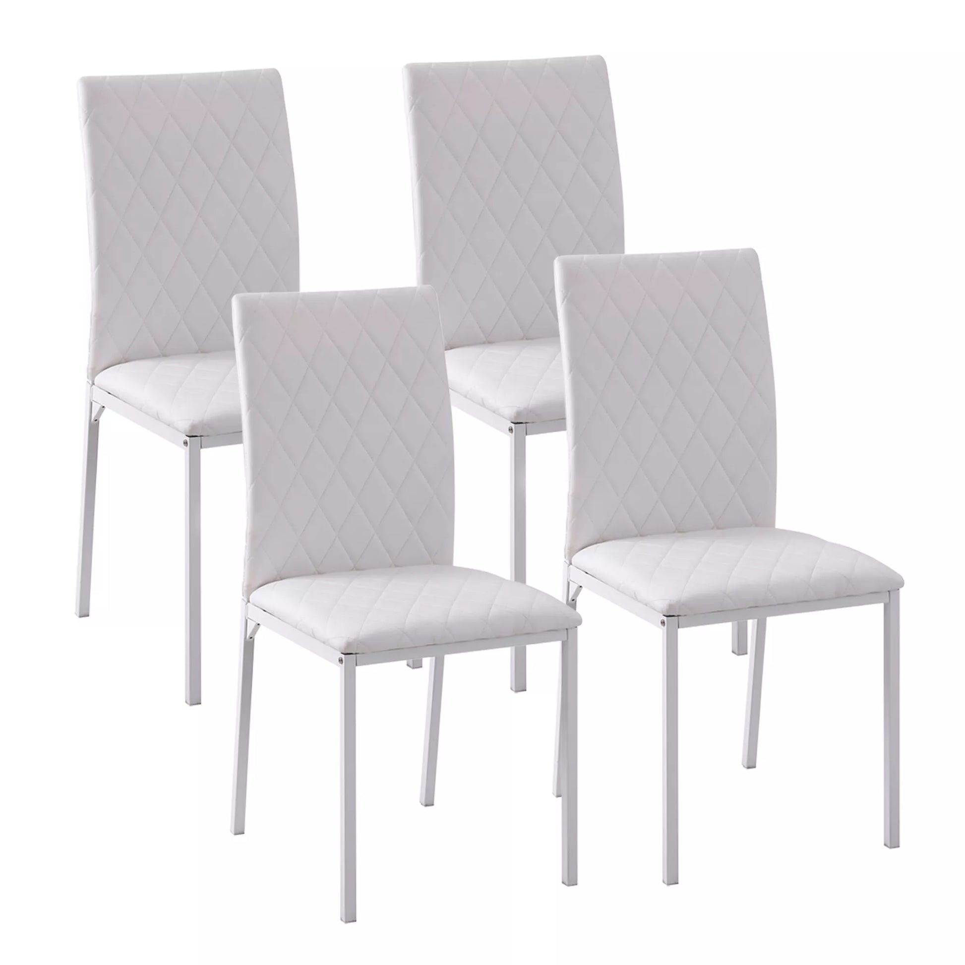 Valgomojo kėdės 4 vnt. komplekte, virtuvės kėdė su atlošu, dirbtinė oda, svetainės kėdė su grindų apsaugomis, kėdės, minkšta kėdė su metalinėmis kojomis prie valgomojo stalo, balta