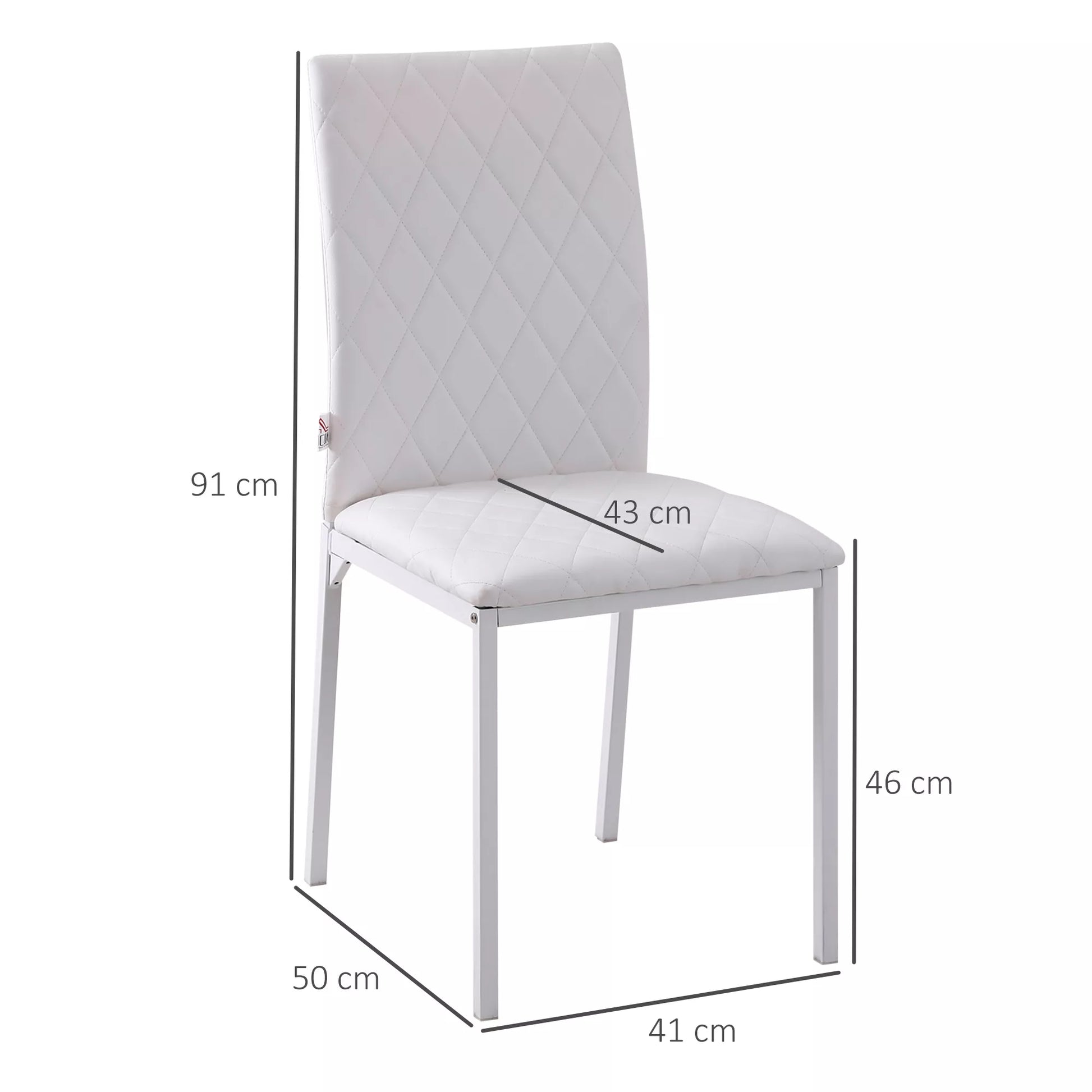 Sukurkite vietos kiekvienam svečiui su moderniu 4 virtuvės kėdžių komplektu. Aukšta atlošo atrama suteikia optimalią atramą, o minkšta sėdynė su dirbtinės odos apmušalu užtikrina maksimalų komfortą. Metalinis rėmas daro šias valgomojo kėdes tvirtas ir tinkamas naudoti kasdien. Jos aprūpintos grindų apsaugomis, kad būtų išvengta įbrėžimų.