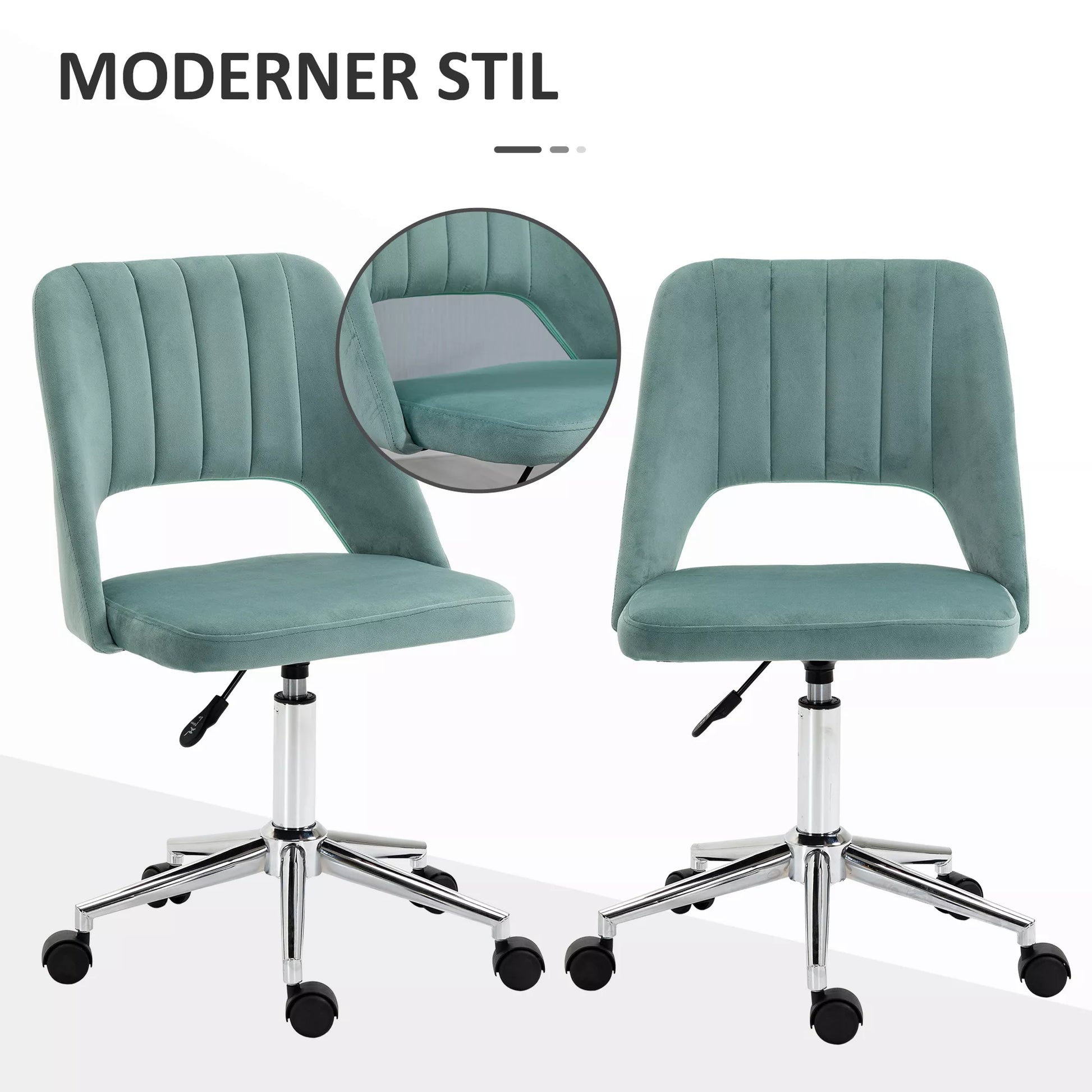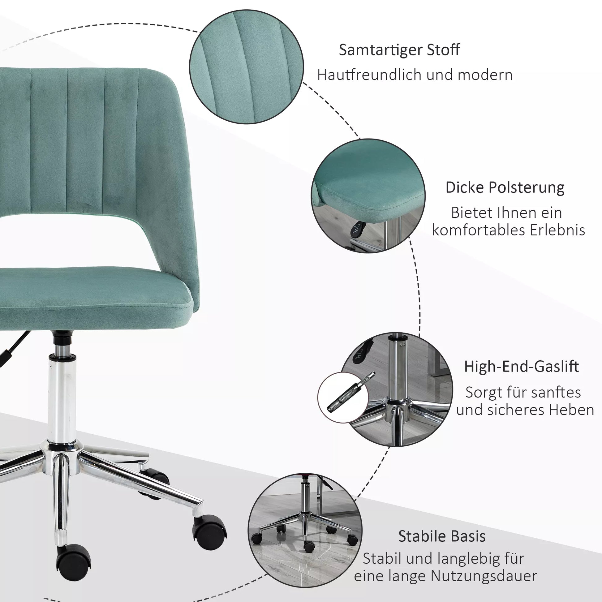 Reguliuojamo aukščio biuro kėdė su ratukais, 360° besisukanti, kriauklių formos, putplastis, 49 x 60 x 79-91 cm, žalia