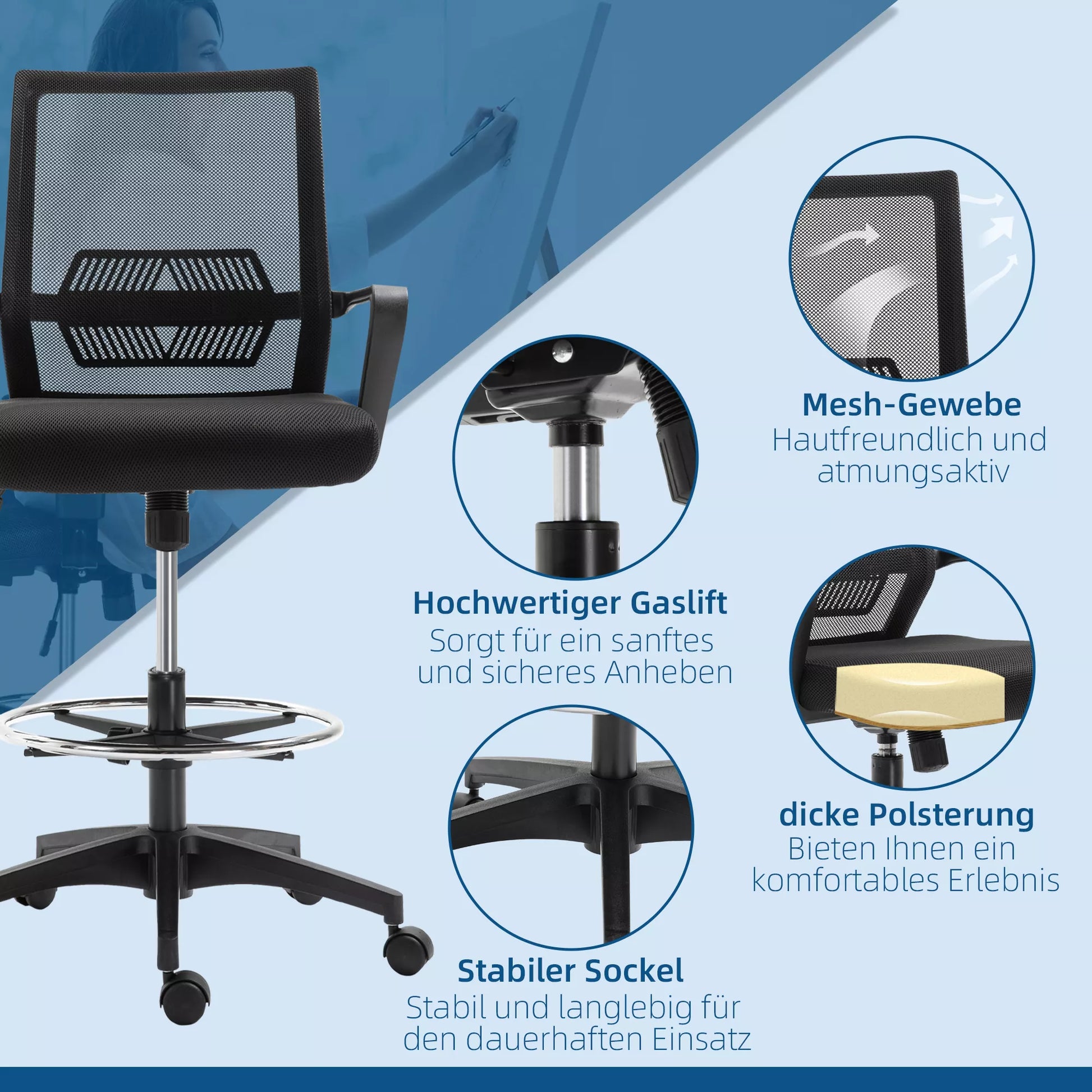 Ar patiriate diskomfortą prie savo stovinčio stalo? Ilgos sesijos ant įprasto kėdės dažnai sukelia prakaitavimą ir nepatogią kojų padėtį, o tai trikdo susikaupimą. Piešimo kėdė, sukurta aukštesnėms darbo vietoms, su reguliuojamu aukščiu ir kojų atrama, suteikia individualų komfortą. Vėdinama tinklinė atlošas užtikrina vėsumą. Šioje aukštoje biuro kėdėje atrasite savo produktyvumo ritmą, jausdamiesi patogiai ir gerai paremti.