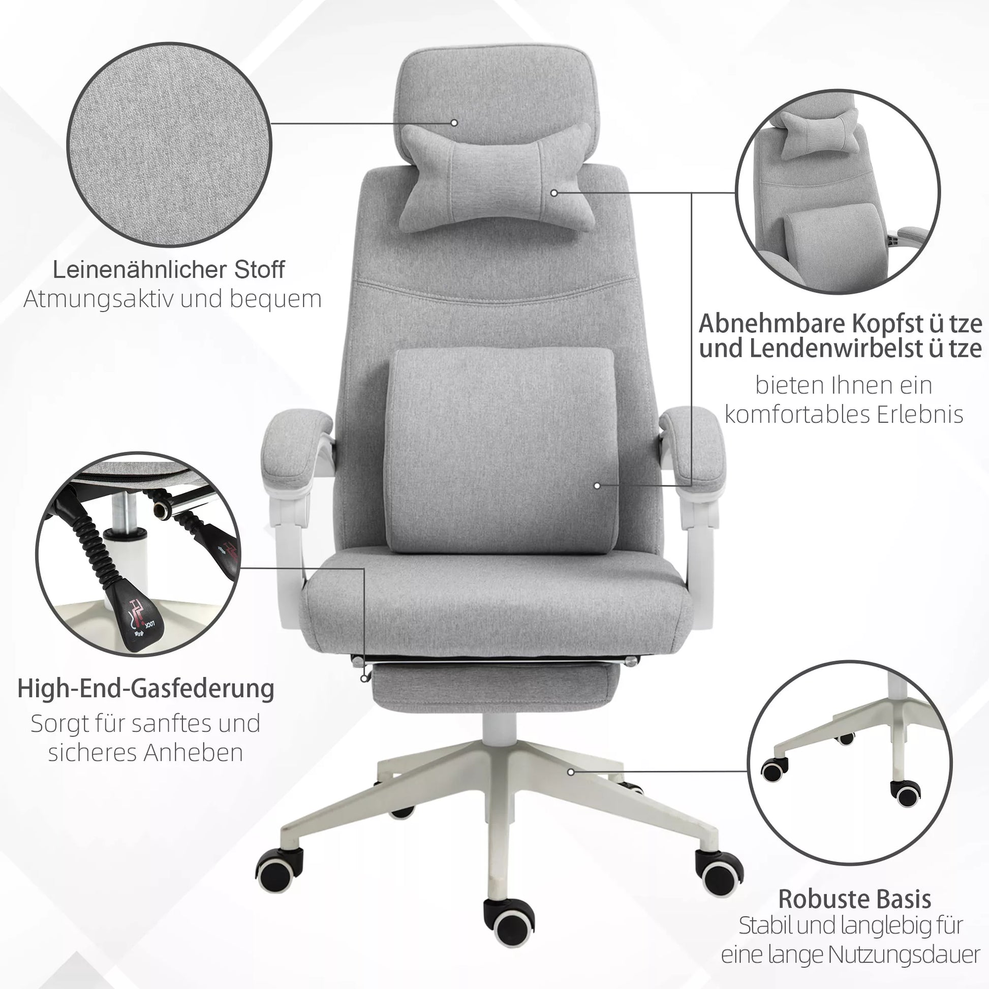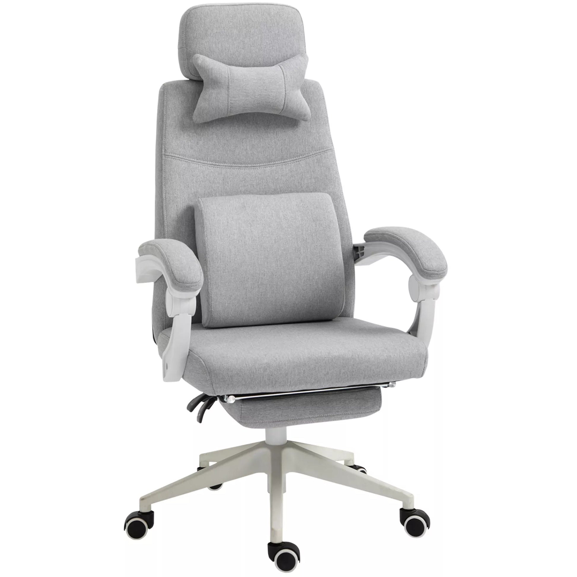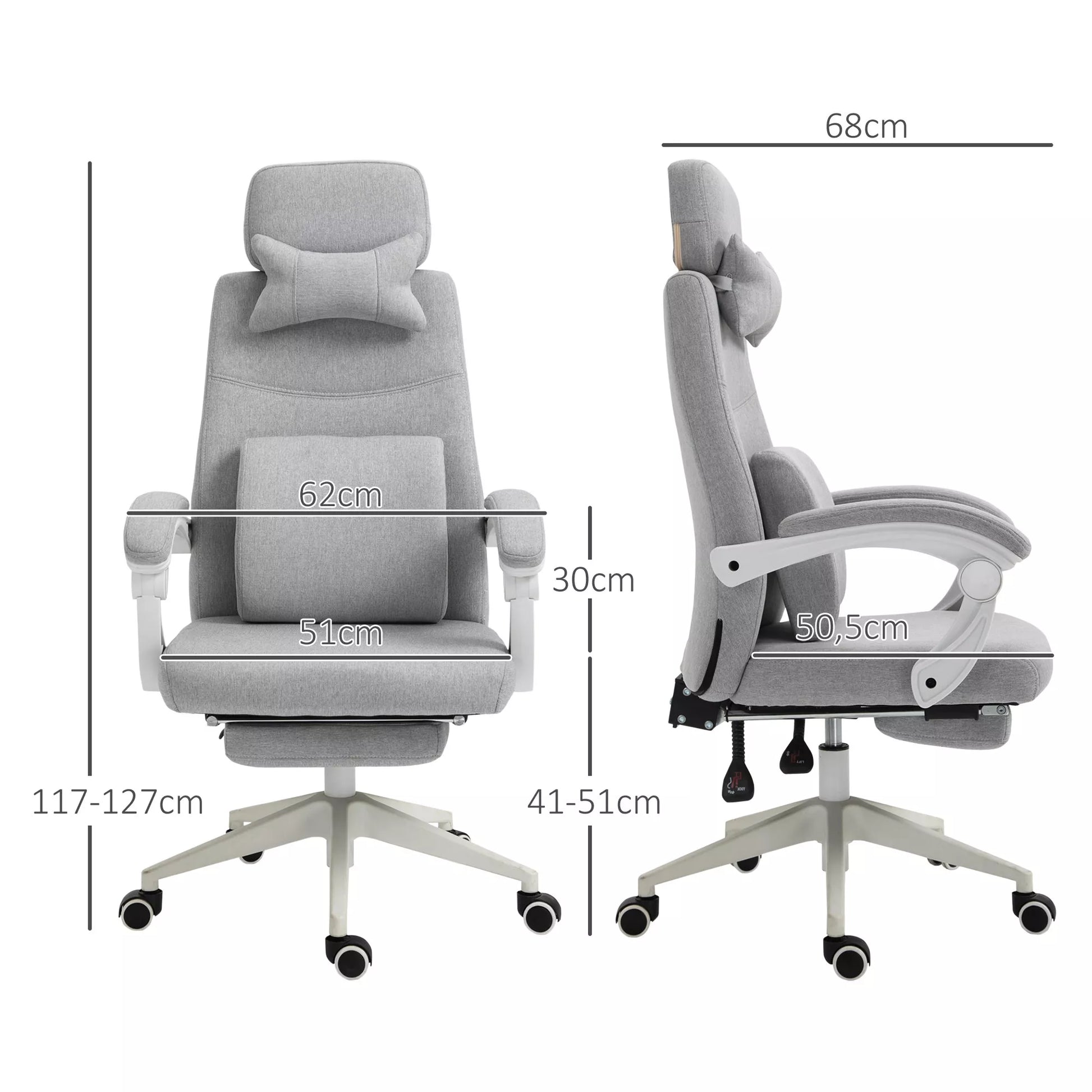 Biuro kėdė, Ergonomiška stalinė kėdė su galvos pagalvėle, juosmens atrama, aukščio reguliavimas Žaidimų kėdė su kojų atrama, aukšta atlošo dalimi, pilka 62 x 68 x 117-127 cm