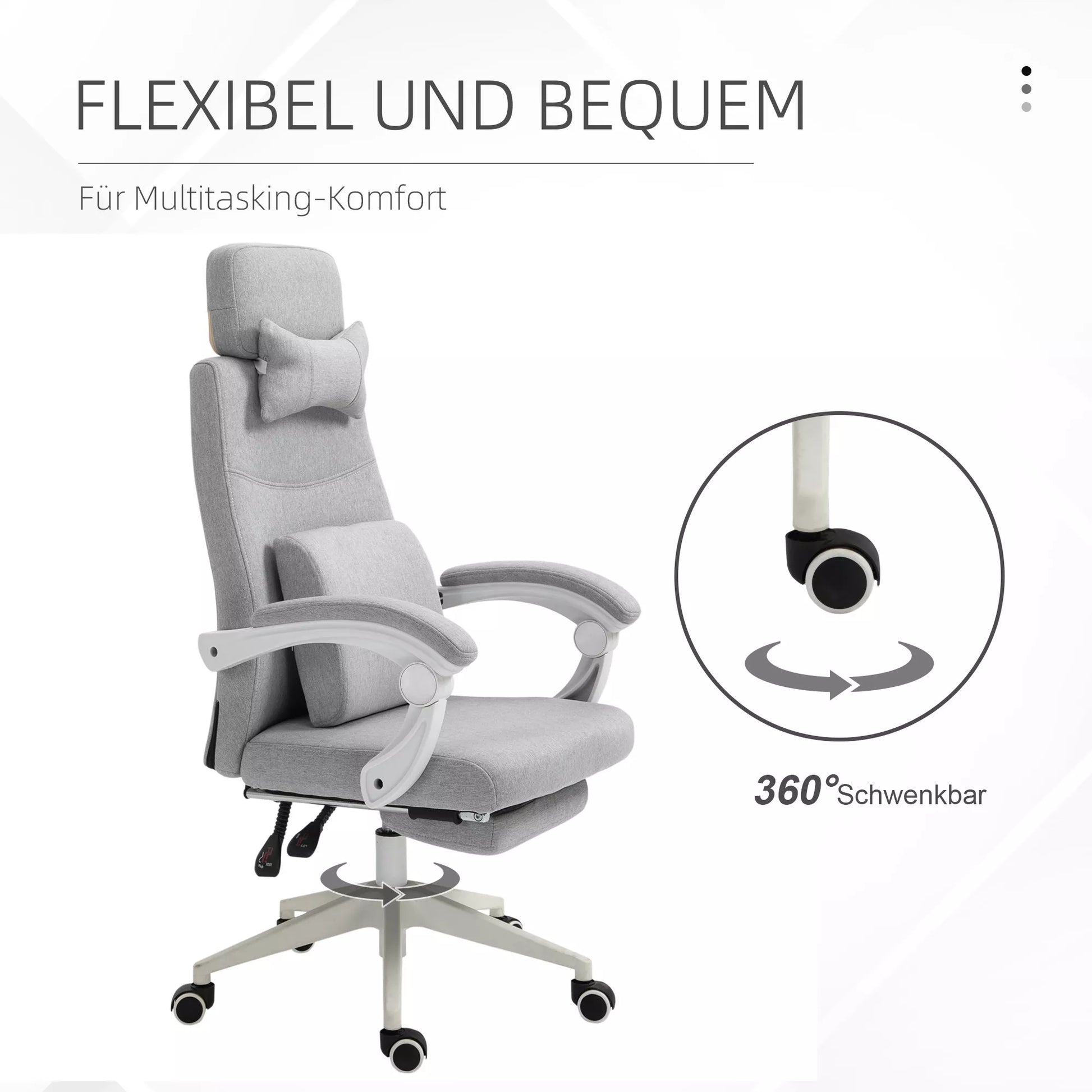 - ✔ Tvirtas rėmas su penkiais ratukais lengvam judėjimui