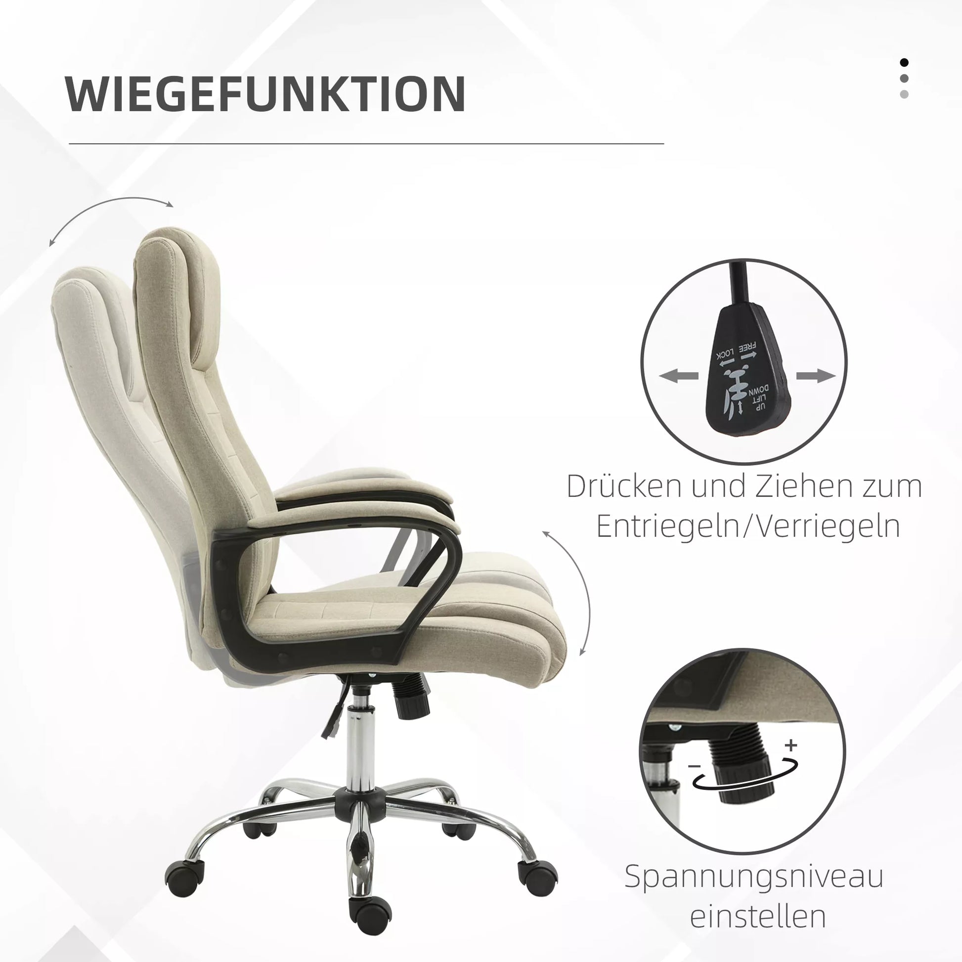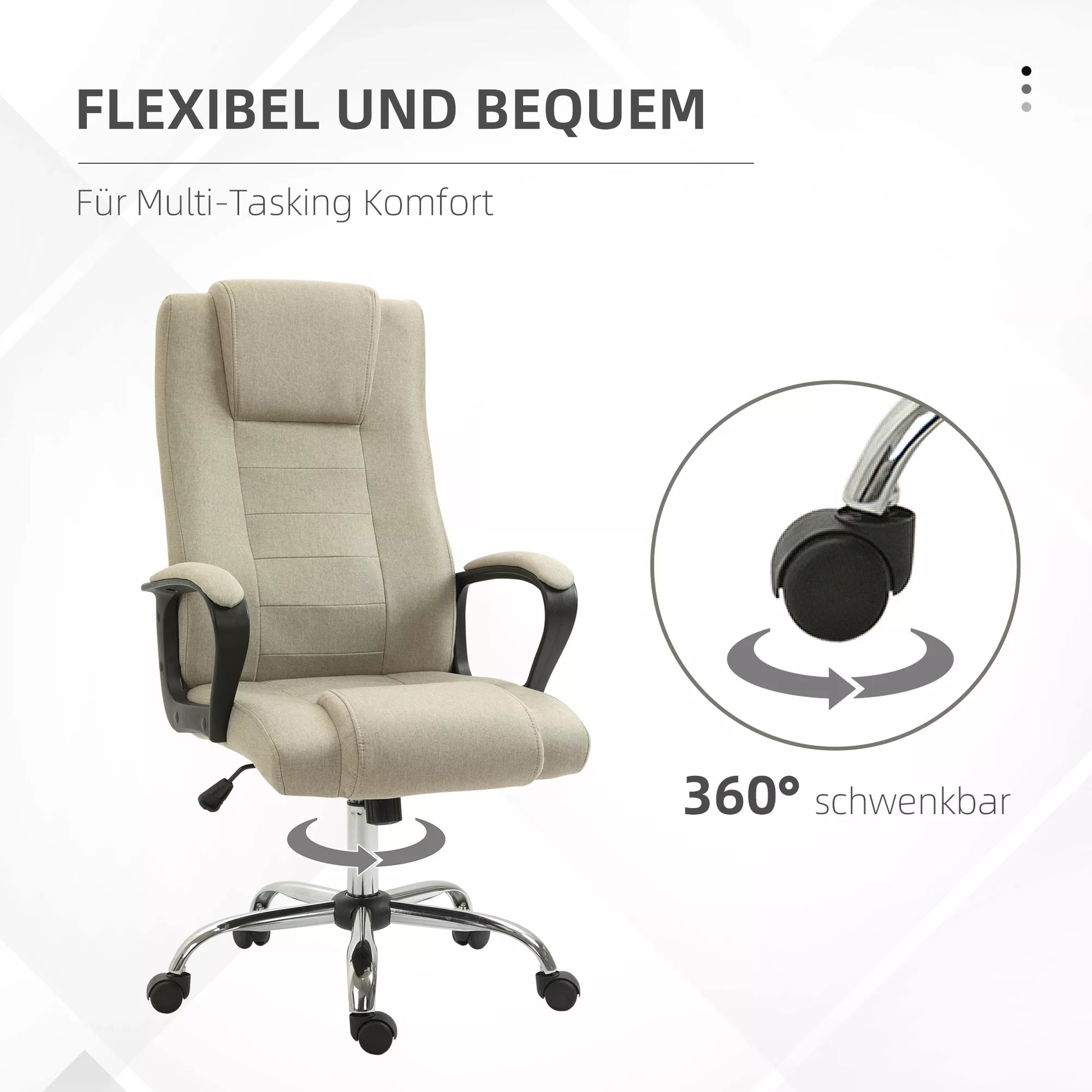 Biuro kėdė su linine išvaizda, reguliuojamo aukščio, pakreipimo funkcija, 5 ratukai, smėlio spalvos
