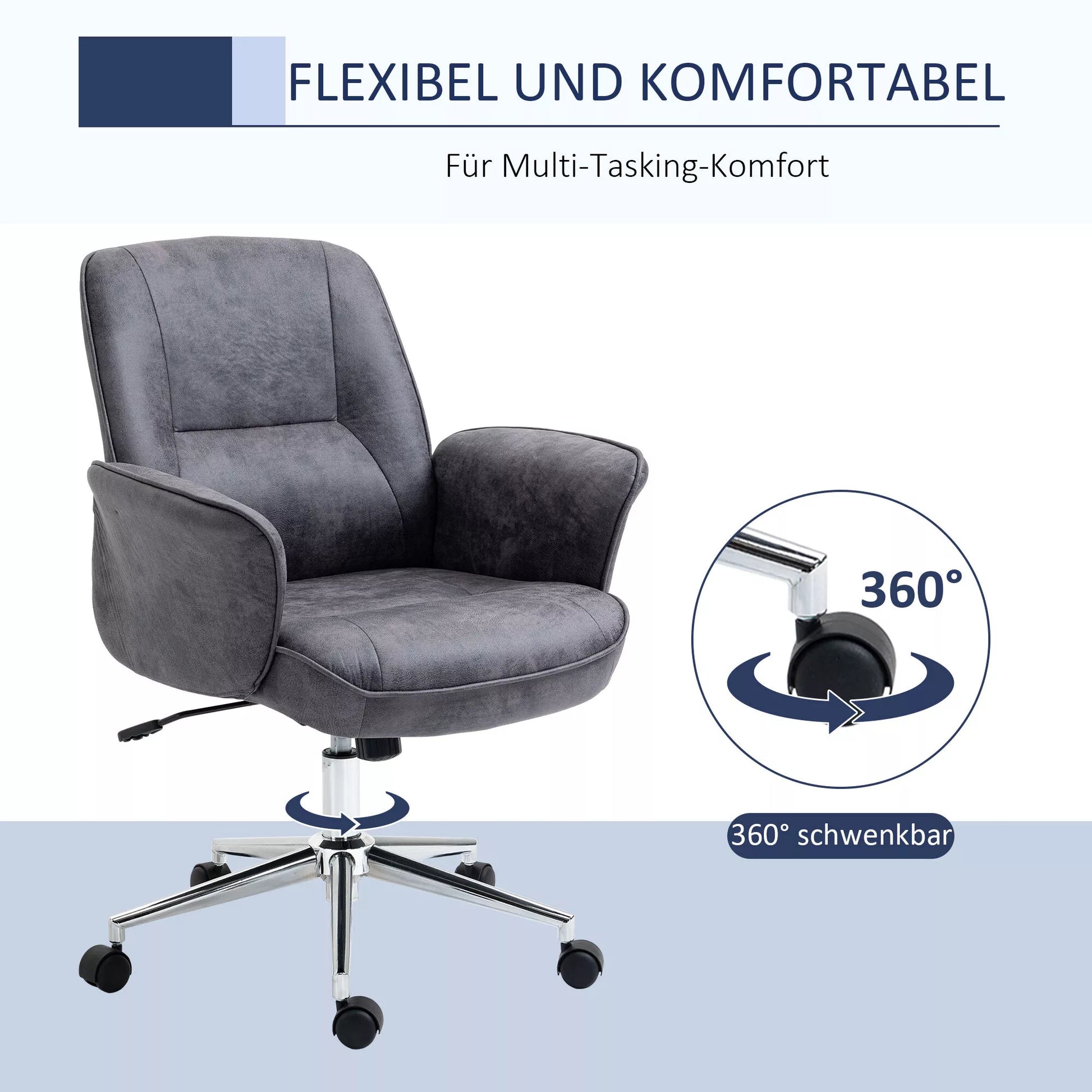 - ✔ Lengvai riedantys ratukai ir laisvai besisukantis kėdės su ratukais kryžminis pagrindas suteikia didelę judėjimo laisvę