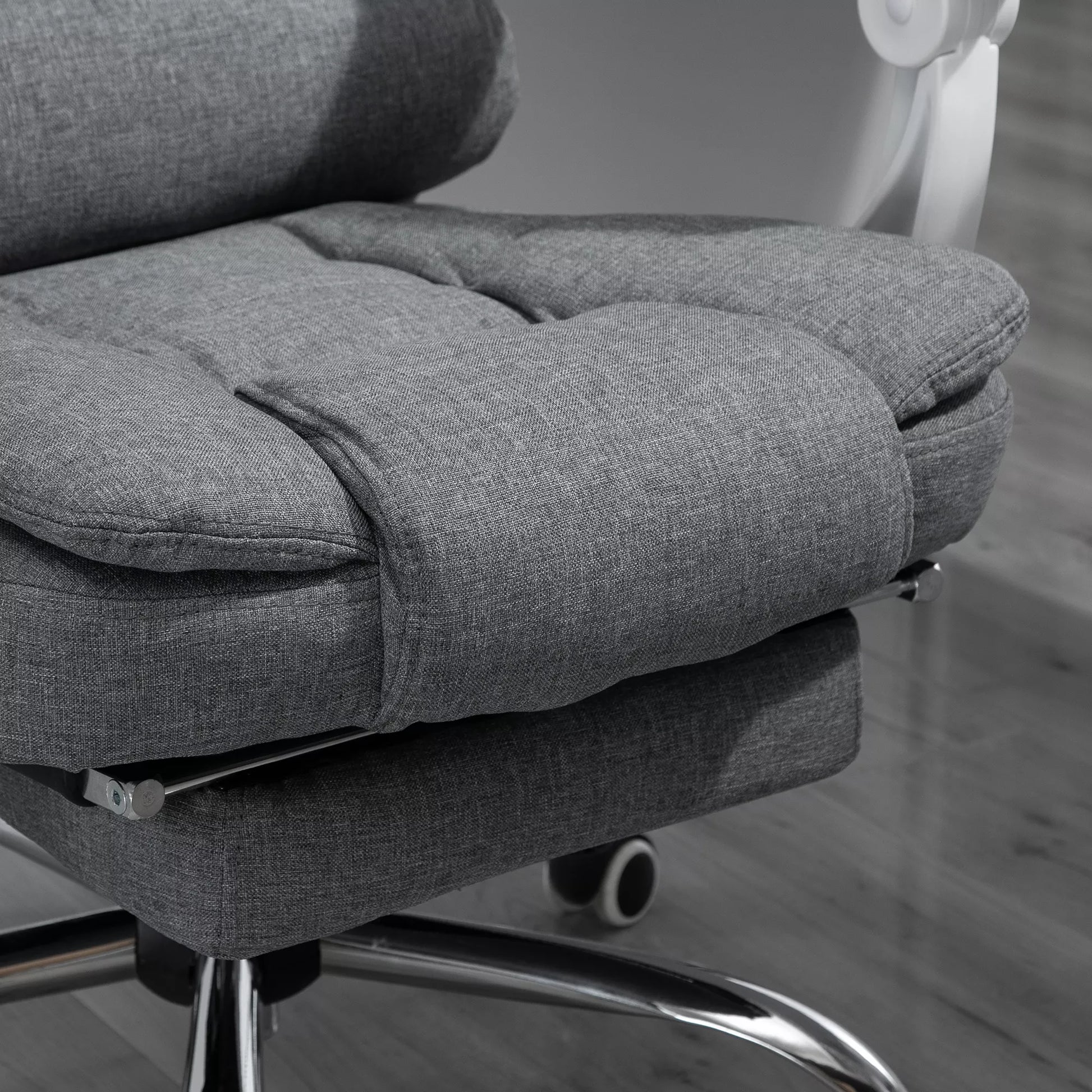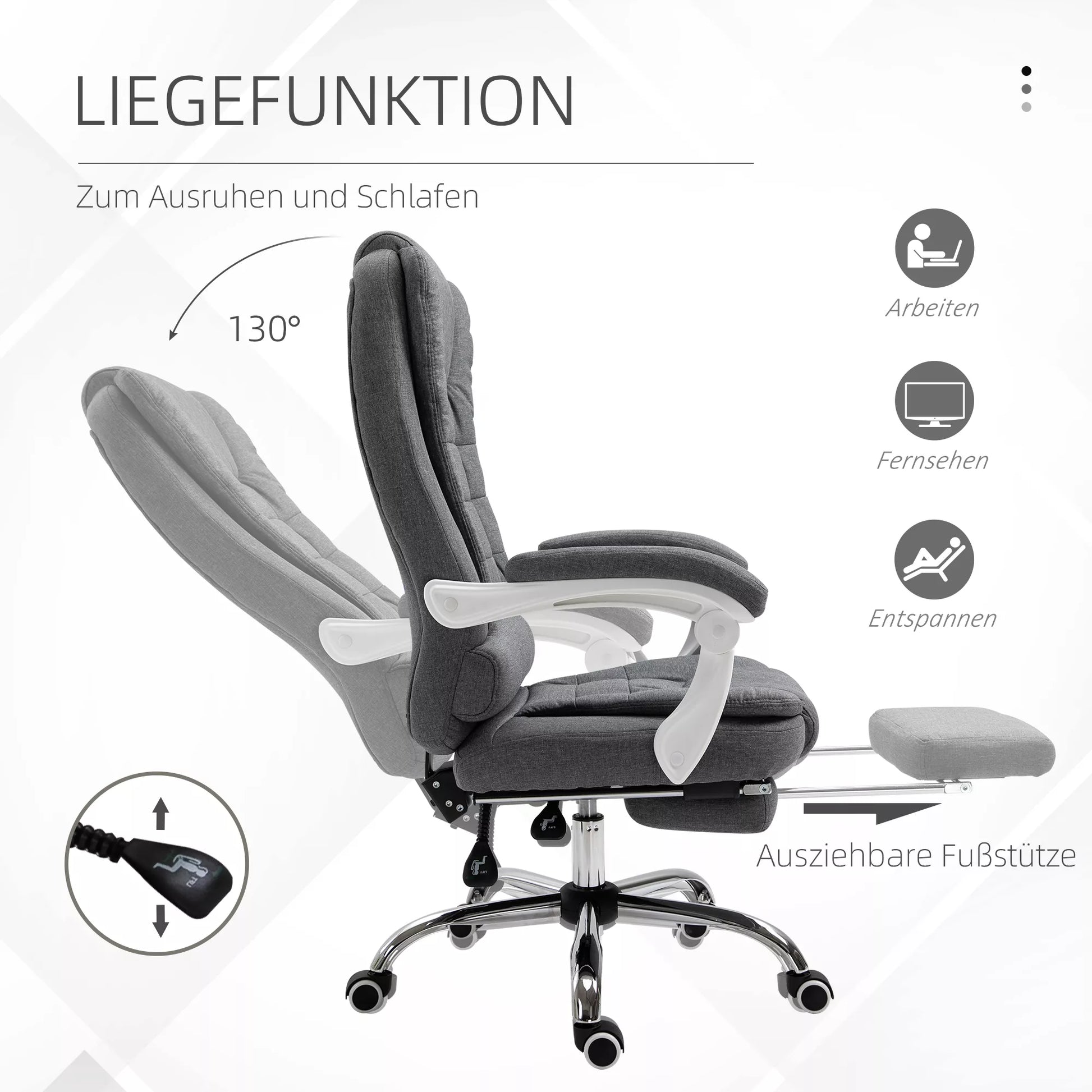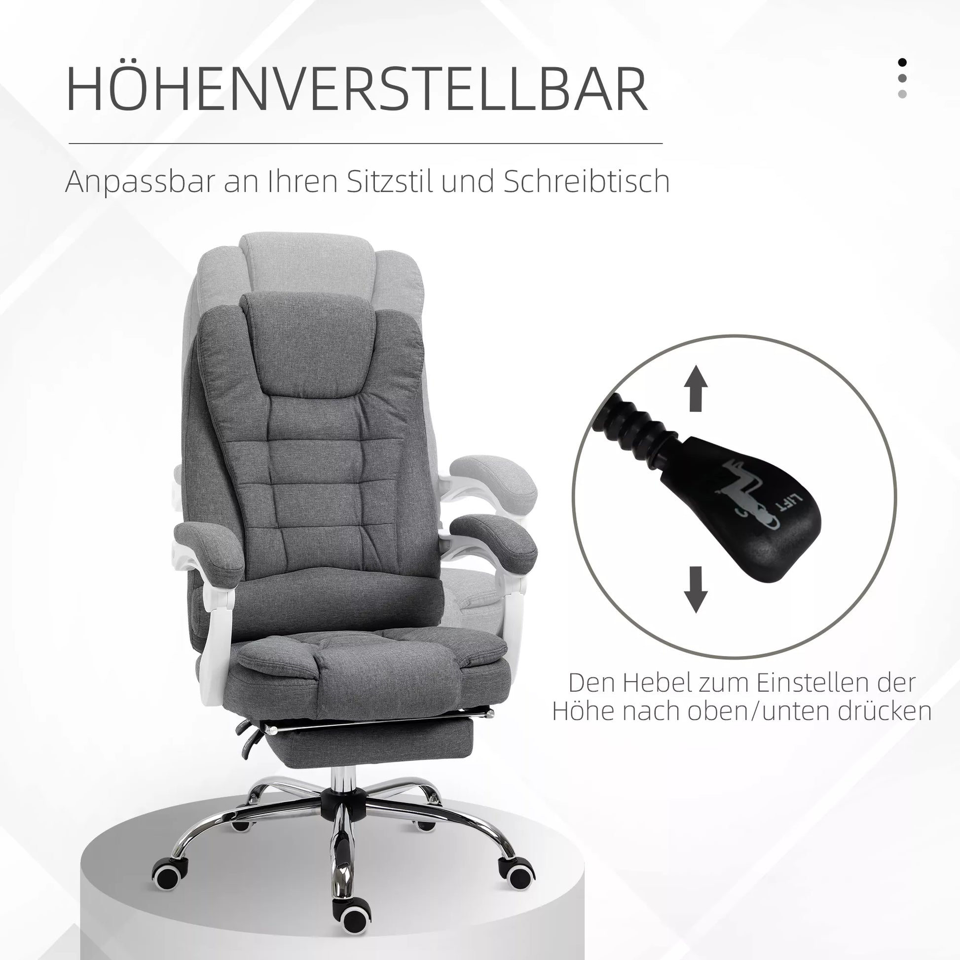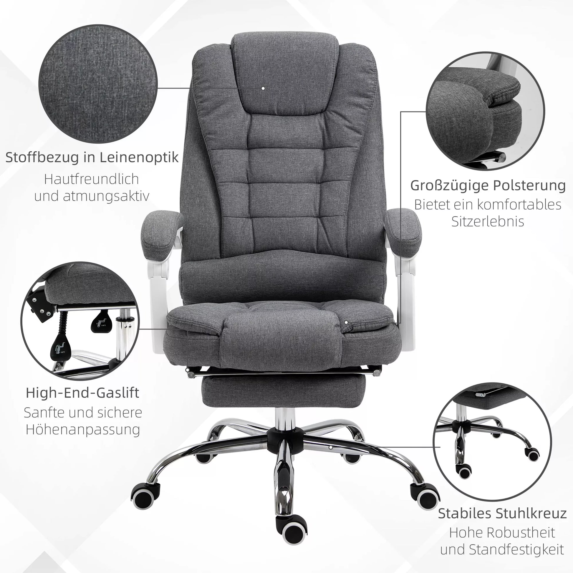 Biuro kėdė su išskleidžiama kojų atrama, vadovo kėdė, reguliuojama nugaros atrama, lininė išvaizda, pilka