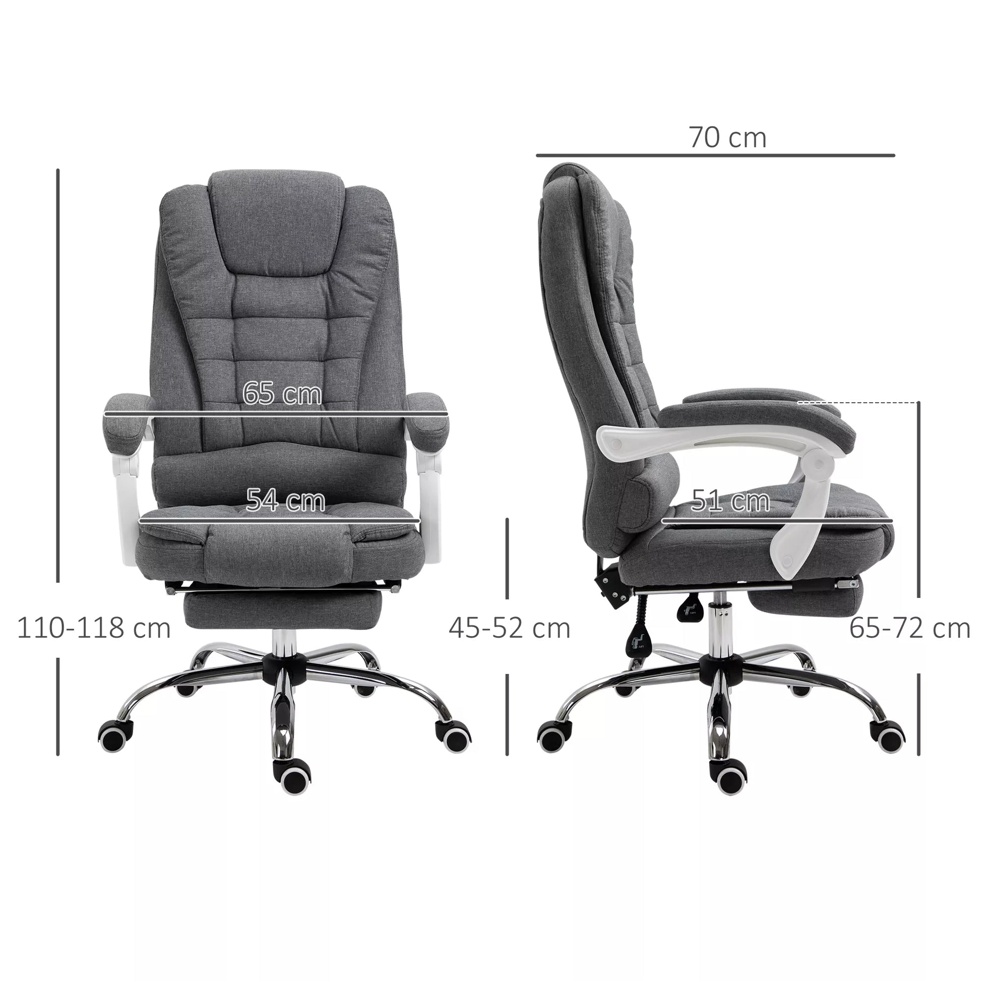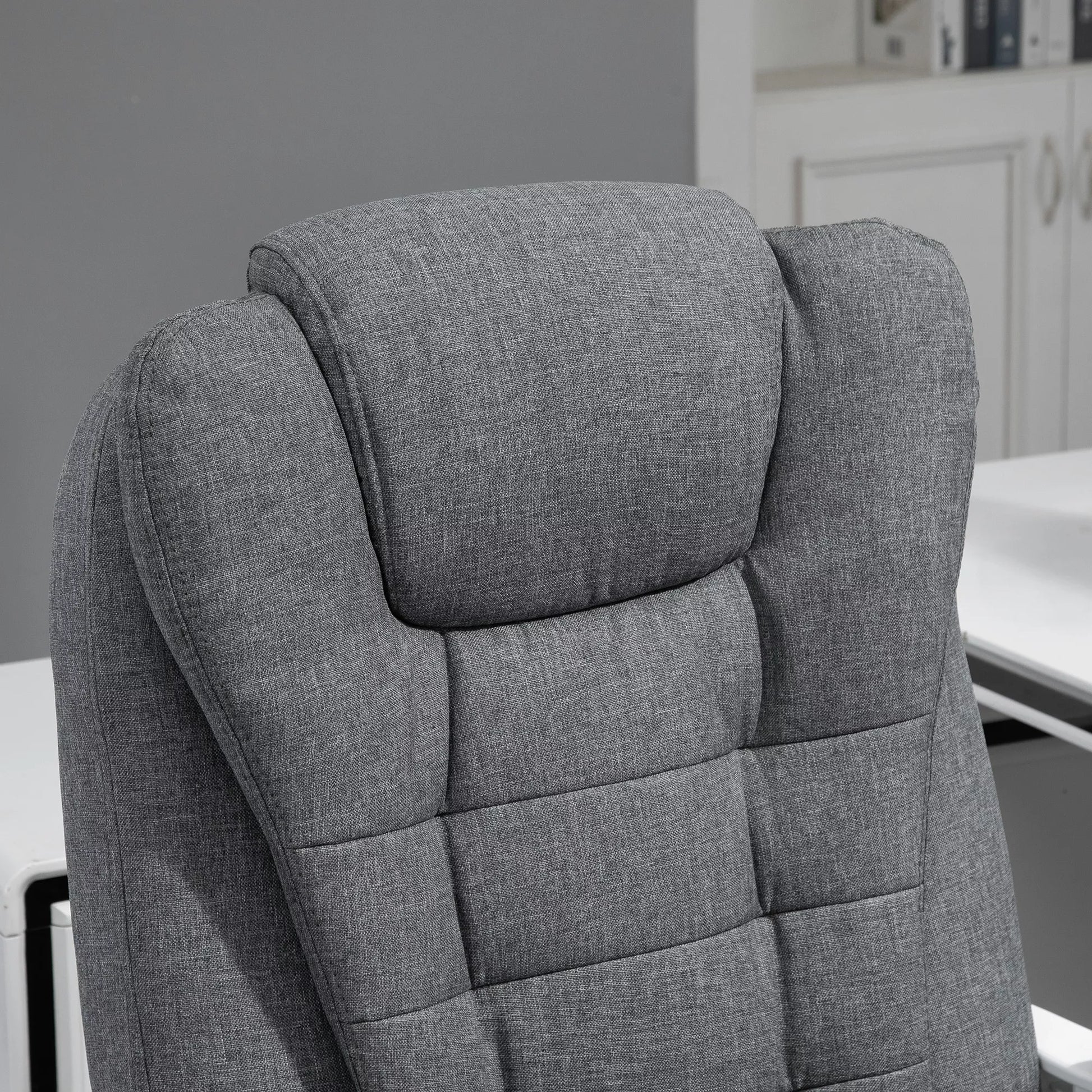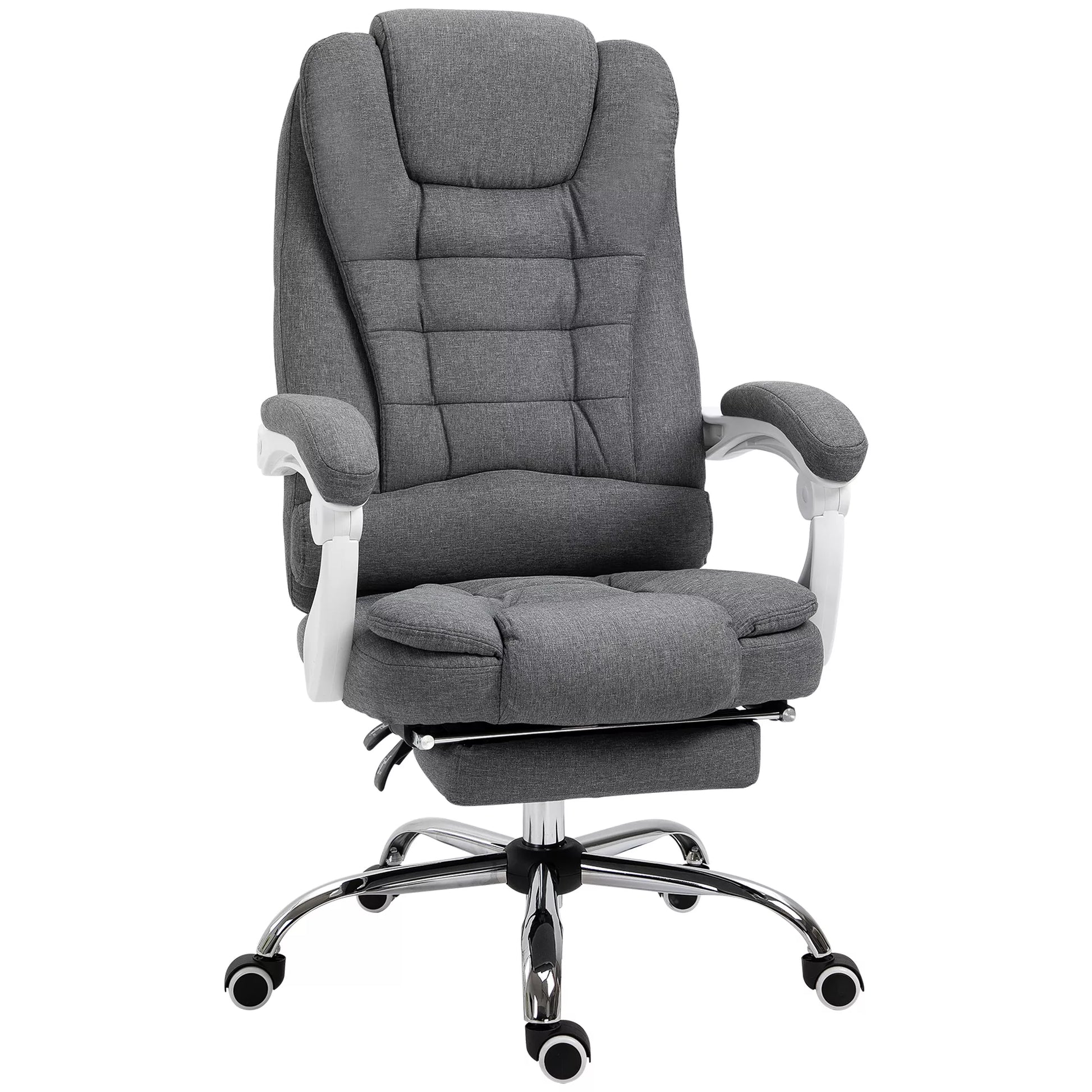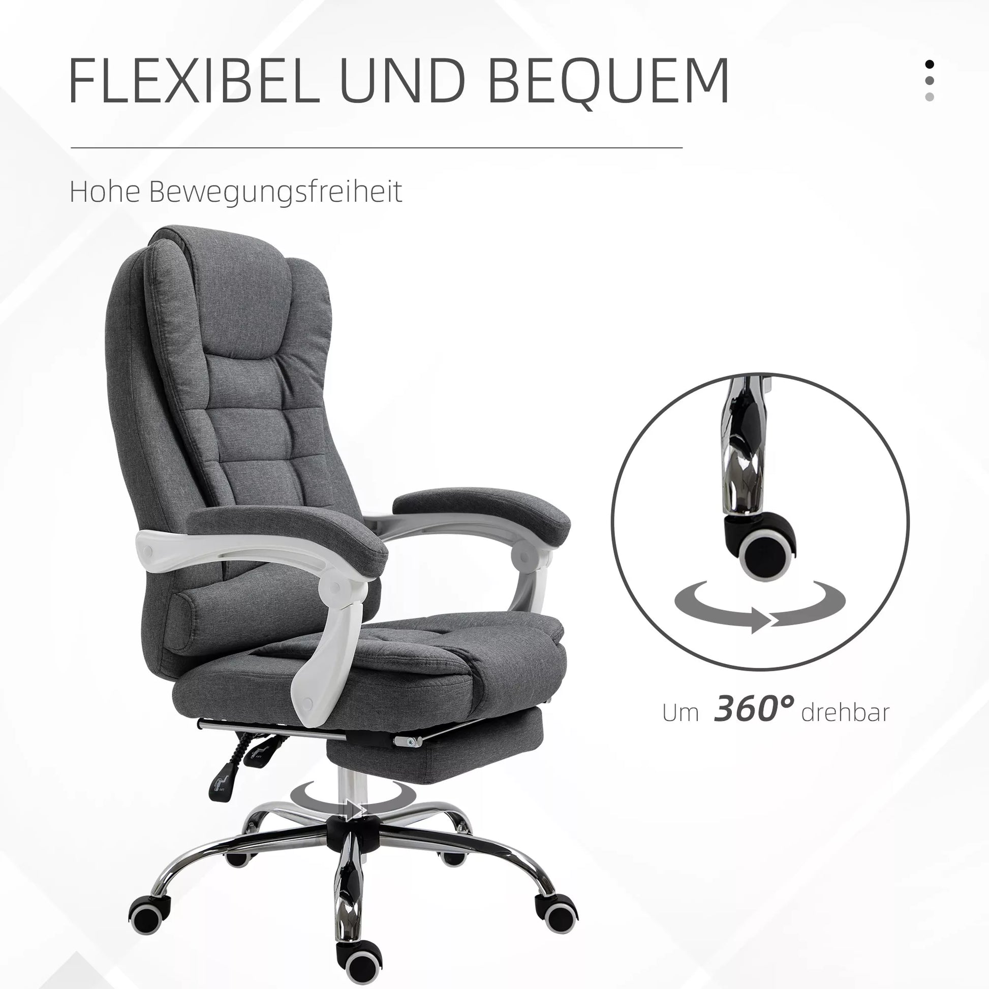 Biuro kėdė su išskleidžiama kojų atrama, vadovo kėdė, reguliuojama nugaros atrama, lininė išvaizda, pilka
