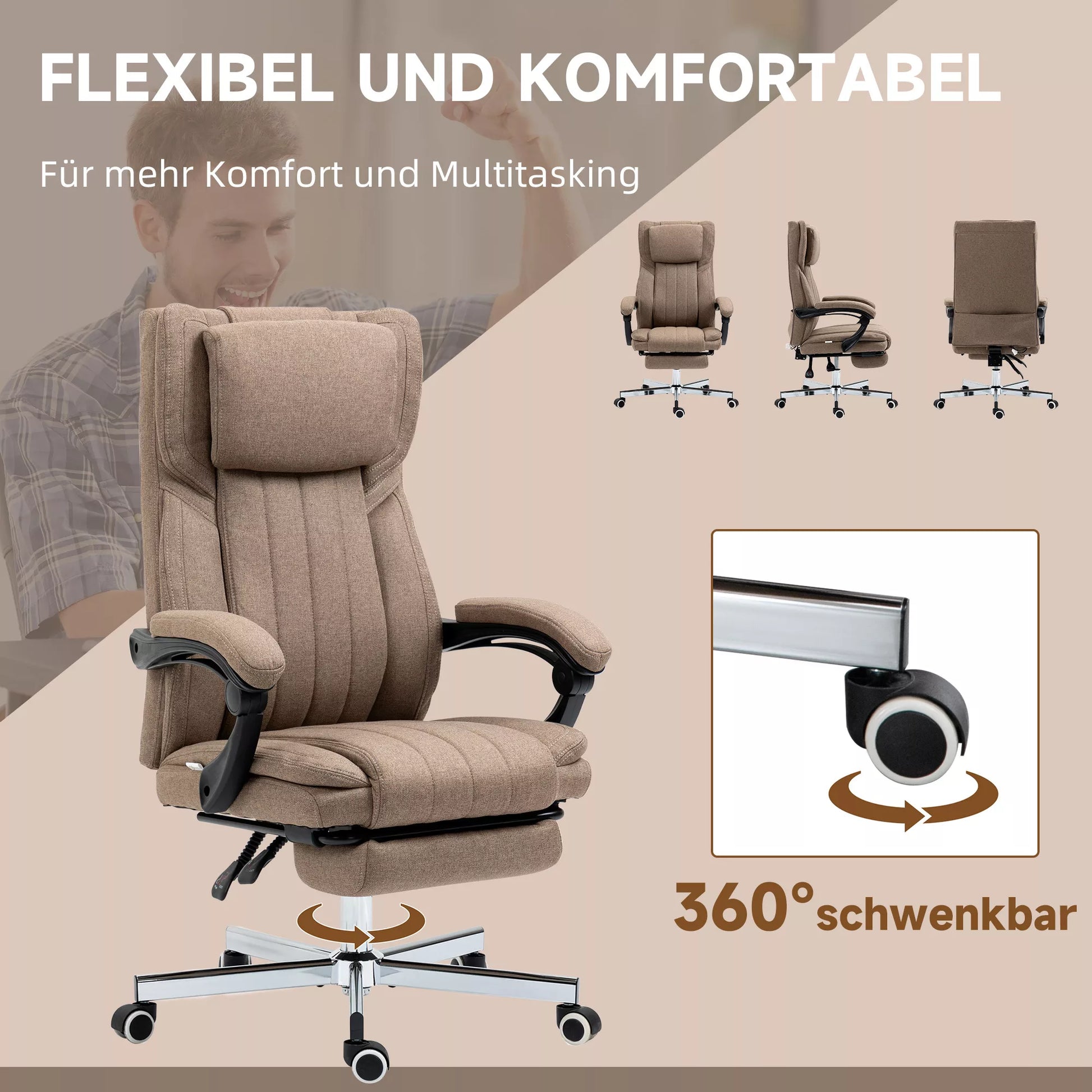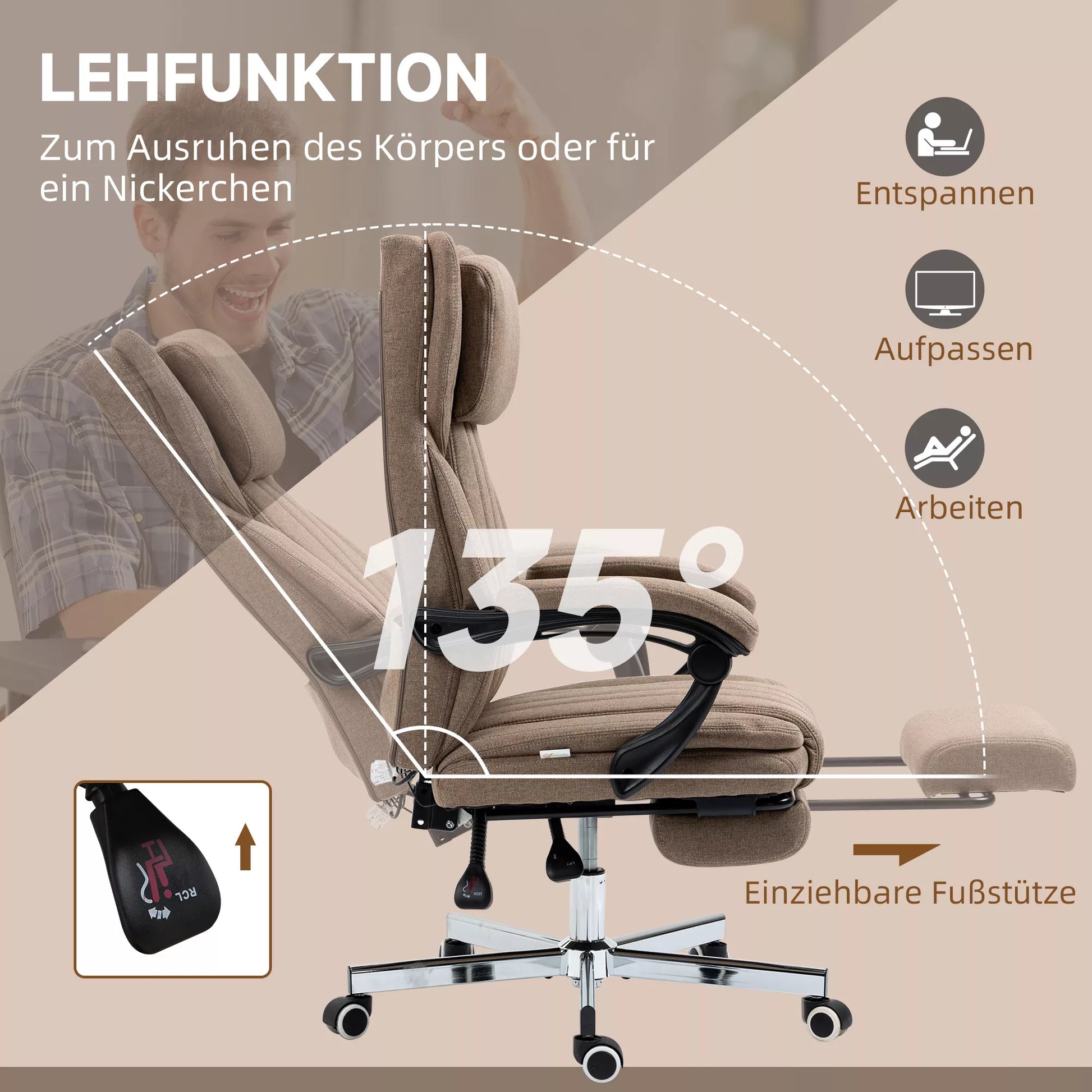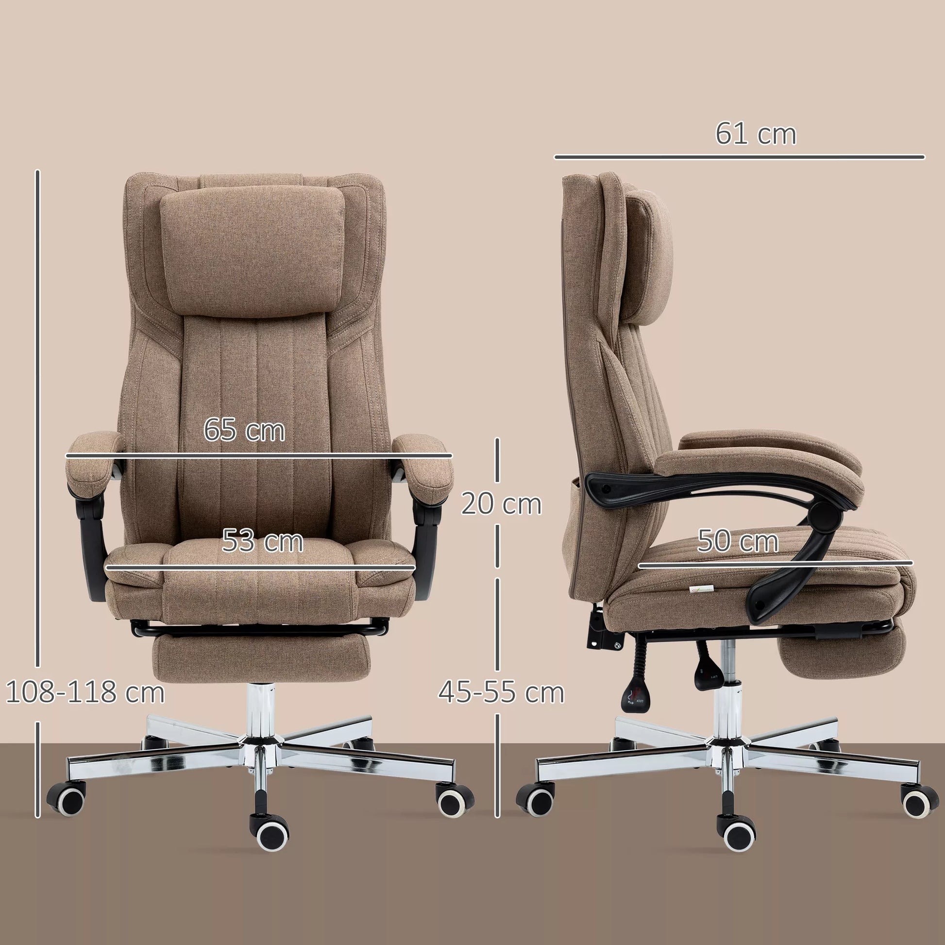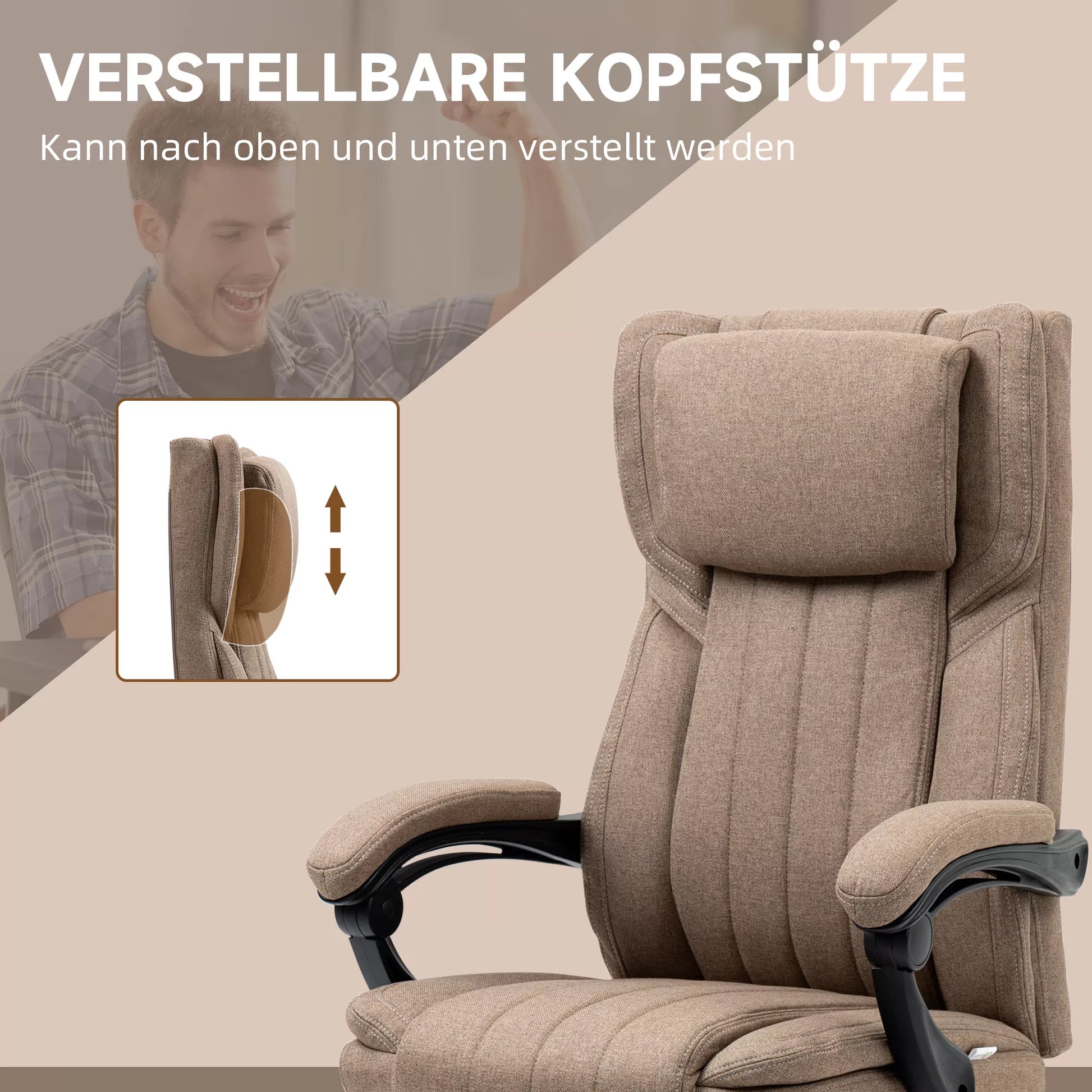 Biuro kėdė su masažo funkcija, reguliuojama atlošo padėtimi, ištraukiama kojų atrama, lininės išvaizdos, 65 x 61 x 118 cm, Ruda