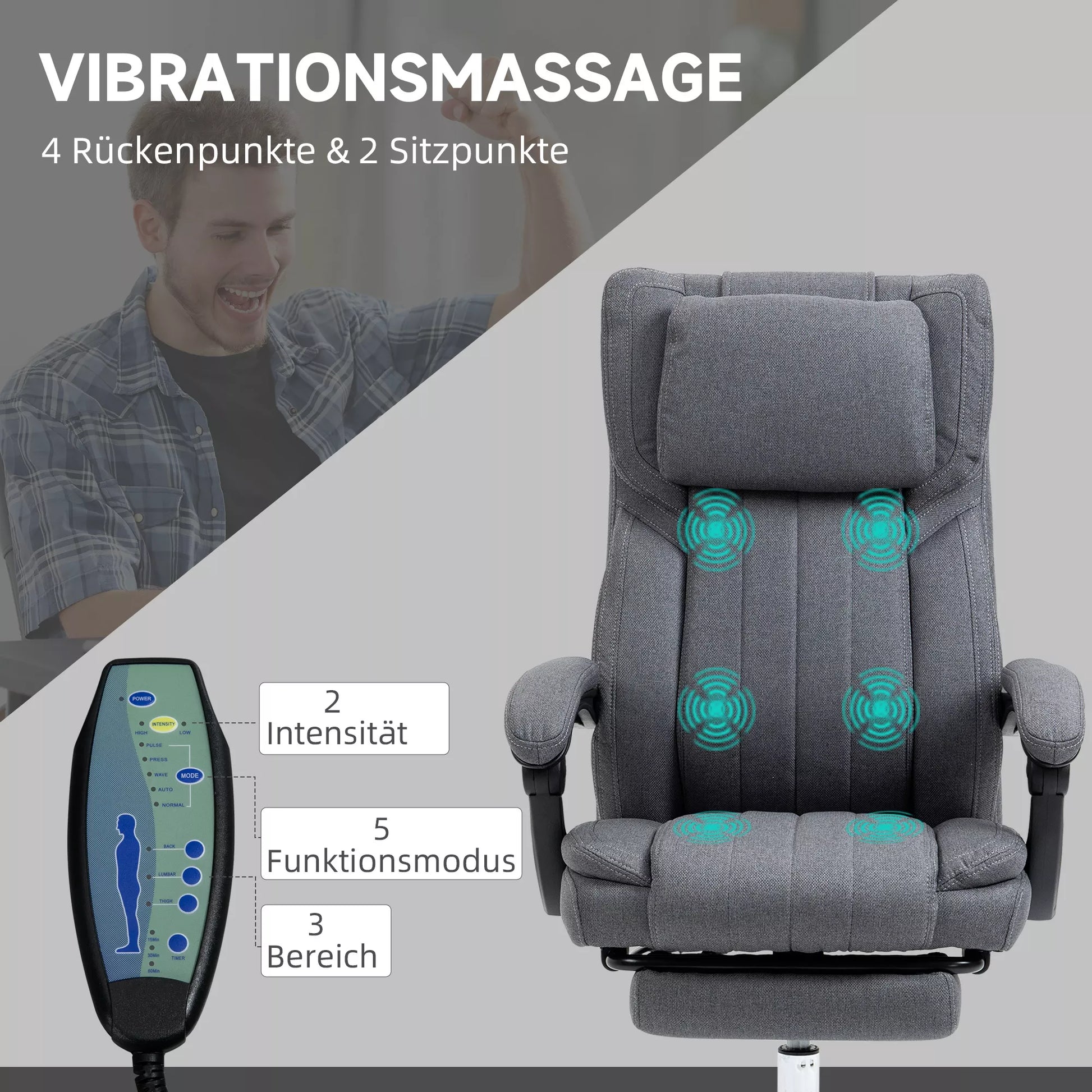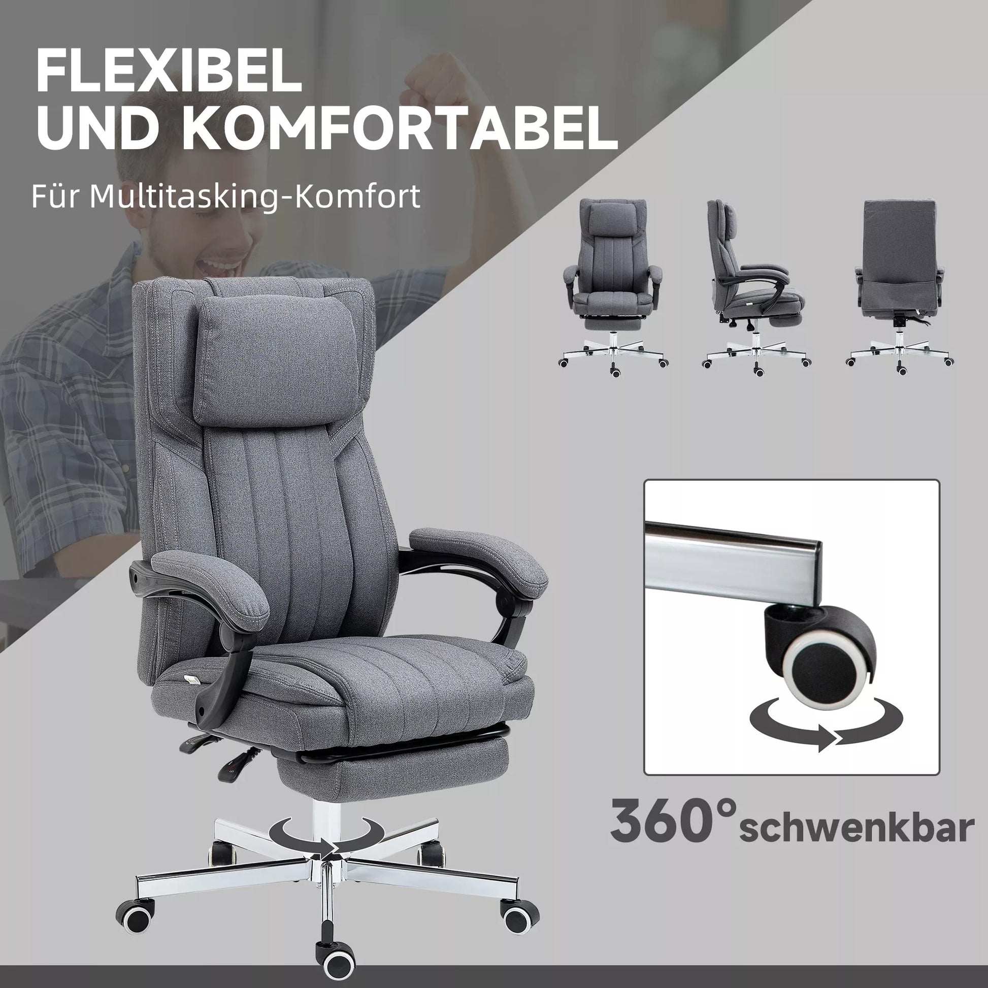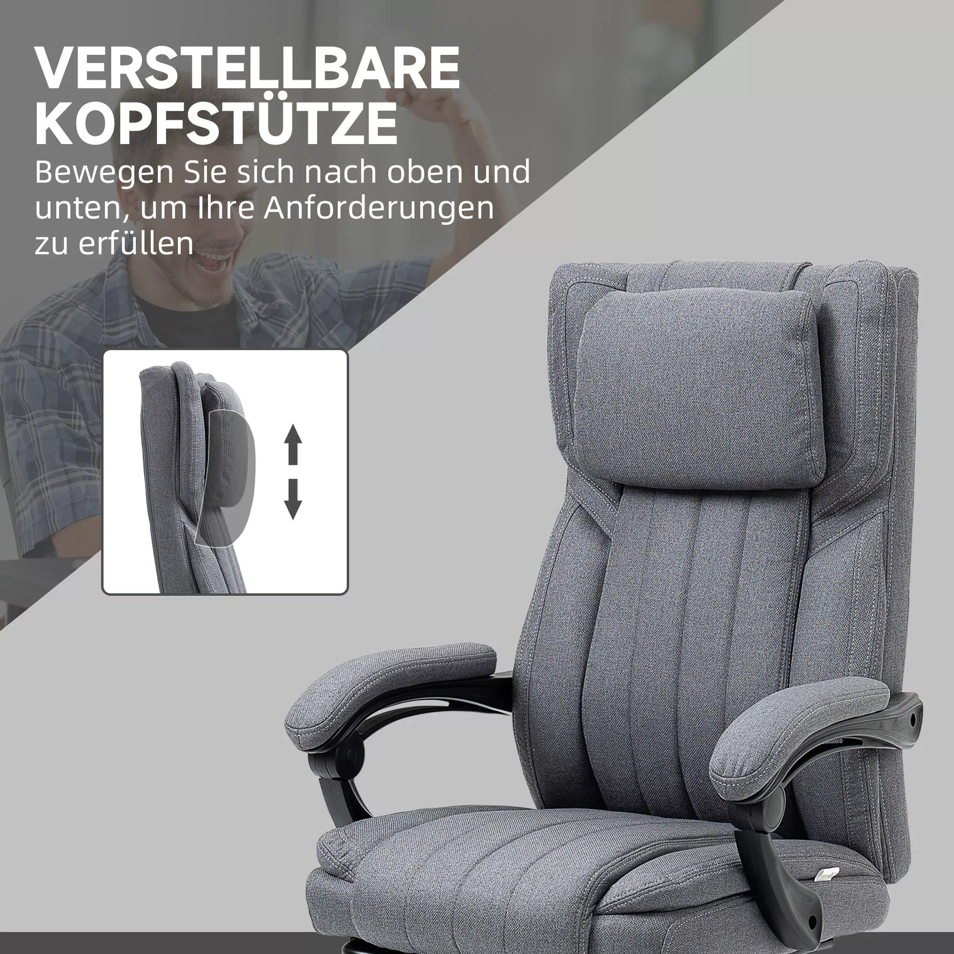 Biuro kėdė su masažo funkcija, pakreipiamas atlošas, ištraukiama kojų atrama, lininės išvaizdos, pilka, 65 x 61 x 113 cm