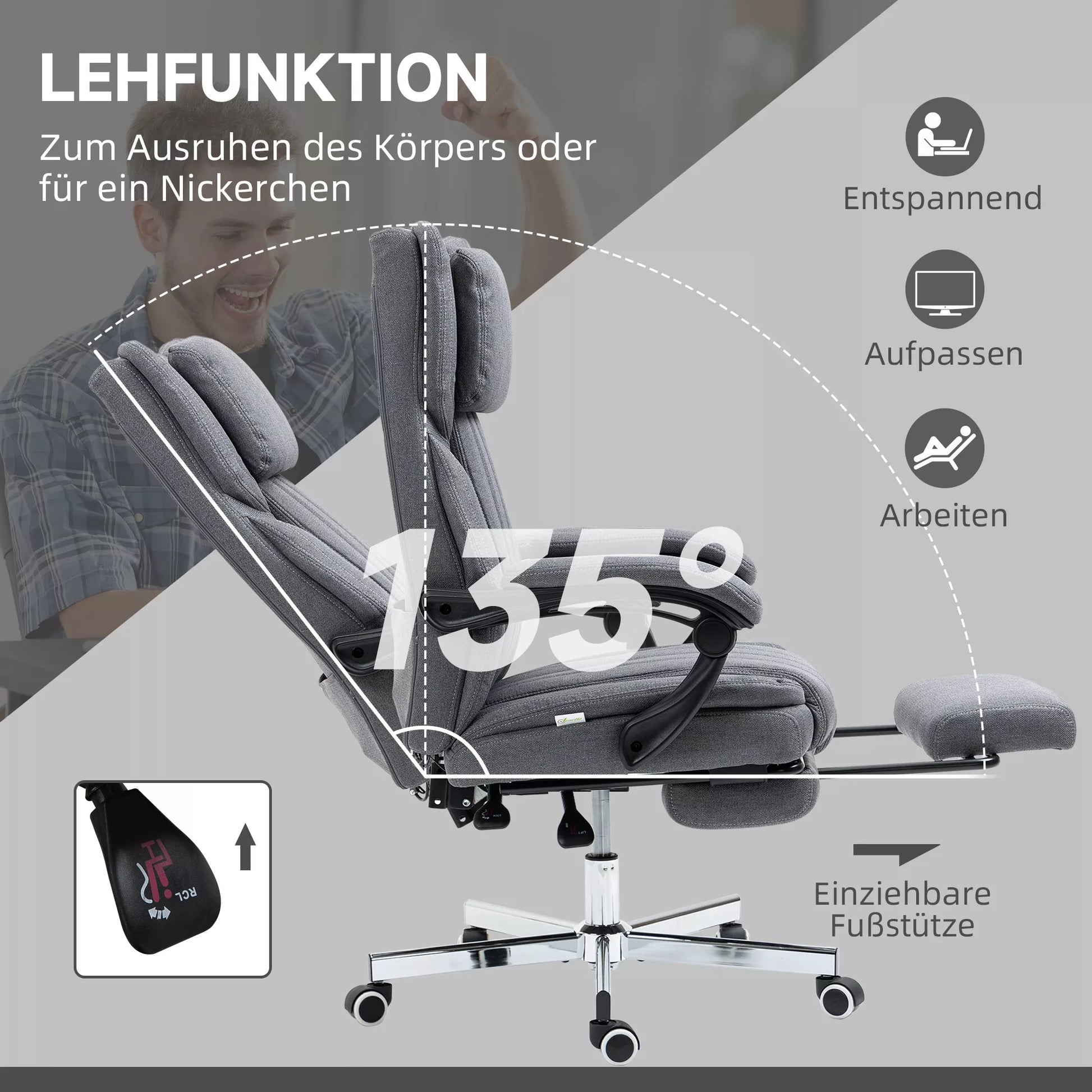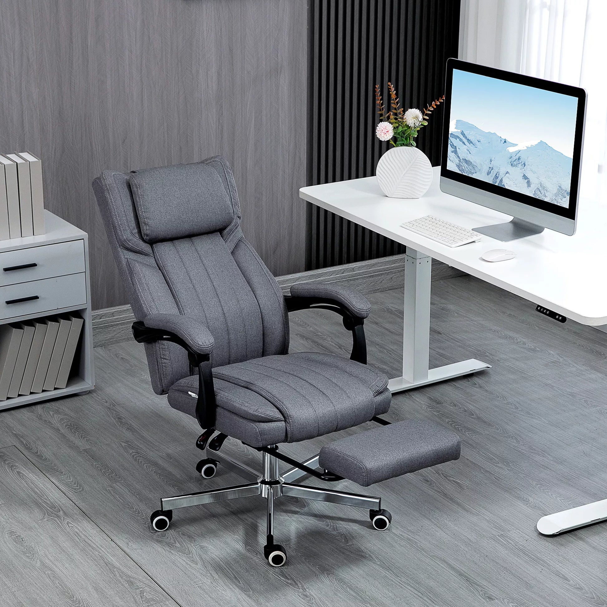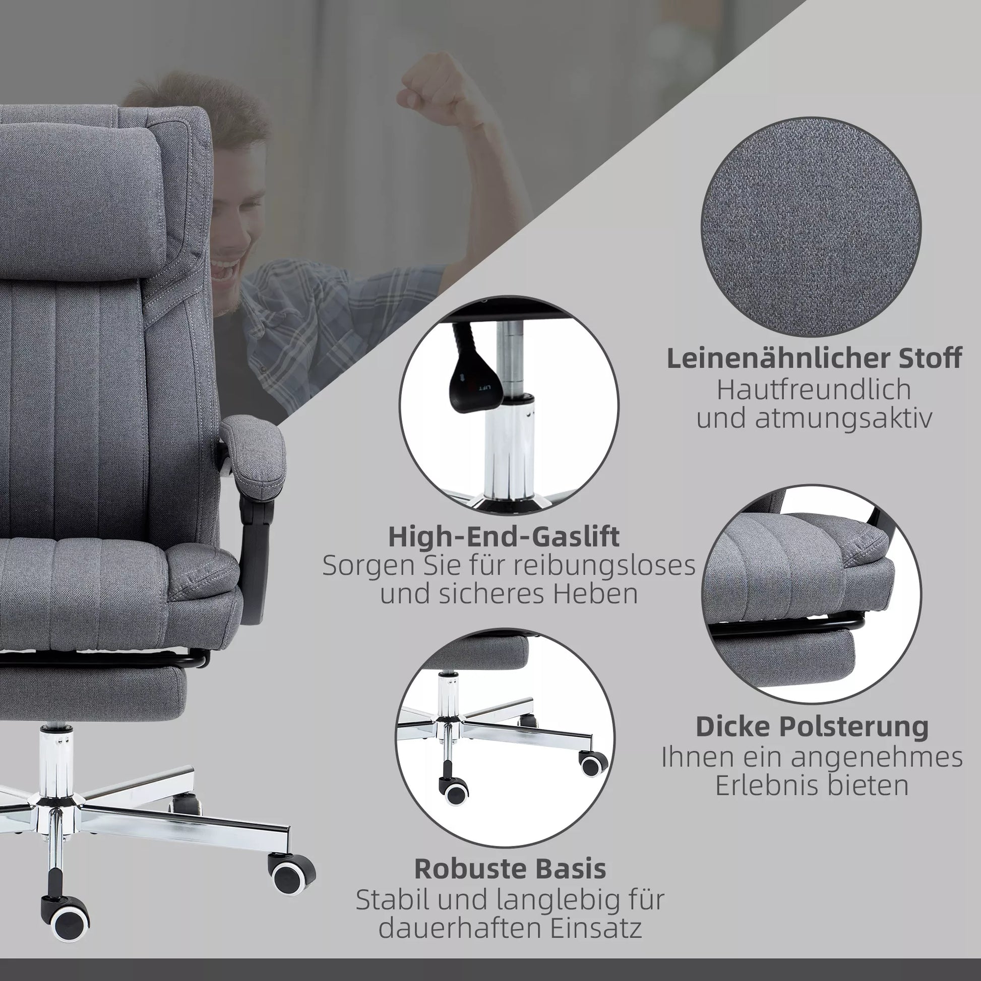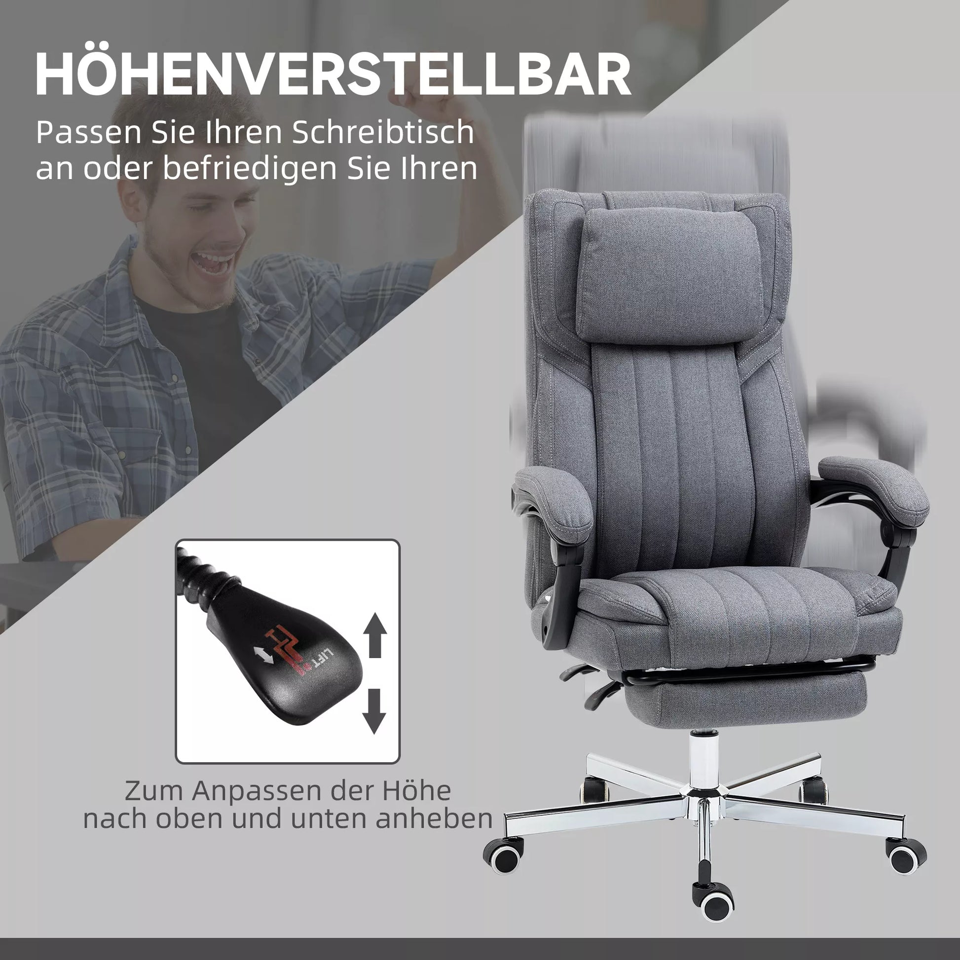 Biuro kėdė su masažo funkcija, pakreipiamas atlošas, ištraukiama kojų atrama, lininės išvaizdos, pilka, 65 x 61 x 113 cm