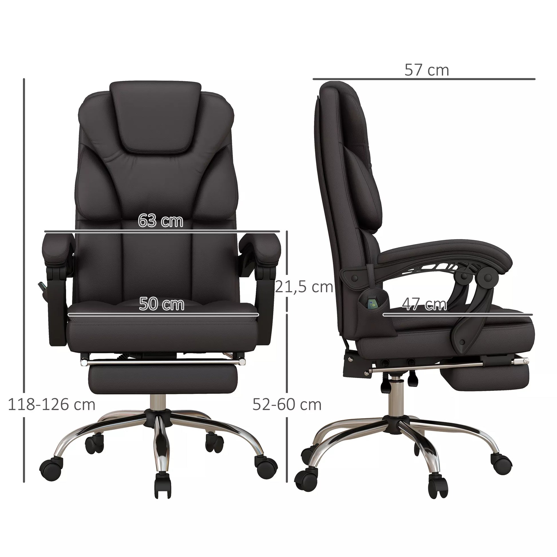 Biuro kėdė su masažo funkcija, ergonomiška, atlošiama, 63x57x118, ruda
