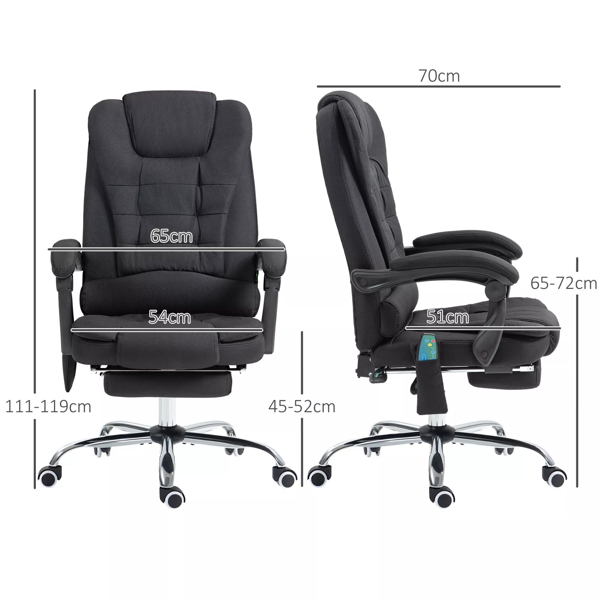 - ✔ Įrengta šildymo funkcija ir 6 vibracijos taškai, įskaitant 4 nugaros atramoje ir 2 sėdynės srityje, skirti tiksliniam atsipalaidavimui