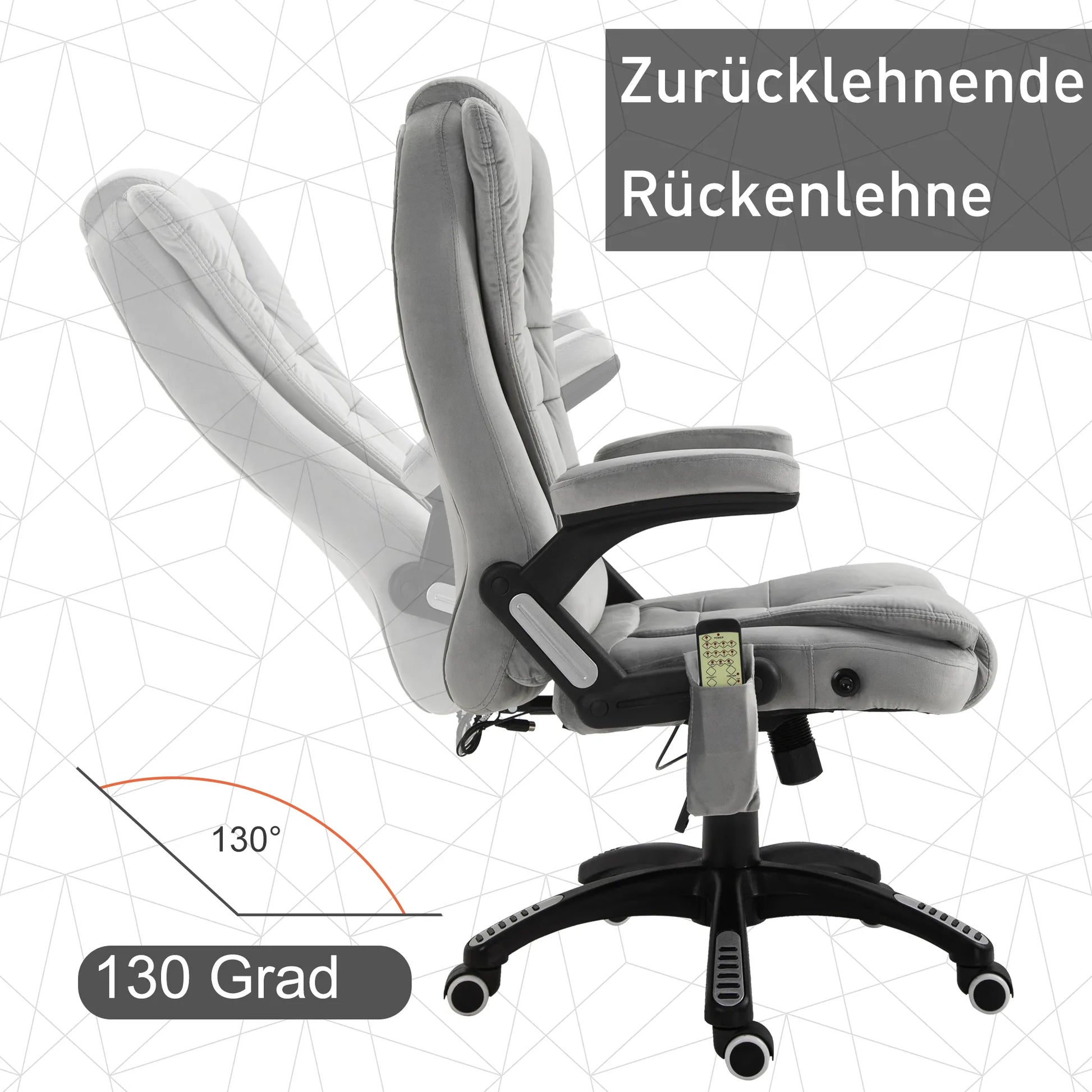 Biuro kėdė su masažo funkcija Ergonomiška vadovo kėdė su šildymo funkcija, poilsio funkcija, supimosi funkcija Aukščio reguliavimas 360° sukiojama Kompiuterio kėdė su šonine kišene, aksomo išvaizda, pilka