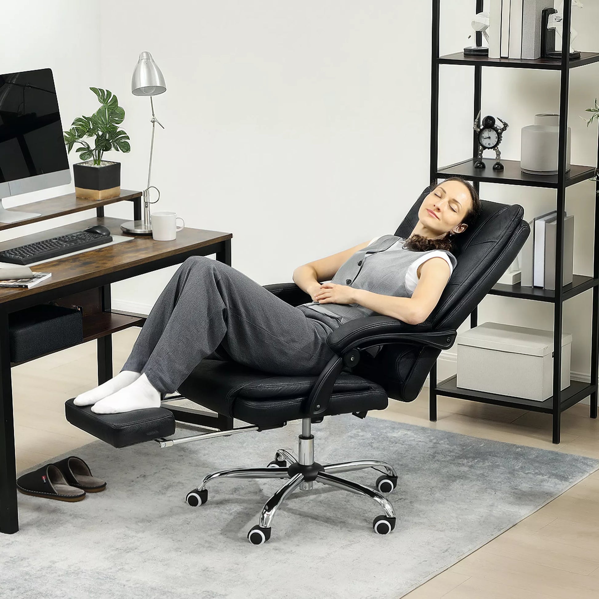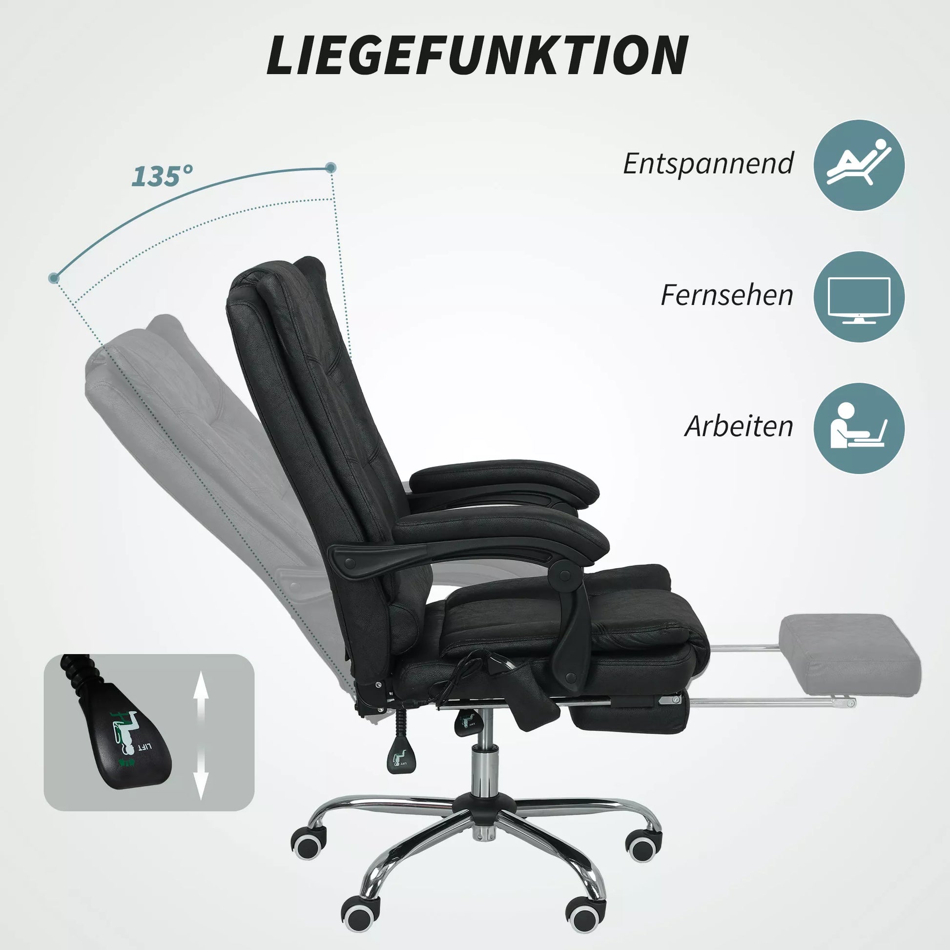 - ✔ Atsipalaiduokite ir išsitieskite dėka 135° atlošimo kampo ir kojų atramos