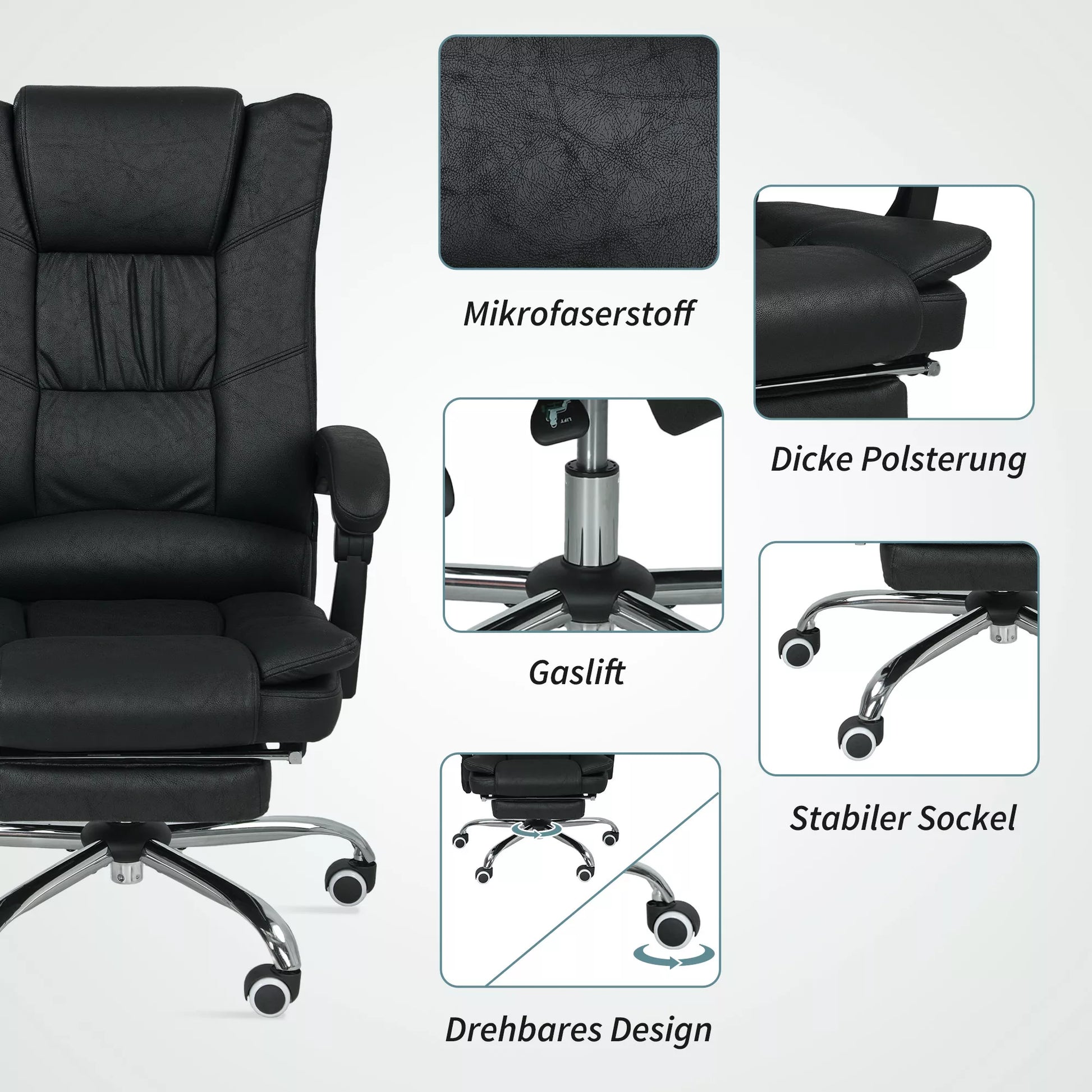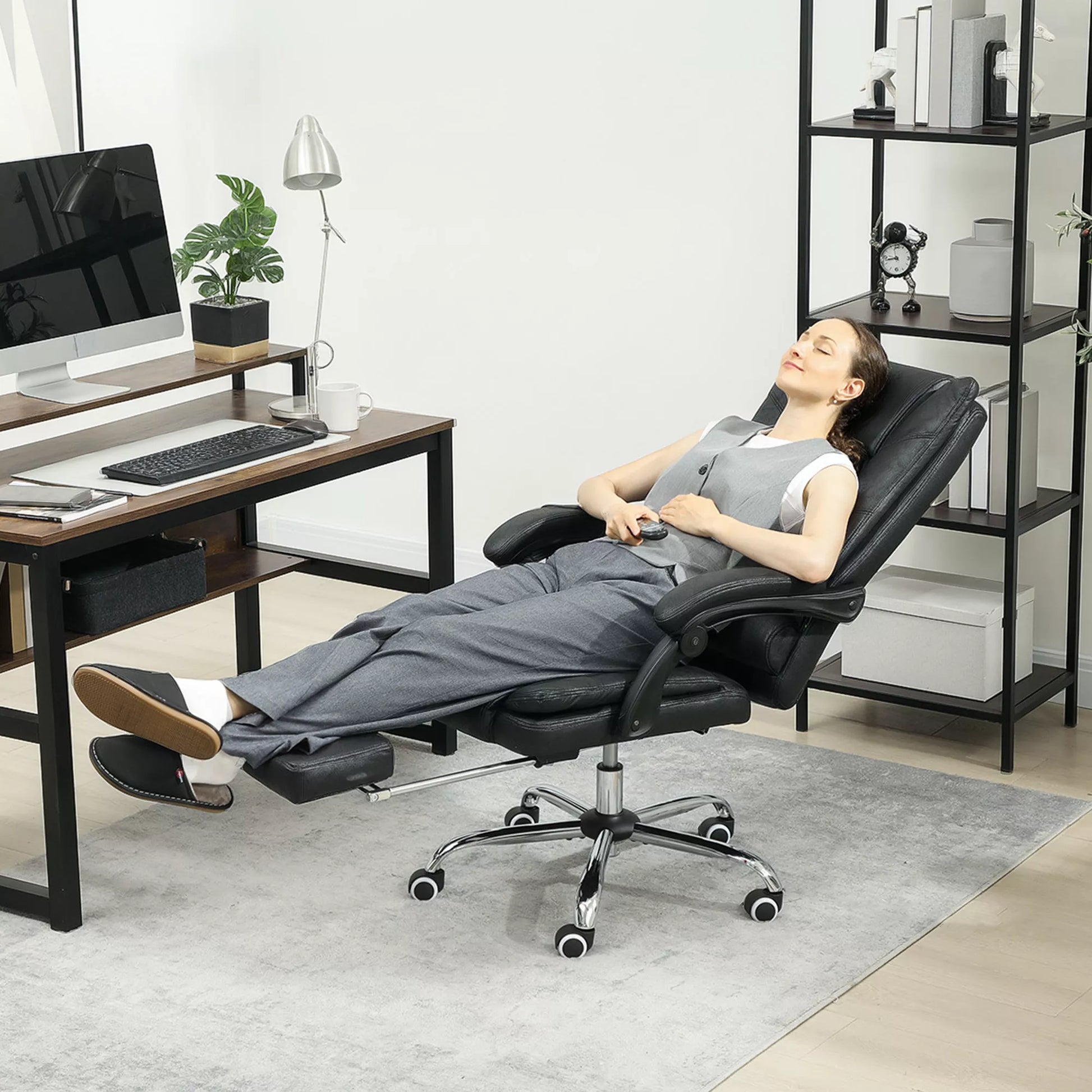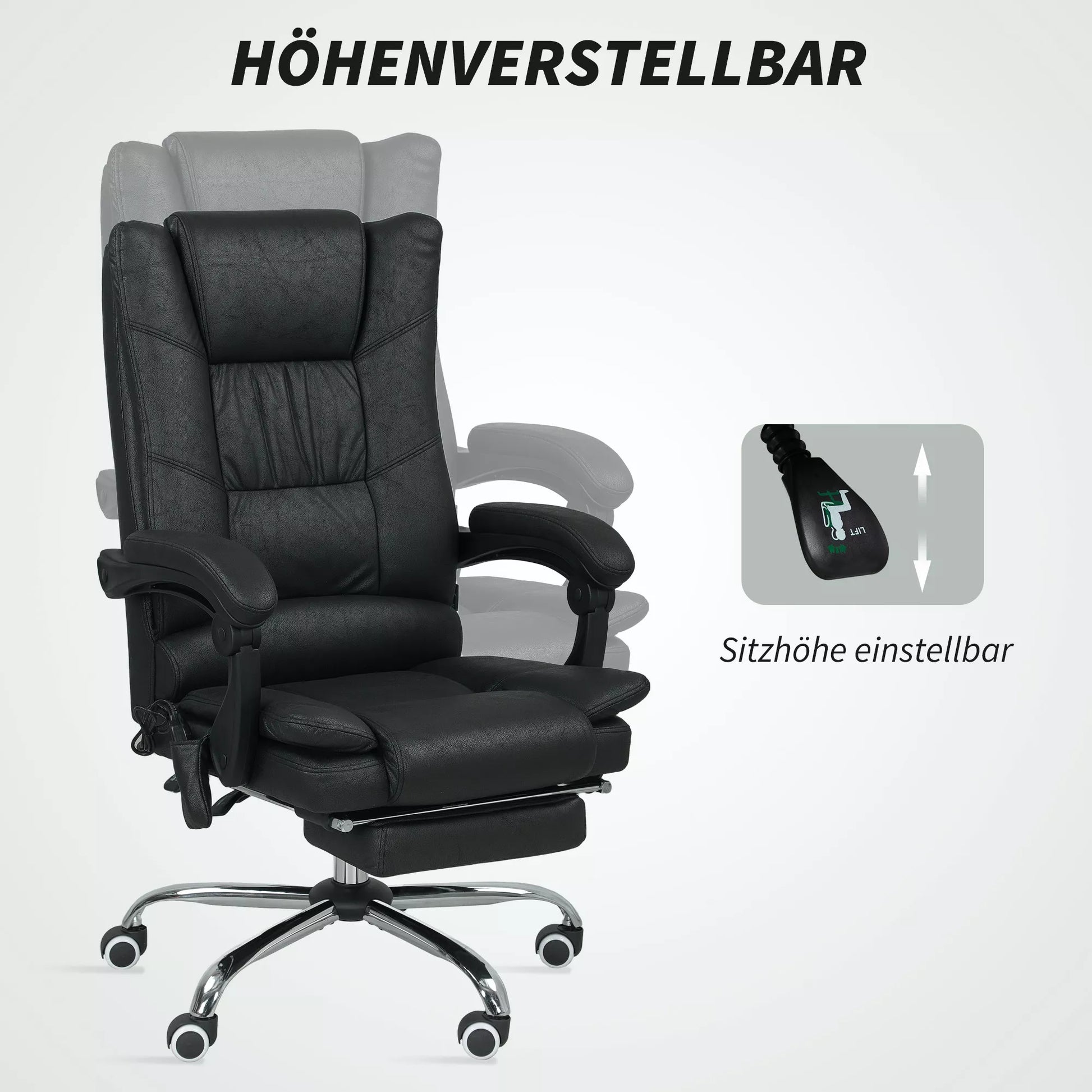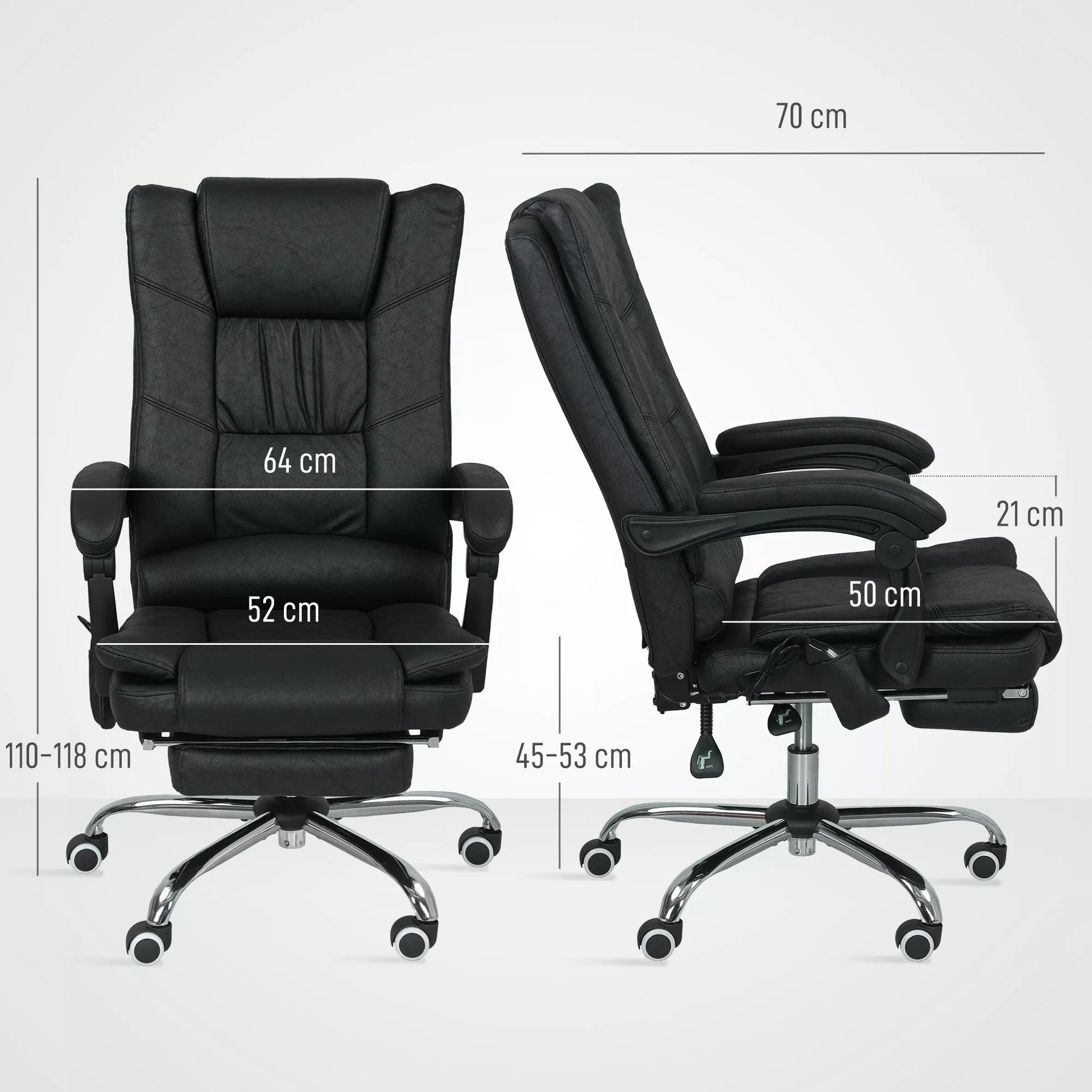 Masažinė biuro kėdė su masažo funkcija, su kojų atrama, reguliuojamo aukščio, 64 cm x 70 cm x 118 cm, Juoda