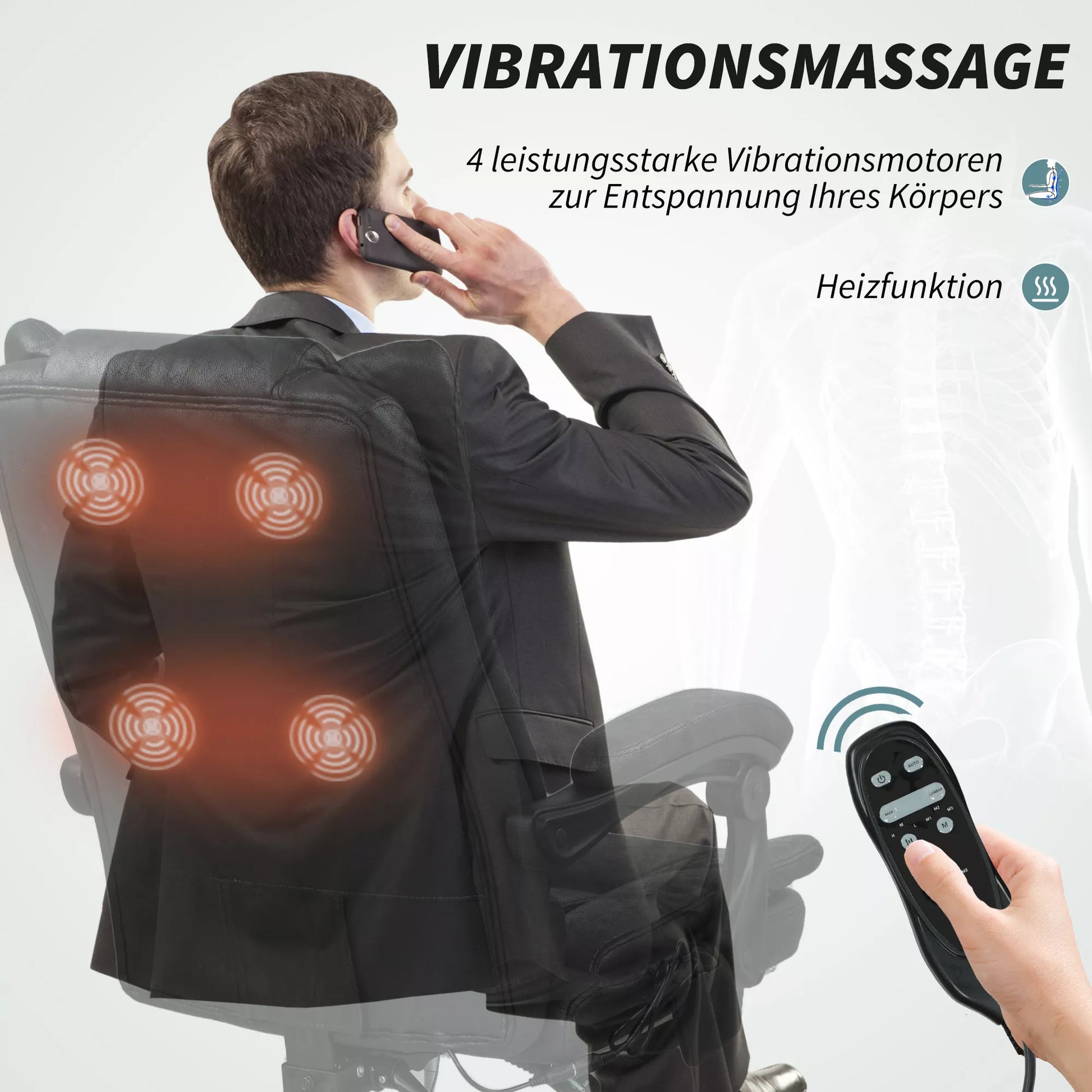 - ✔ Keturi vibracijos masažo taškai su trimis režimais, trimis intensyvumo lygiais ir juosmens šildytuvu atpalaiduoja Jūsų kūną