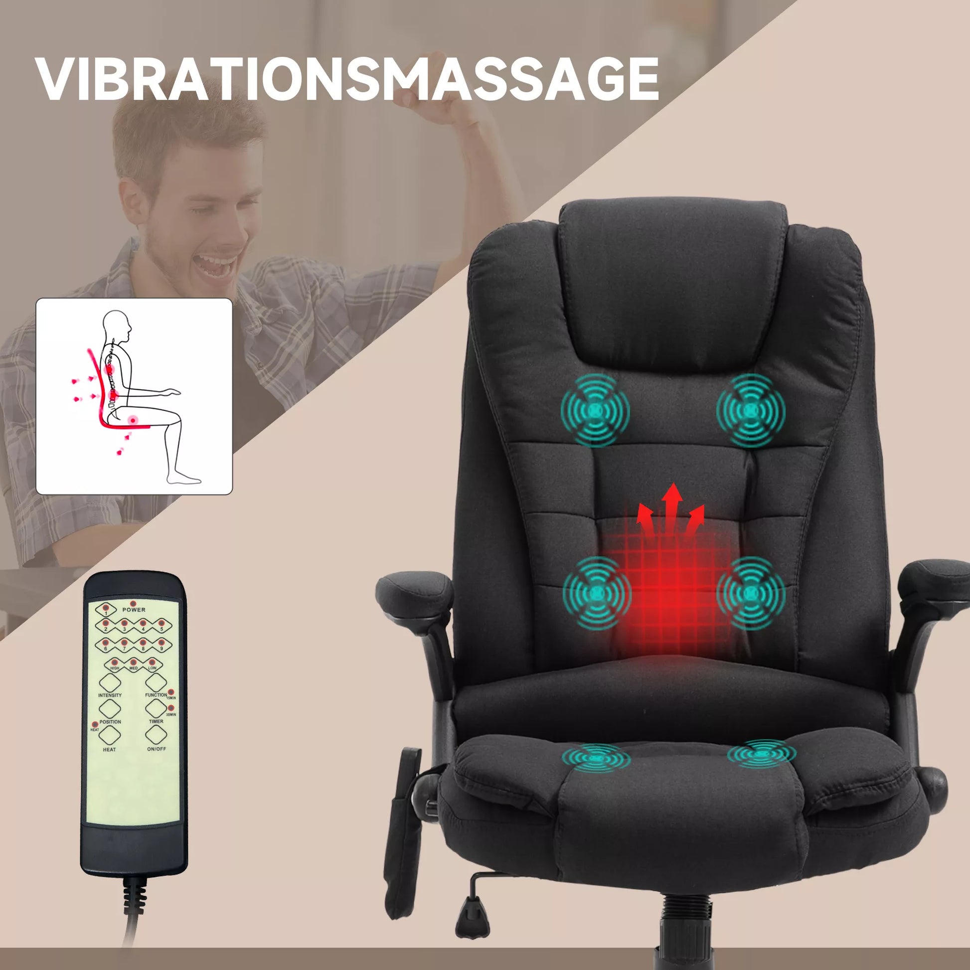 Ergonomiška biuro kėdė su vibromasažu, šildymo ir gulimosios funkcijos, reguliuojamo aukščio vadovo kėdė su nuotolinio valdymo pulteliu, šonine kišene, linine išvaizda, juoda