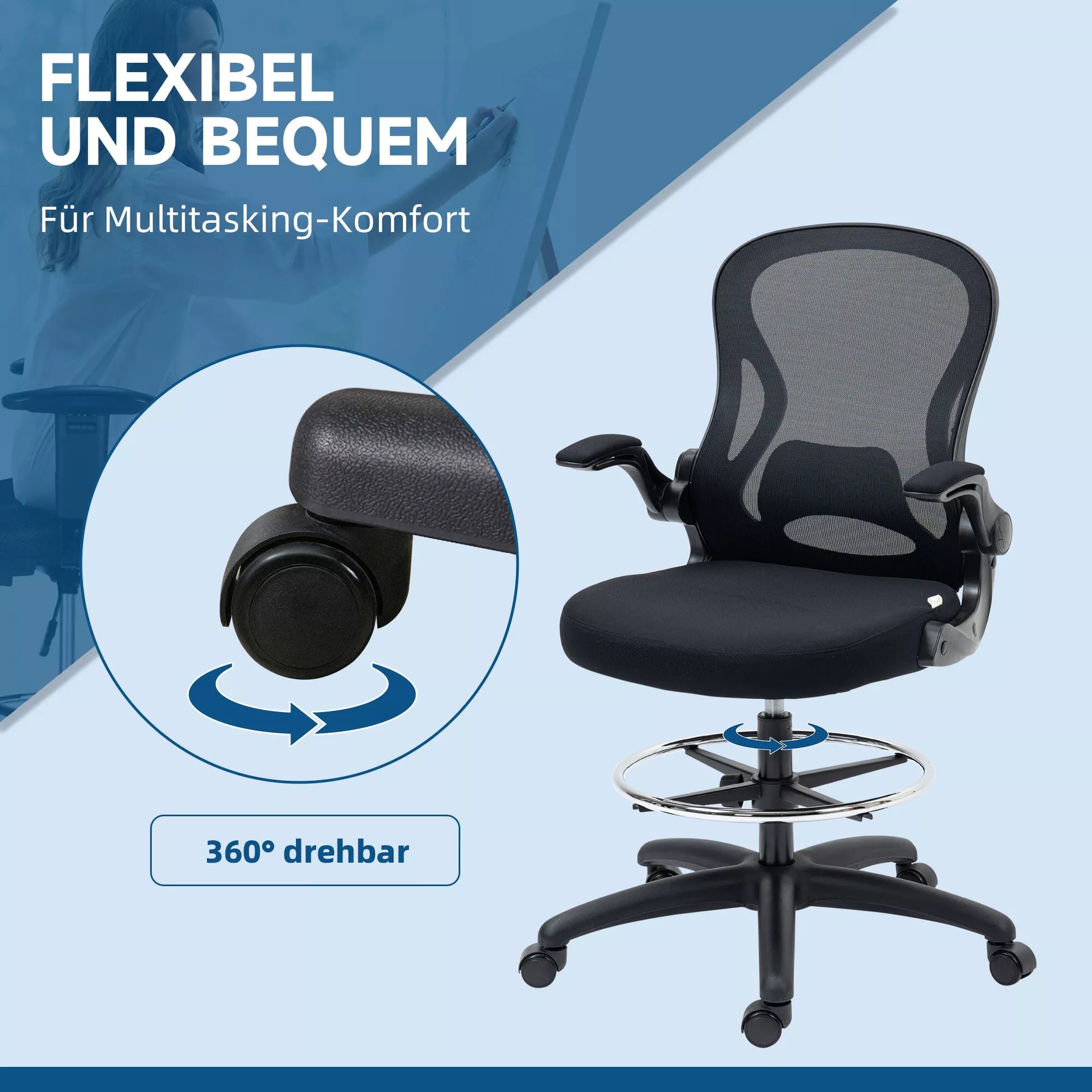 Piešimo kėdė, reguliuojamo aukščio biuro kėdė, su atrama kojoms, 59 cm x 65 cm x 122 cm, juoda