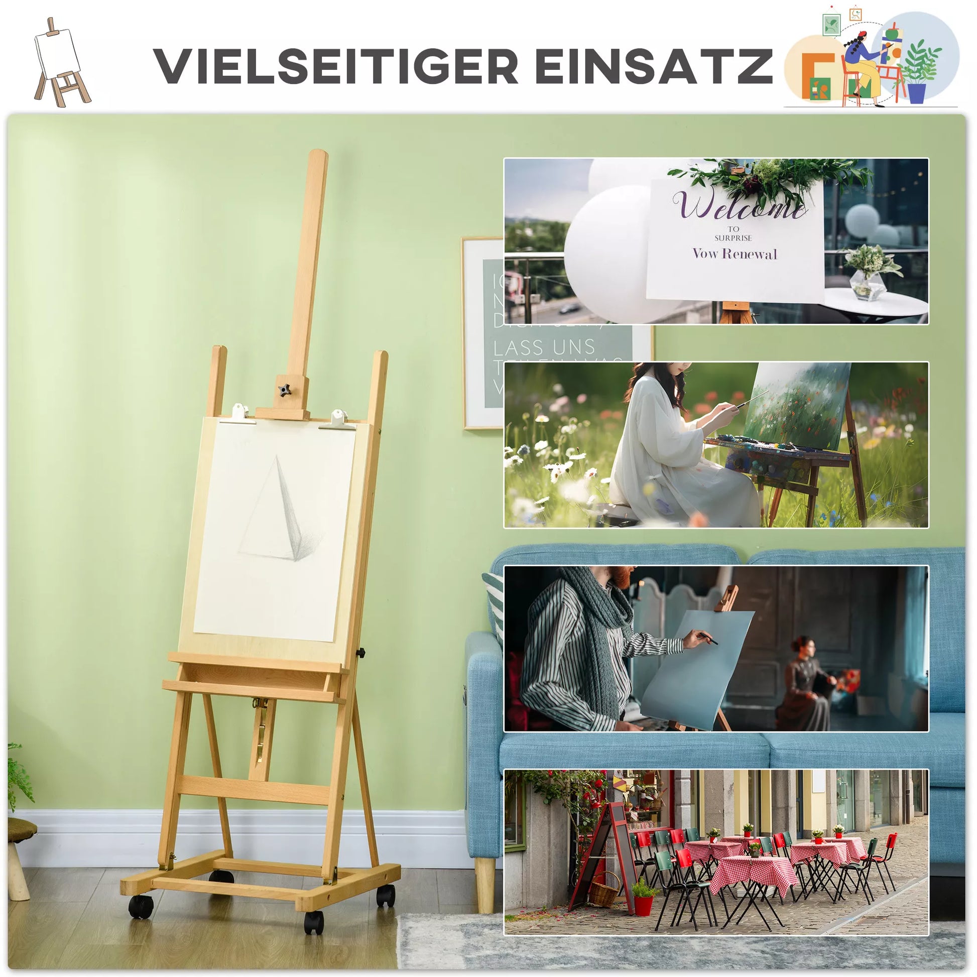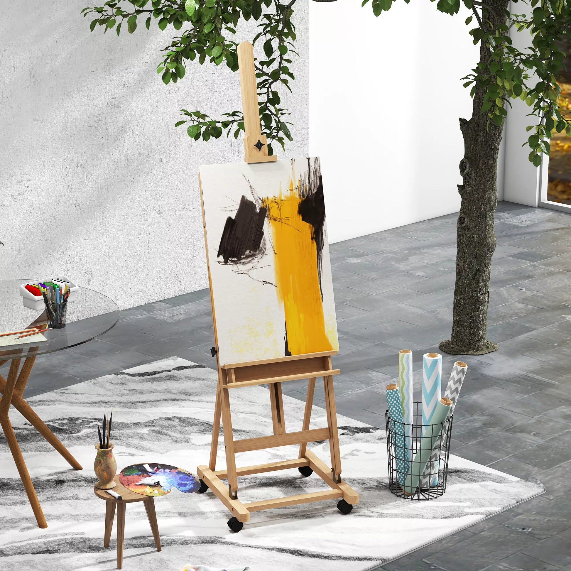 Molbertas, Tapytojo molbertas, Aukščiui reguliuojamas, su 4 ratukais, Natūralus + Juodas