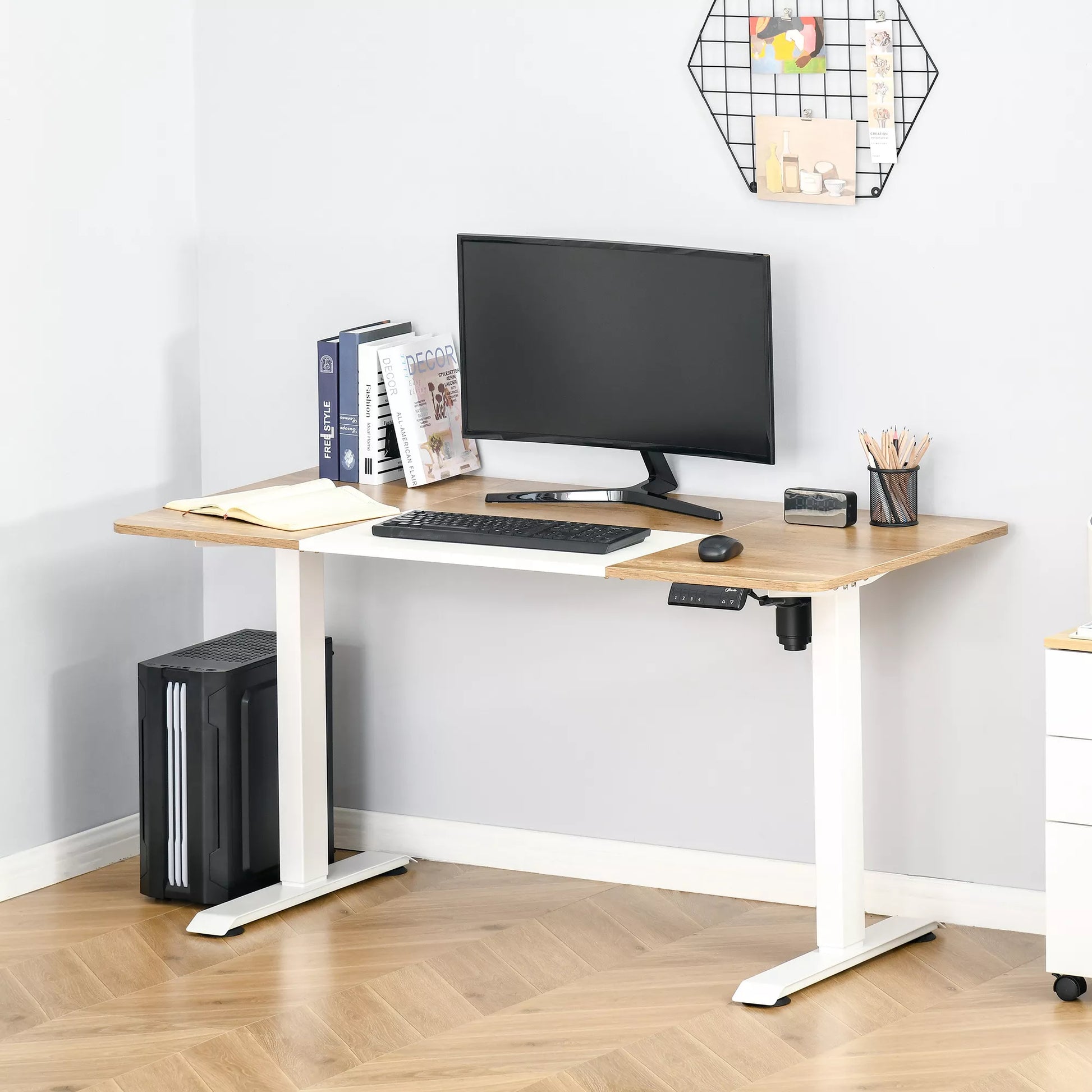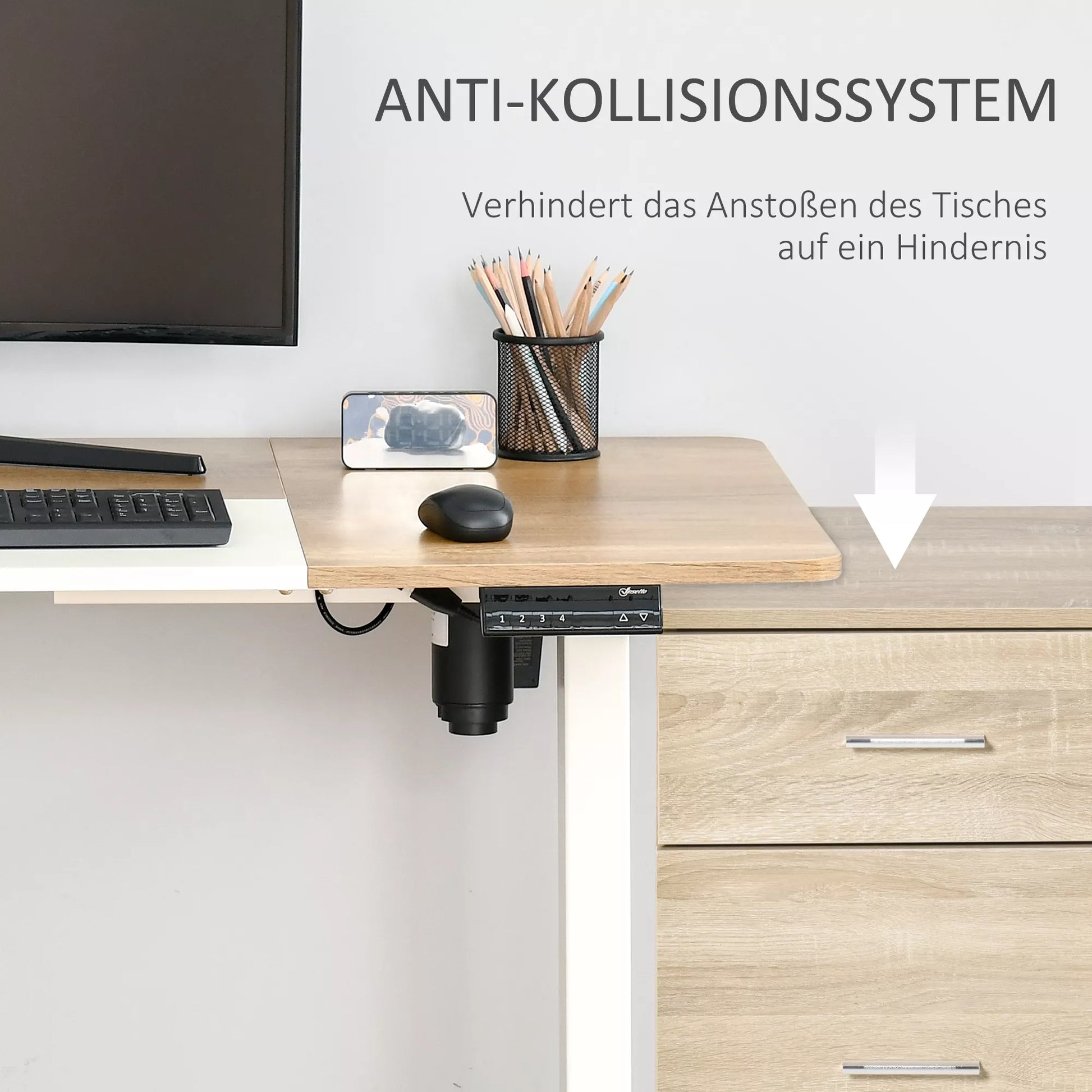 Elektrinis reguliuojamo aukščio stalas 140 x 70 cm, kompiuterio stalas su 4 atminties nustatymais, 4 dalių stalviršis, stovimo-sėdėjimo stalas su apsauga nuo susidūrimo, apsauga nuo perkaitimo, baltas