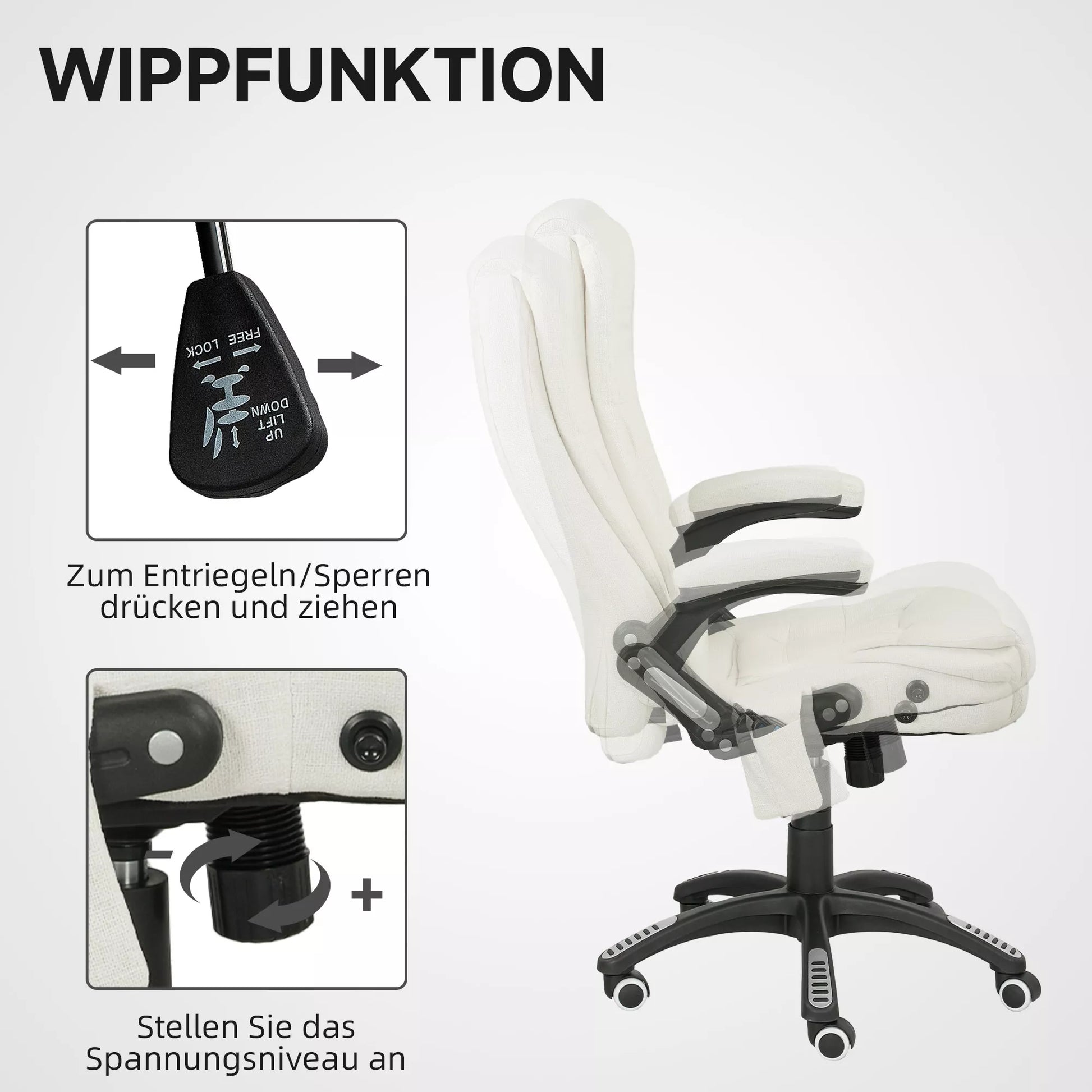 Ergonomiška biuro kėdė su masažo funkcija, 68 x 72 x 110–120 cm, kreminės baltumo