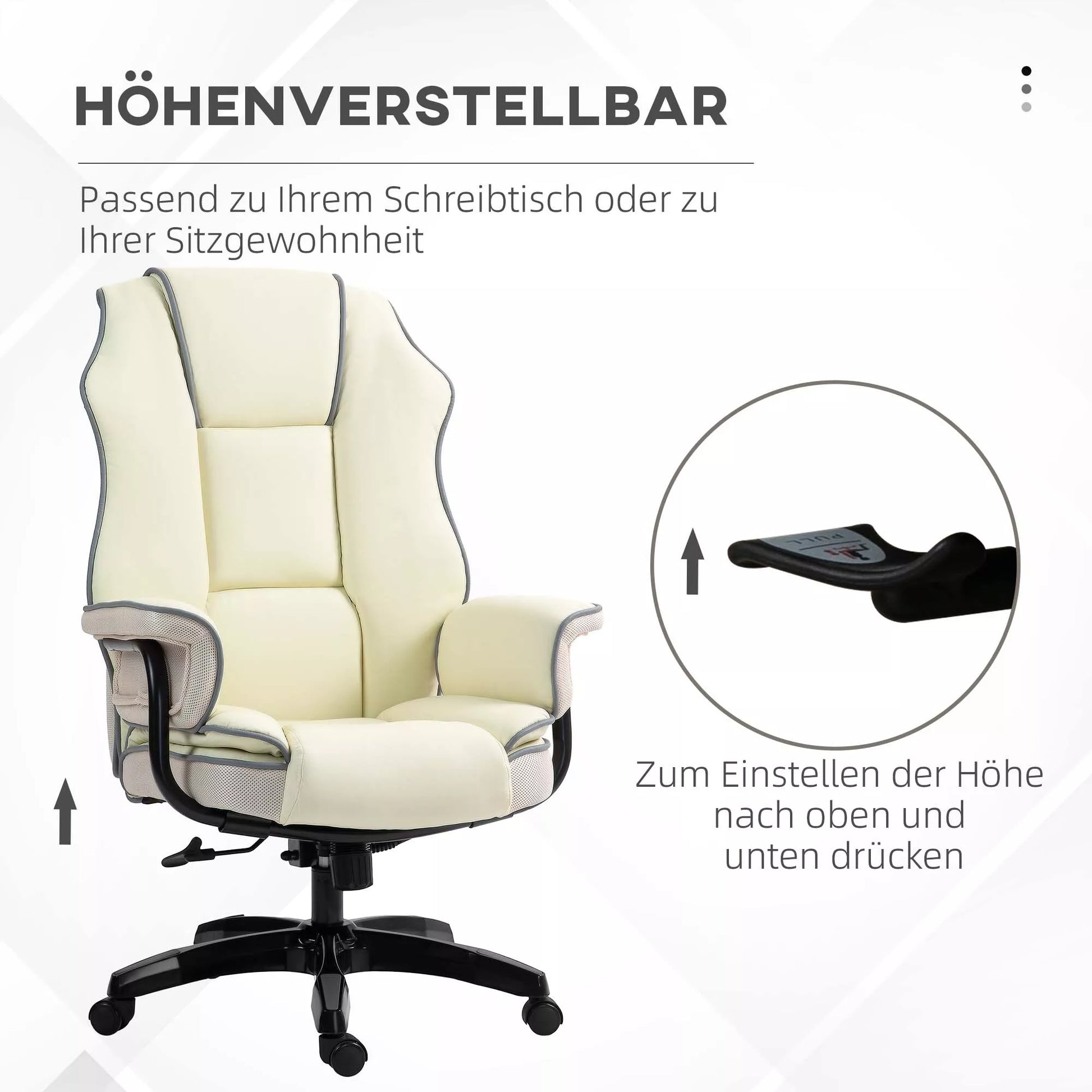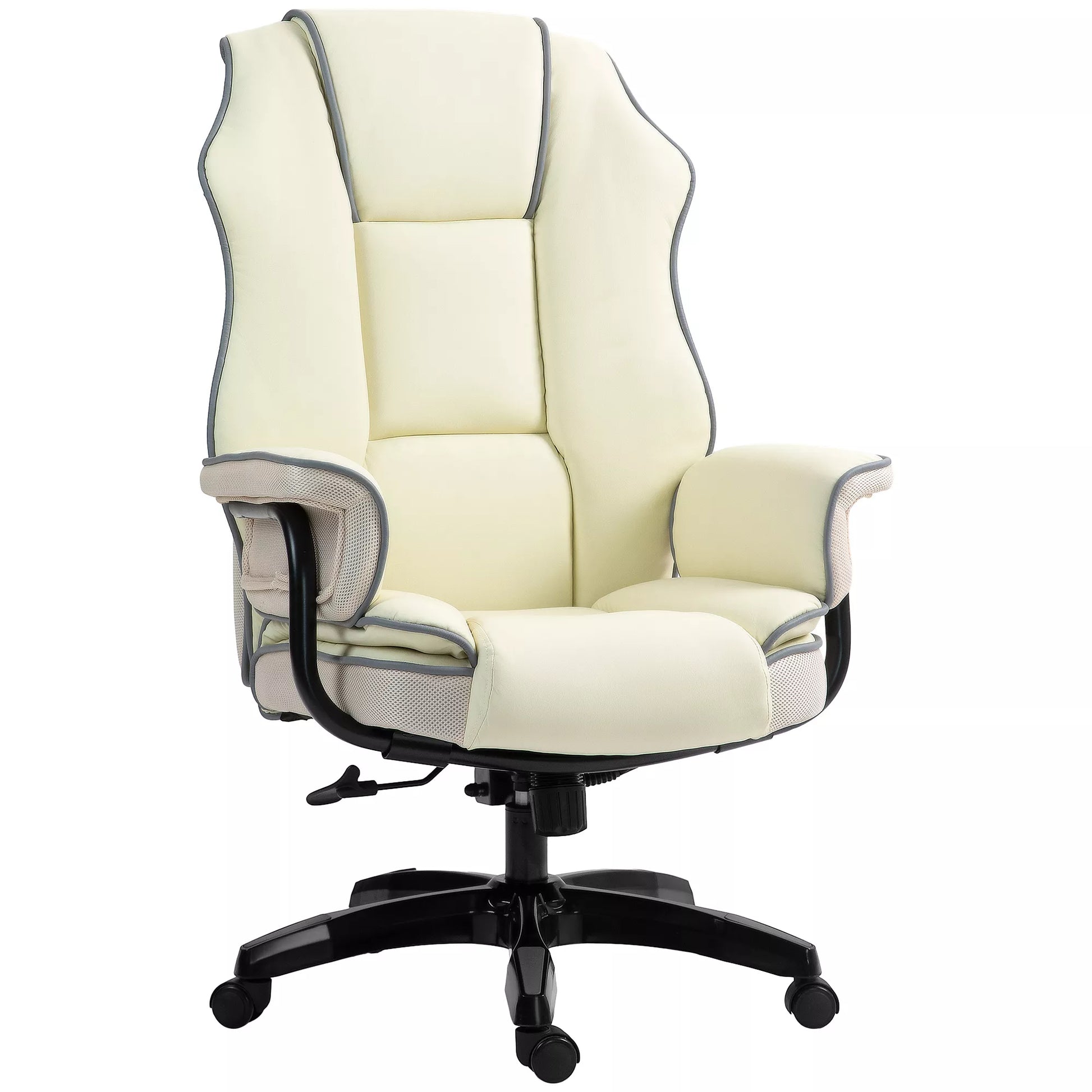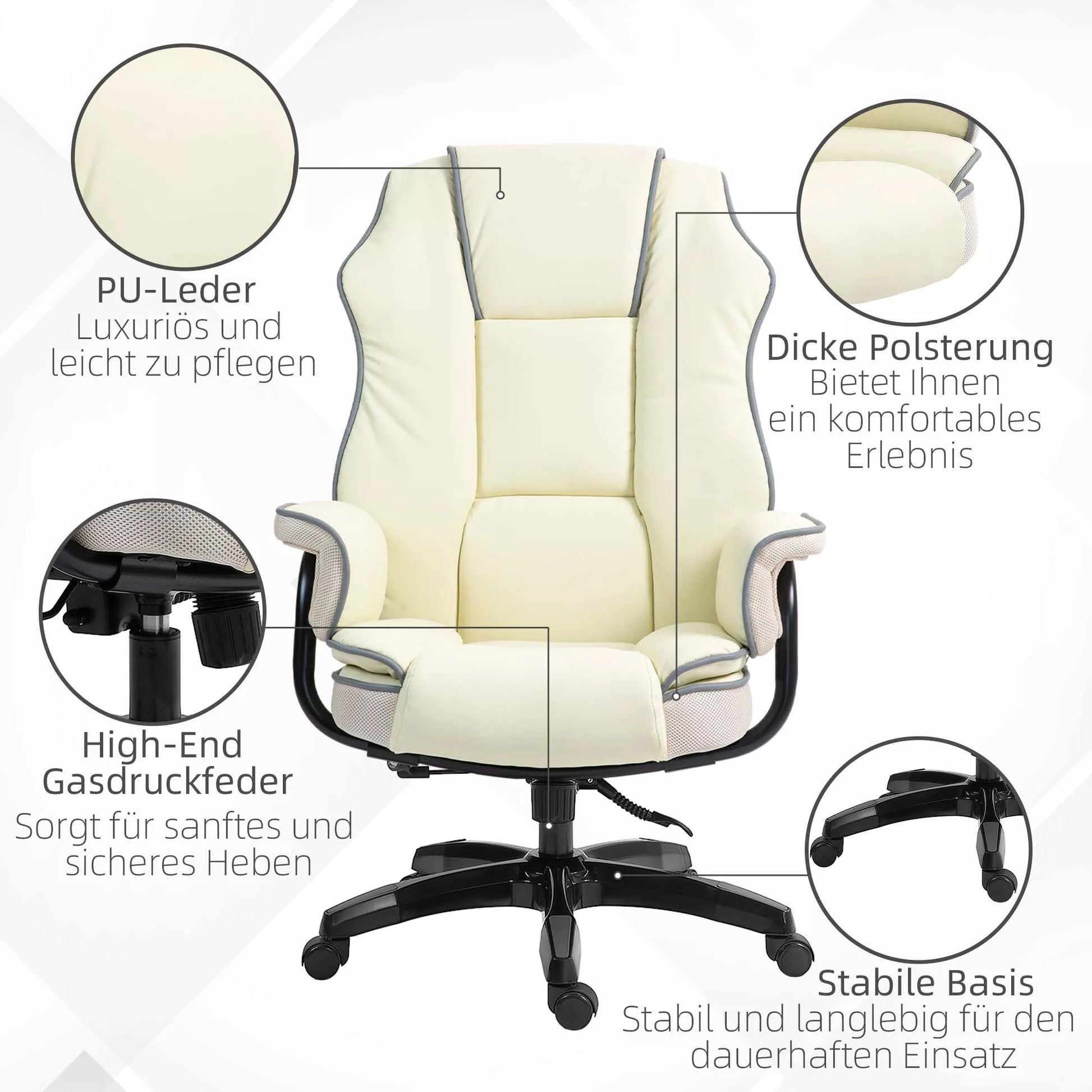 Ergonomiška biuro kėdė, itin paminkštinta, su atlošimo funkcija, dirbtinė oda, 76x80x118-124 cm, kreminės spalvos